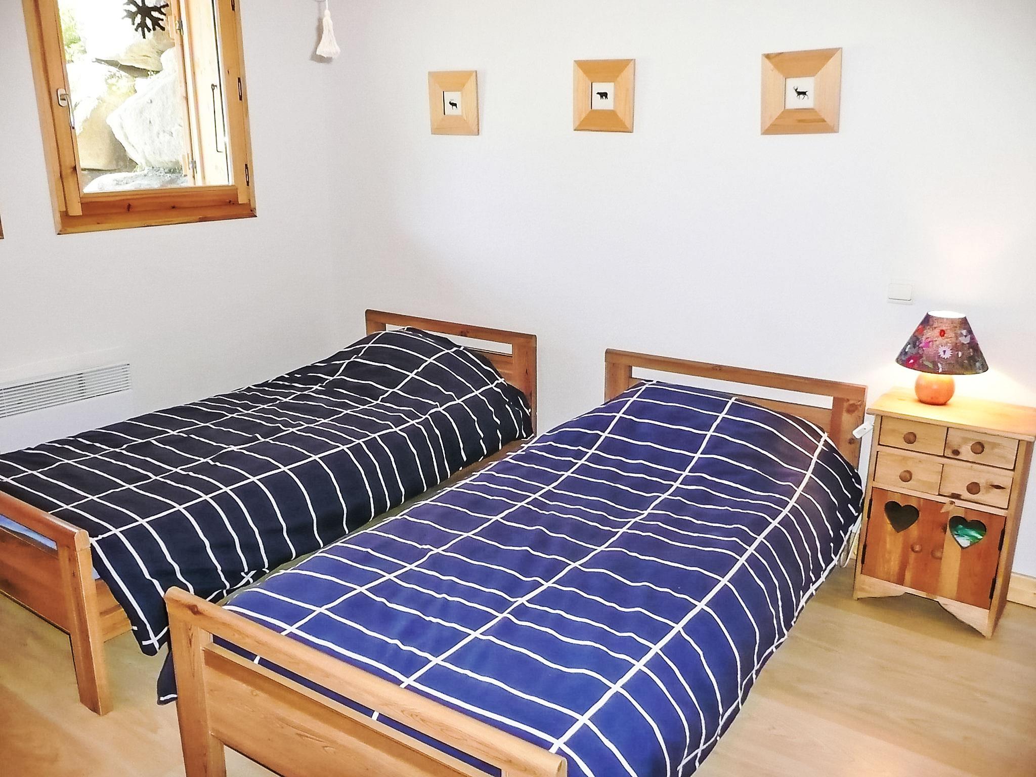 5-room chalet 130 m2 on 3 levels, south-east facing position. Comfortable and beautiful furnishings: living/dining room with TV, radio, CD-player and wood-burning stove. Exit to the terrace. Open kitchen (oven, dishwasher, 4 ceramic glass hob hotplates, toaster, kettle, microwave, electric coffee machine). Sep. WC. On the lower ground floor: 1 room with 1 x 2 bunk beds. 1 room with 1 french bed (1 x 140 cm). 1 room with 2 beds (80 cm). Bath/shower/WC. Upper floor: 1 room with 1 french bed (1 x 160 cm). Exit to the balcony. Shower/WC. Electric heating. Terrace 30 m2, south-east facing position. Terrace furniture, barbecue, deck chairs. Beautiful view of the mountains. Facilities: washing machine, iron, children's high chair, hair dryer. Internet (WiFi, free). Please note: suitable for families. Non-smokers only. TV only FR. Smoke alarm.
