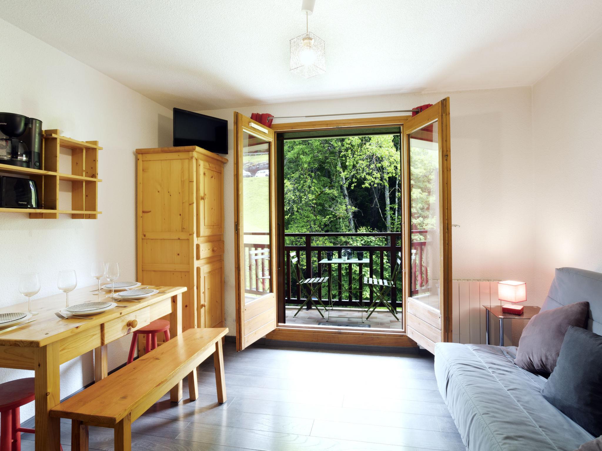 "La Piste B71", 1-room studio 20 m2 on 2nd floor. Entrance hall with 1 x 2 bunk beds (80 cm, length 190 cm). Living/dining room with 1 double sofabed (140 cm, length 190 cm), TV (flat screen). Exit to the balcony. Kitchenette (2 ceramic glass hob hotplates, toaster, kettle, electric coffee machine, raclette grill, combination microwave). Bathroom, sep. WC. Electric heating. Small balcony 4 m2, south-east facing position. Beautiful view of the mountains and the forest. Facilities: Internet (WiFi, extra). Parking at 150 m. Please note: TV only FR. Smoke alarm, no lift. Offer by a private individual according to Art. 155, IV of CGI.