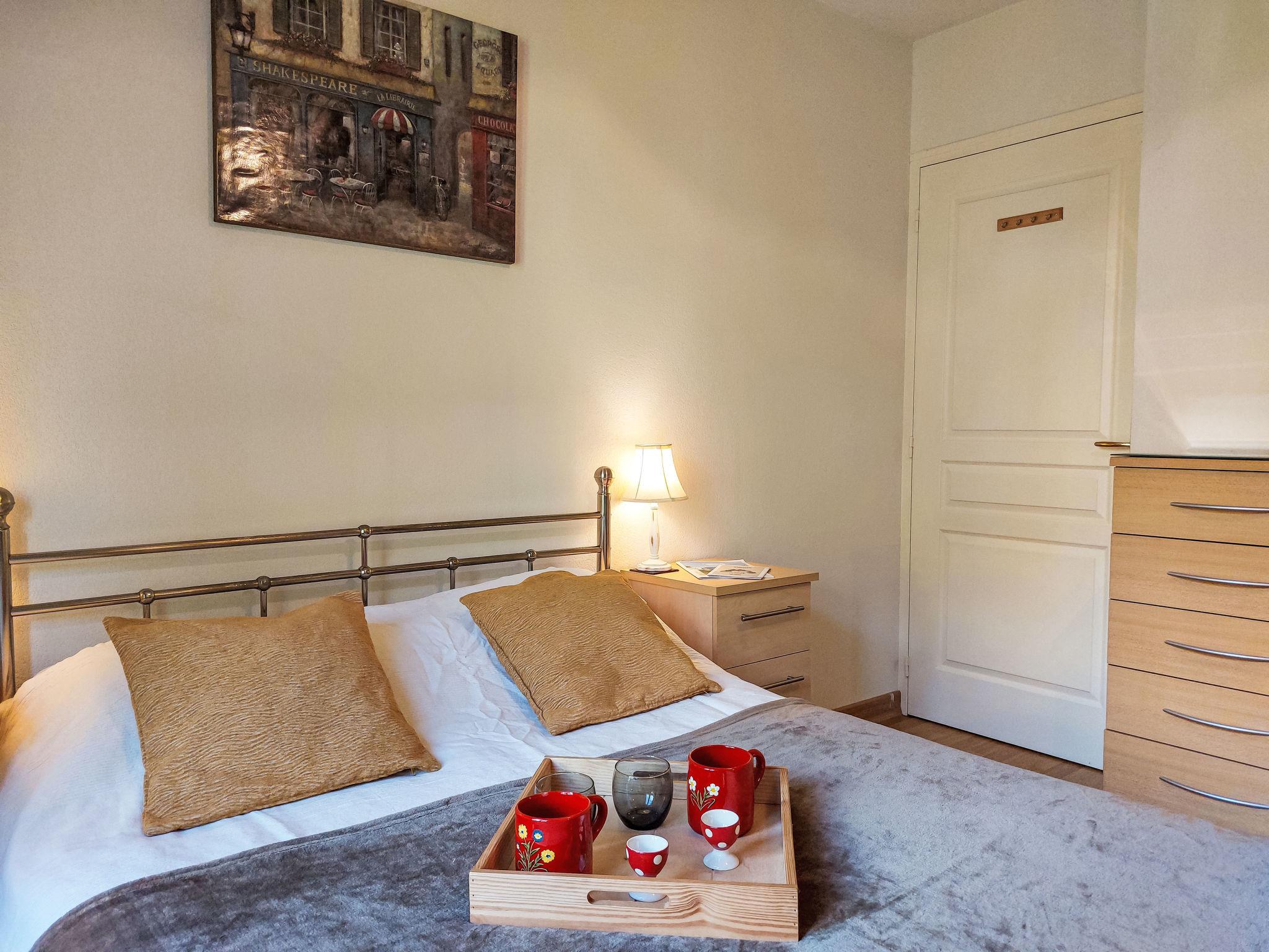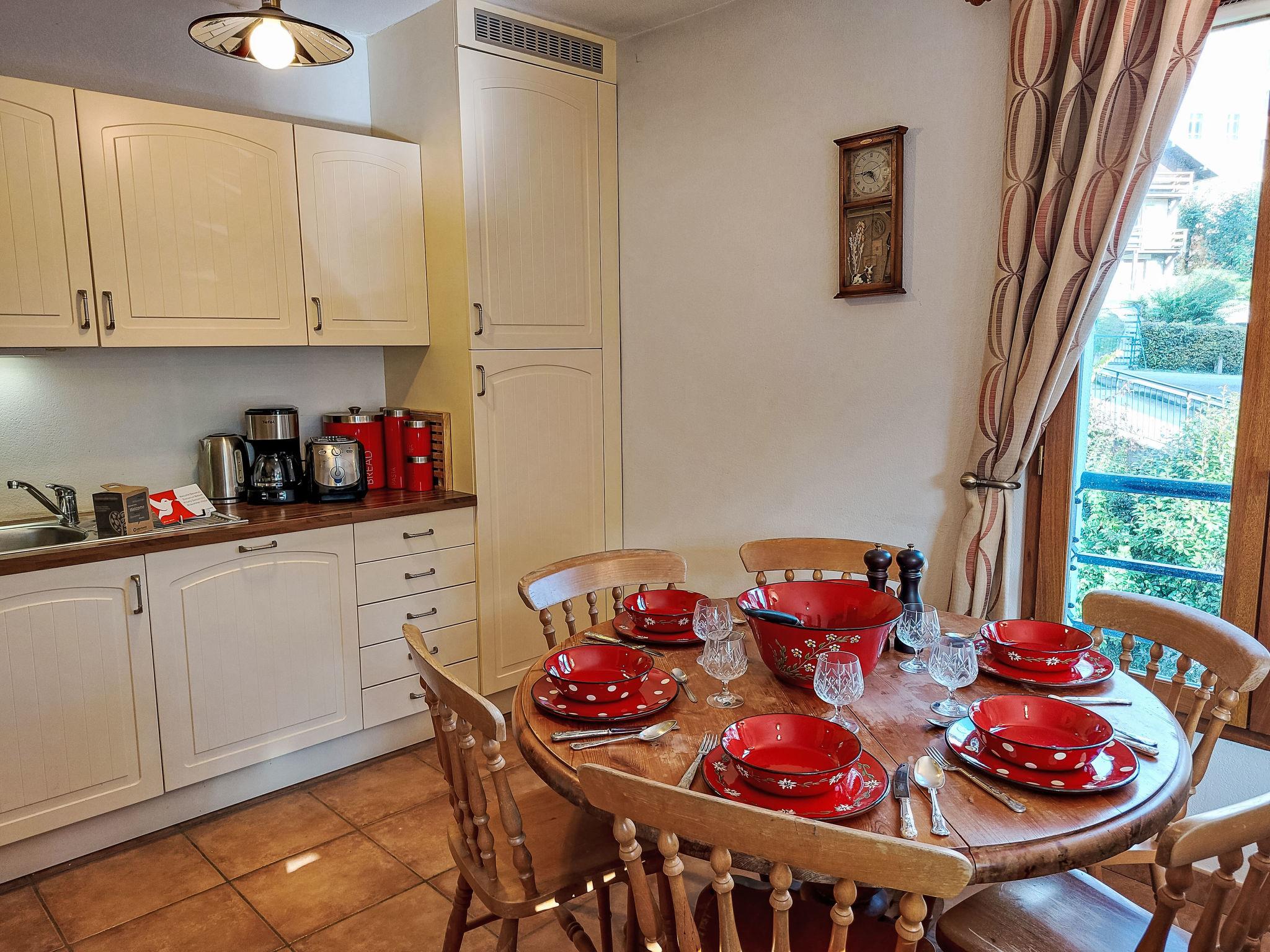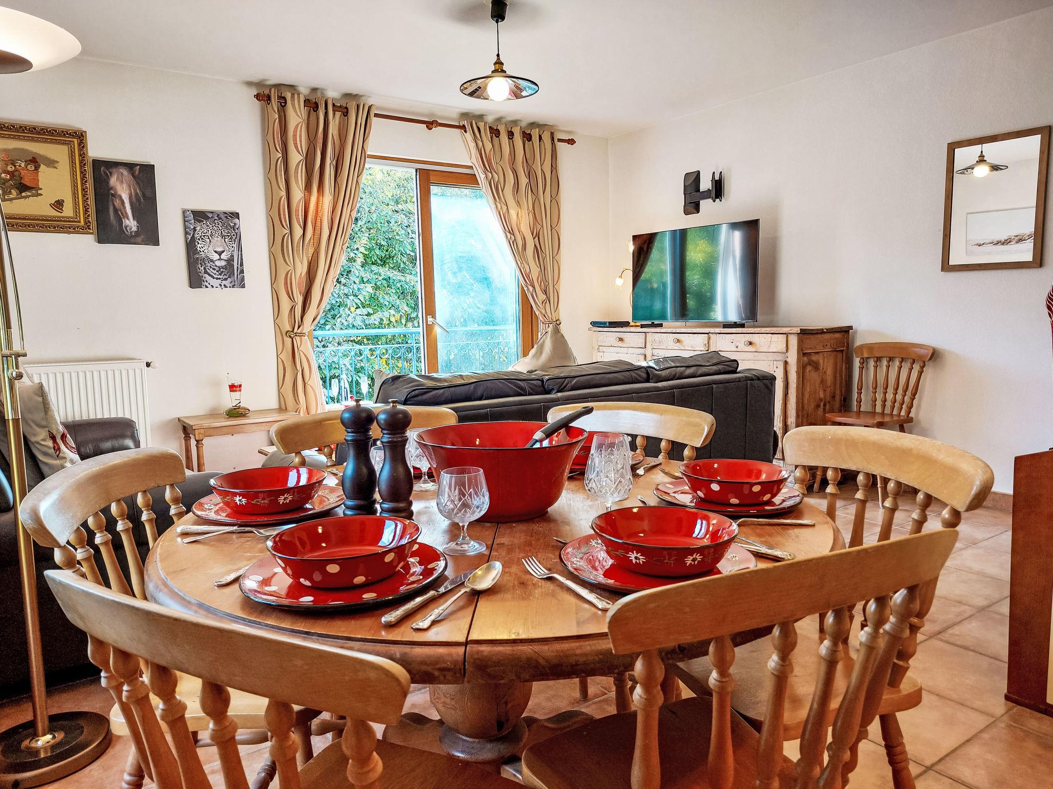 "Domaine de Crespin", 4-room apartment 69 m2, on the ground floor. Living/dining room with dining table and TV (flat screen). Exit to the balcony. 3 rooms, each room with 1 french bed (140 cm, length 190 cm). Open kitchen (oven, 4 ceramic glass hob hotplates, toaster, kettle, microwave, electric coffee machine). Bath/WC, sep. WC. Heating. Balcony 4 m2, west facing position. Balcony furniture. Beautiful view of the mountains. Facilities: washing machine. Internet (WiFi, free). Garage (1 car). Please note: fridge without freezer, non-smokers only. Maximum 1 pet/ dog allowed. TV only FR. Smoke alarm. Offer by a private individual according to Art. 155, IV of CGI.