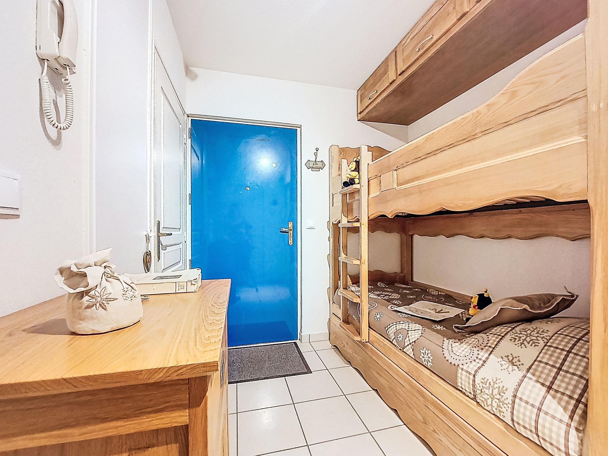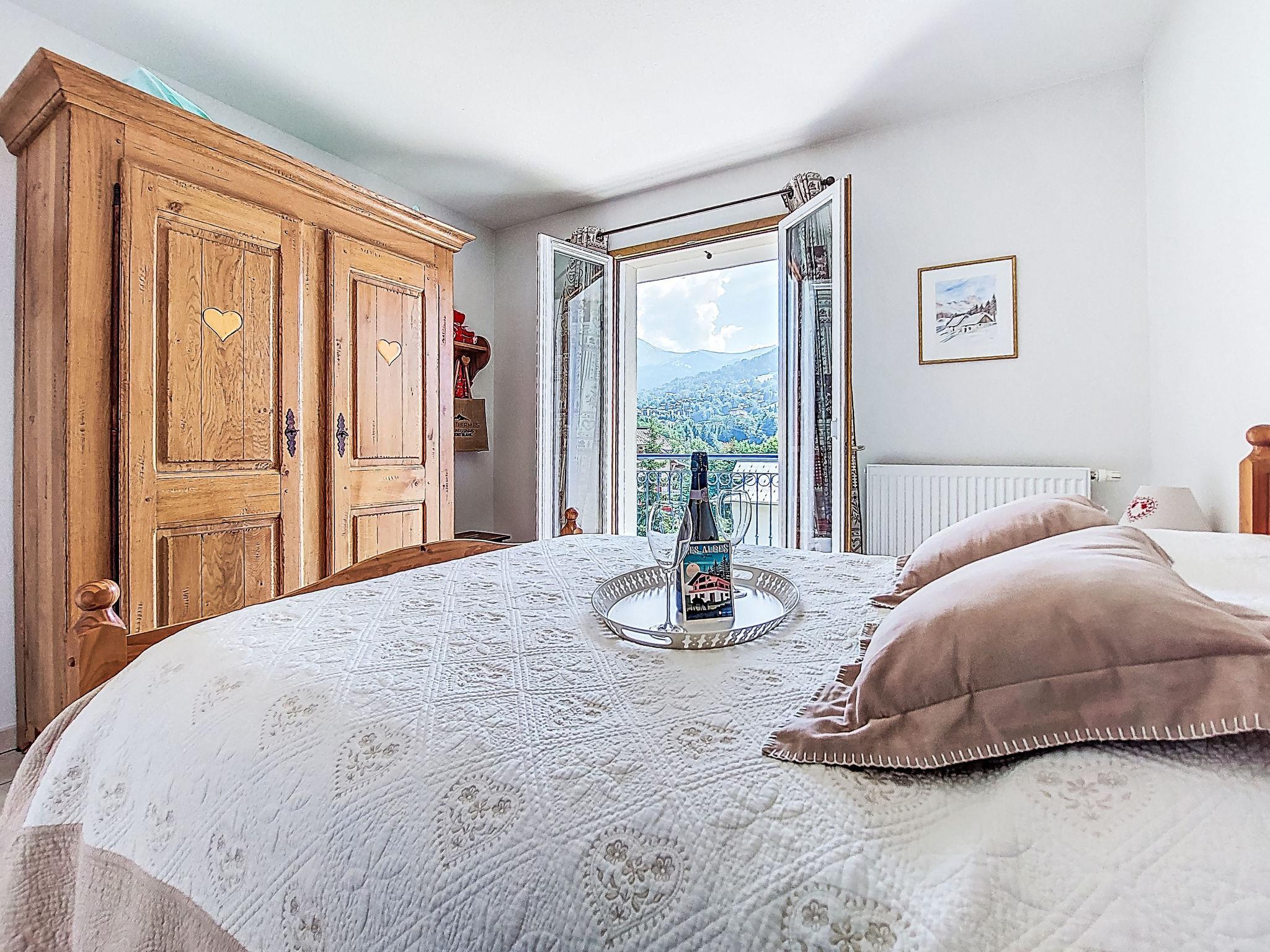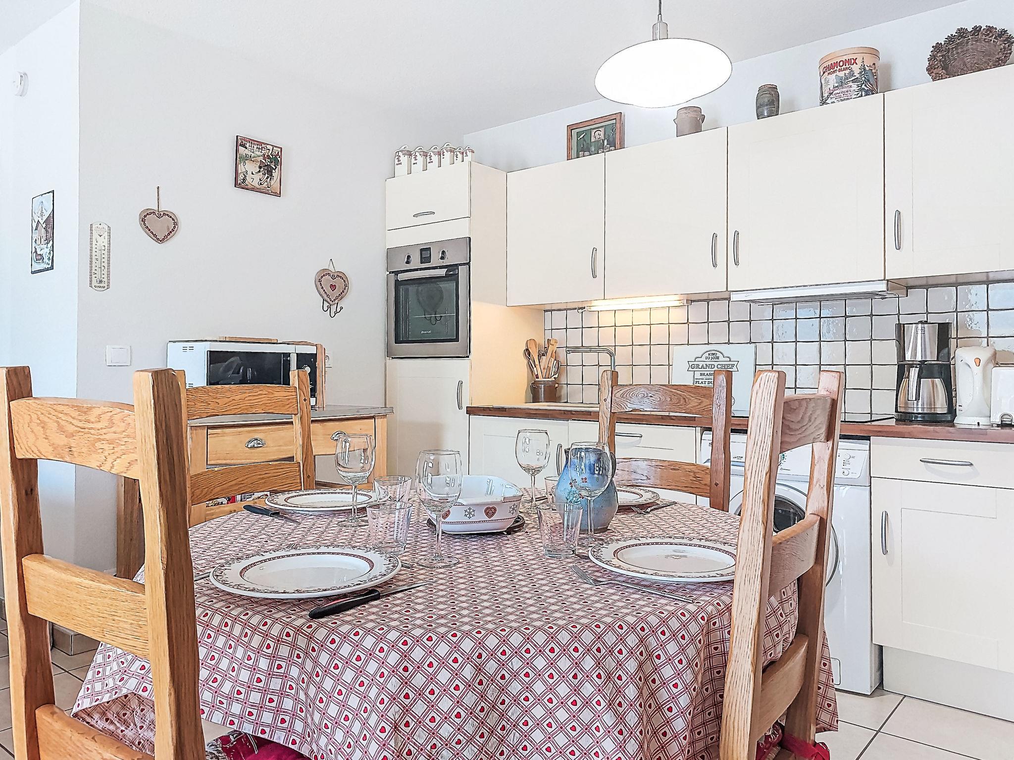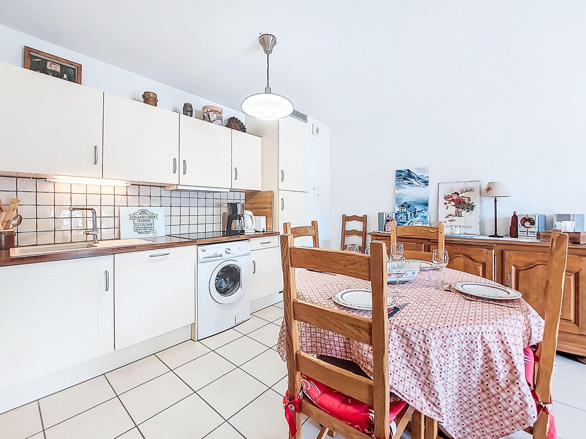 "Domaine de Crespin", 2-room apartment 51 m2 on 2nd floor. Entrance hall with 1 x 2 bunk beds (80 cm, length 190 cm). Large living/dining room. Exit to the balcony. 1 room with 1 french bed (140 cm, length 190 cm). Exit to the balcony. Open kitchen (oven, dishwasher, 4 induction hot plates, kettle, microwave, electric coffee machine, raclette grill). Shower, sep. WC. Heating. 2 small balconies 3 m2, west facing position and south-west facing position. Very beautiful view of the mountains. Facilities: washing machine. Internet (WiFi, free). Garage space n 19 (1 car). Please note: non-smokers only. TV only FR. Smoke alarm. Offer by a private individual according to Art. 155, IV of CGI.