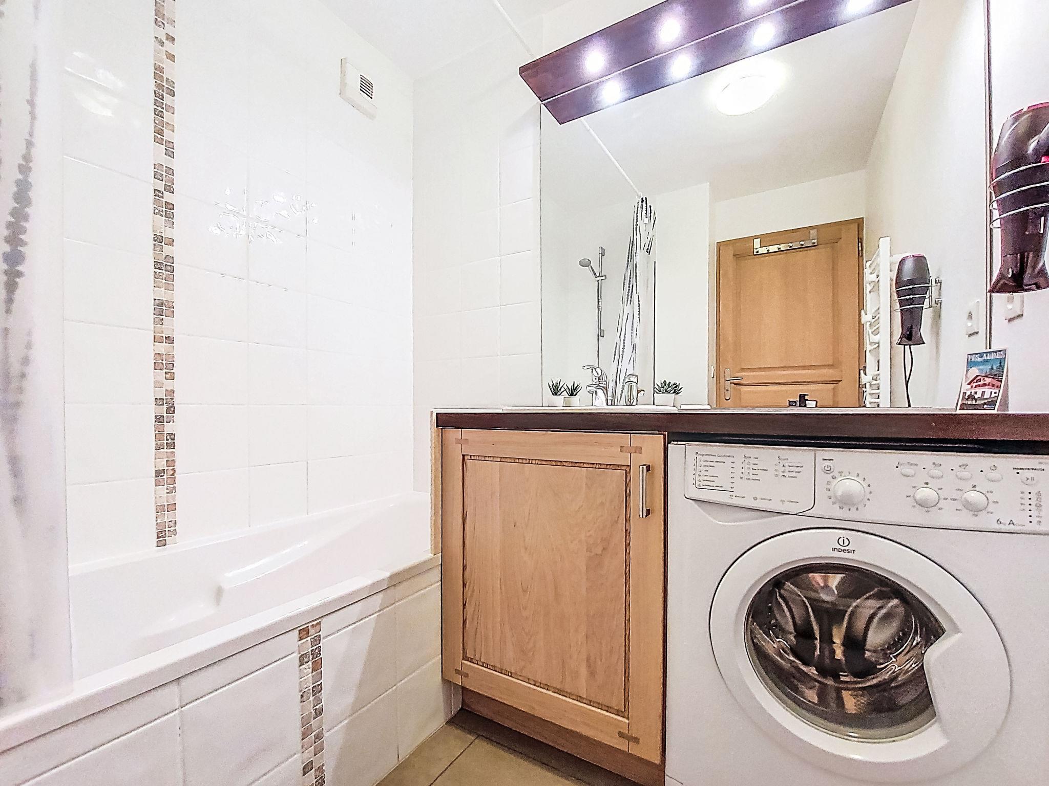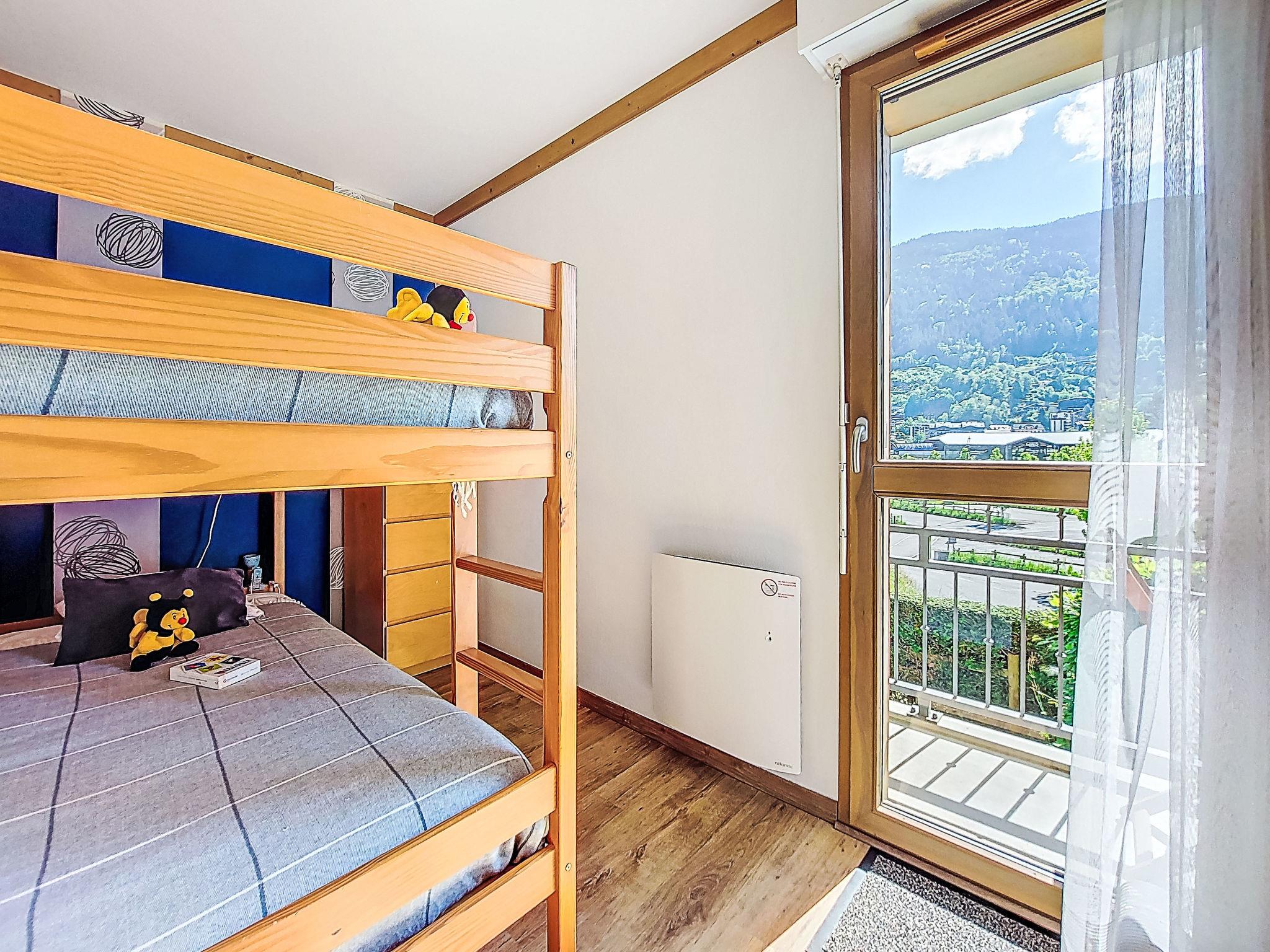 "Clos de la fontaine 2", 3-room apartment 42 m2 on 1st floor. Entrance hall. Living/dining room with 1 double sofabed (140 cm), dining table, TV and flat screen. Exit to the balcony. 1 room with 1 french bed (160 cm, length 200 cm). Exit to the balcony. 1 room with 1 x 2 bunk beds (90 cm, length 190 cm). Exit to the balcony. Kitchenette (oven, dishwasher, 4 ceramic glass hob hotplates, toaster, kettle, microwave, electric coffee machine, raclette grill, fondue Set (cheese)). Bathroom, sep. WC. Electric heating. Balcony furniture. View of the mountains and the resort. Facilities: washing machine. Internet (WiFi, extra). Please note: non-smokers only. TV only FR. Smoke alarm.