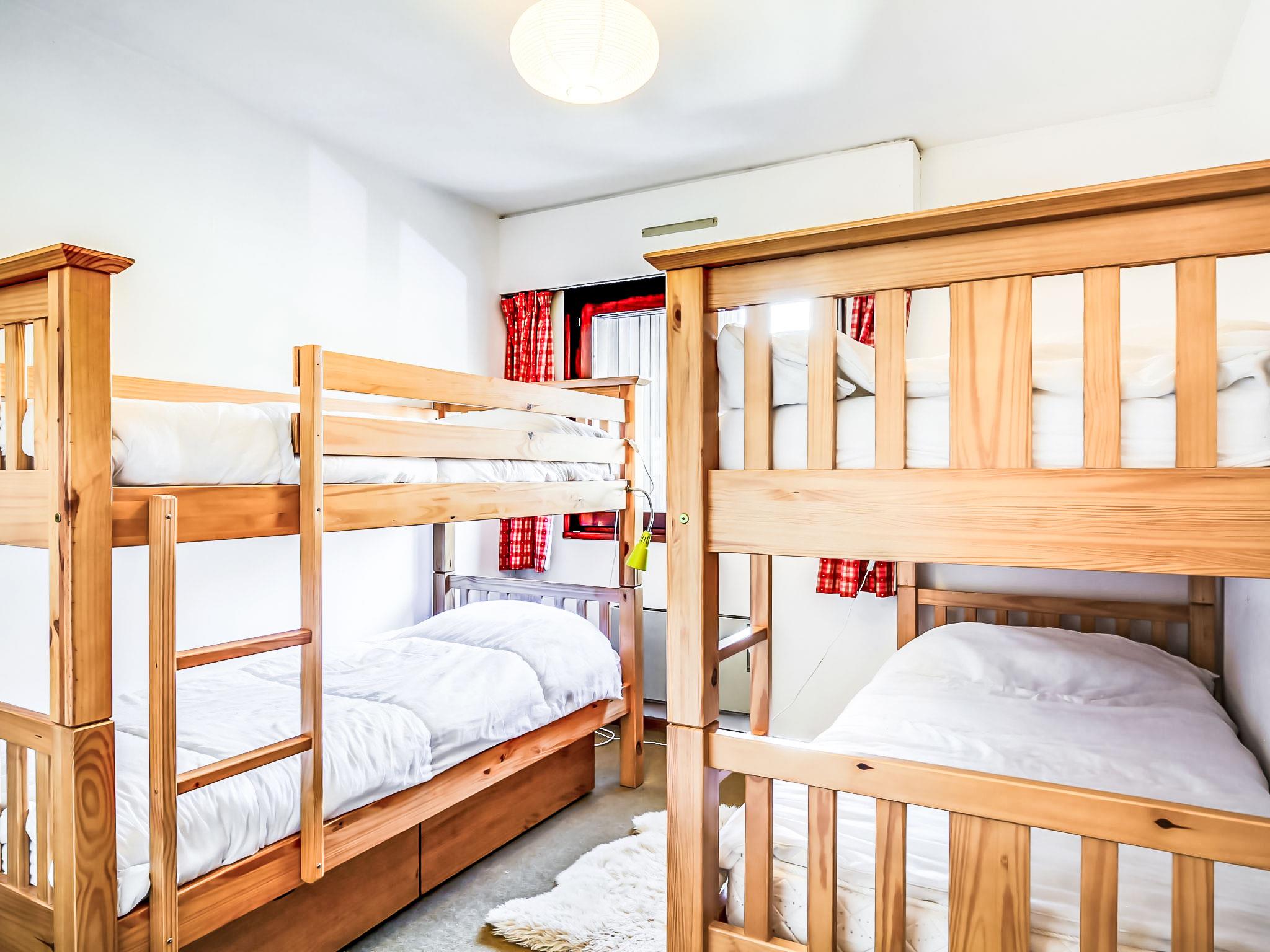 "Fleurs des Alpes", 3-room apartment 70 m2 on 4th floor. Object suitable for 2 adults + 4 children. Living/dining room with flat screen and DVD. Exit to the balcony. 1 room with 1 french bed (2 x 90 cm). 1 room with 2 x 2 bunk beds (90 cm). Kitchen (oven, dishwasher, 4 induction hot plates, toaster, kettle, electric coffee machine, combination microwave). Bathroom, sep. WC. Electric heating, underfloor heating. Balcony, south-west facing position and west facing position. View of the mountains. Facilities: washing machine. Internet (WiFi, free). Please note: non-smokers only. TV only FR. Smoke alarm.