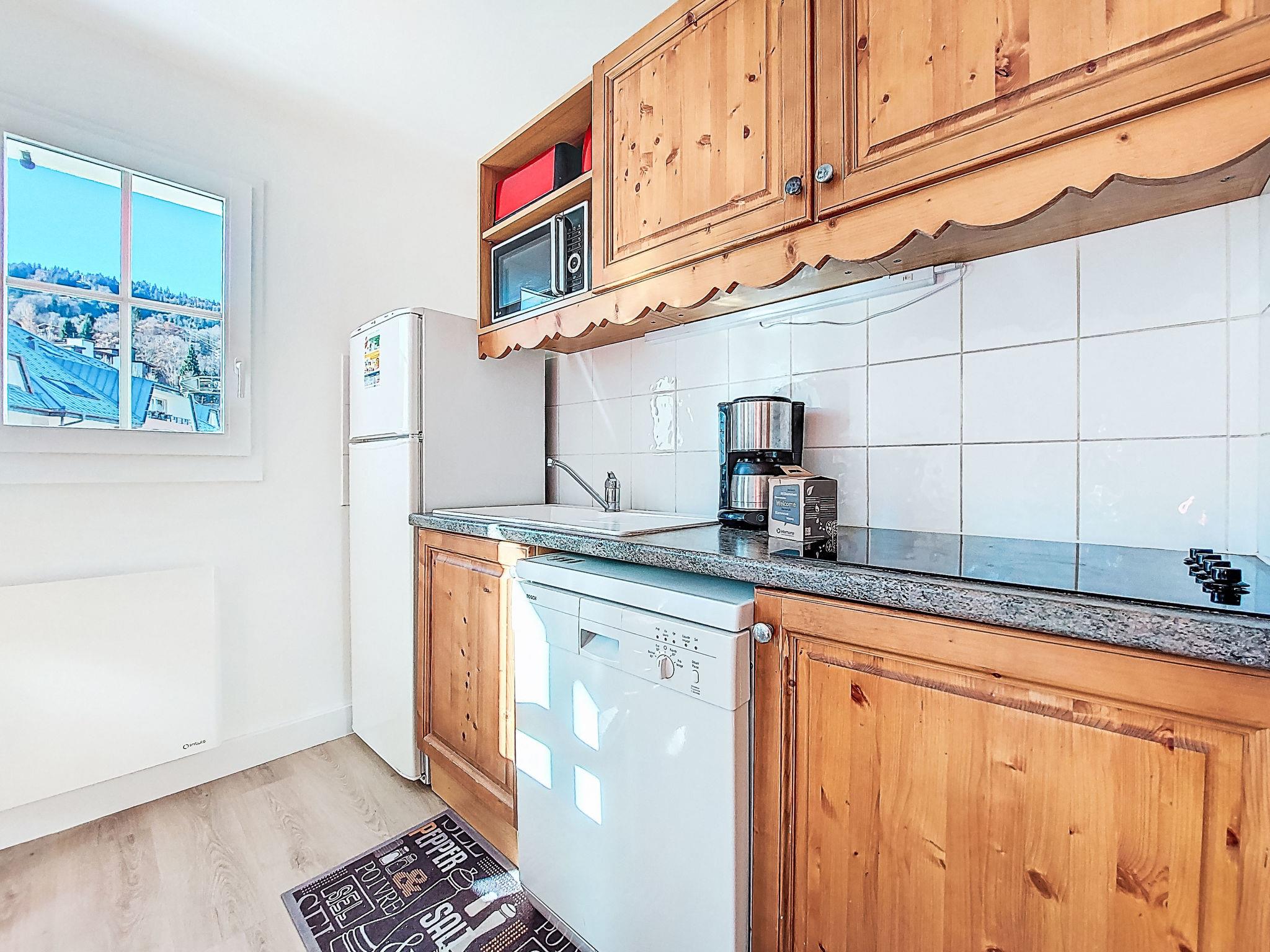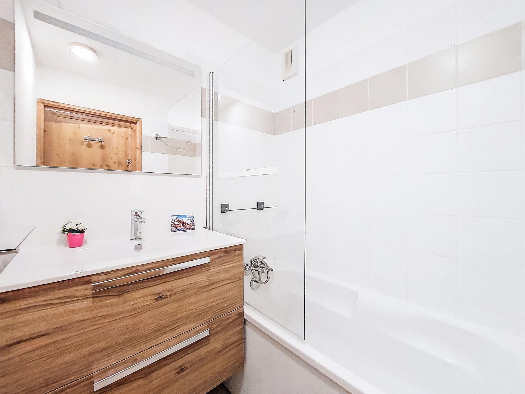 "Le Grand Panorama 412", 3-room apartment 42 m2 on 4th floor. Living/dining room with 1 pull-out bed, dining table and TV. Exit to the balcony. 1 room with 1 french bed (160 cm, length 190 cm), hand-basin, shower and TV. 1 room with 2 beds. Open kitchen (dishwasher, 4 ceramic glass hob hotplates, toaster, kettle, microwave, freezer, electric coffee machine). Bathroom, sep. WC. Electric heating. 2 balconies, south facing position and west facing position. Balcony furniture. Beautiful view of the mountains. Facilities: Internet (WiFi, extra). Garage space n 16. Please note: TV only FR. Smoke alarm. FR7450.700.2