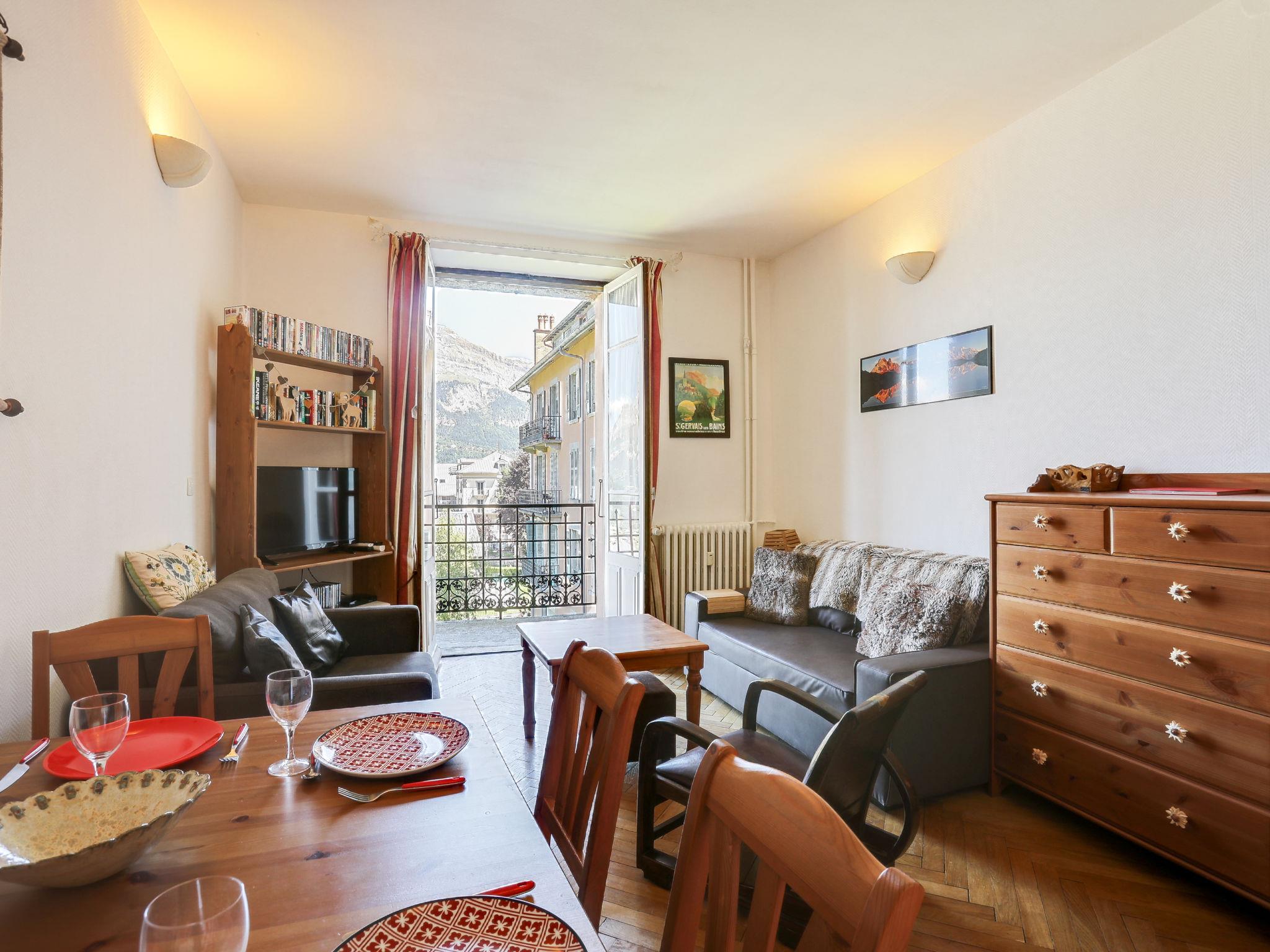 "La Résidence", 2-room apartment 35 m2 on 3rd floor. Living/dining room with 1 double sofabed (140 cm), TV and flat screen. Exit to the balcony. 1 room with 1 french bed (140 cm). Exit to the balcony. Kitchen (4 ceramic glass hob hotplates, toaster, kettle, electric coffee machine, combination microwave). Shower, sep. WC. Heating. Beautiful view of the mountains. Facilities: washing machine, hair dryer. Internet (WiFi, free). Please note: TV only FR. Smoke alarm.