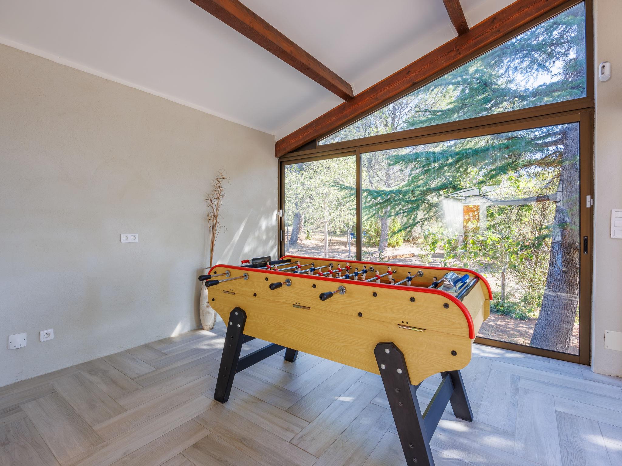 “As part of the water restriction measures linked to the drought in certain departments, please note that the rental swimming pool may be closed until the lifting of the legal restrictions authorizing the filling and topping up again. in water from all swimming pools and basins for private use. For more official information on measures to limit or suspend water use in France: Propluvia - Home (developpement-durable.gouv.fr) » beautiful single-family house "Les Garrigues d'Ozilhan". 500 m from the centre of St. Hilaire d'Ozilhan, on the outskirts, 17 km from the centre of Uzès, 25 km from the centre of Avignon, 6 km from the river, in the countryside. Private: property 5'000 m2 with trees, natural garden, swimming pool angular, fenced (10 x 5 m, depth 40 - 180 cm, seasonal availability: 01.Apr. - 30.Sep.) with alarm system. Outdoor shower, hot tub, table tennis, terrace, pool maintenance by the owner/gardener. In the house: table tennis, billiard table, table football, storage room for bicycles. Parking (for 4 cars) on the premises. Shop 500 m, supermarket 5 km, bus stop "Le Village" 800 m. Walking paths from the house 50 m. Nearby attractions: Pont du Gard 4 km, Uzès 17 km, Avignon 25 km, Castillon du Gard 4 km, Remoulins 3 km, Nimes 30 km. Hiking paths: Nombreux chemins de randonées, La Garrigue.