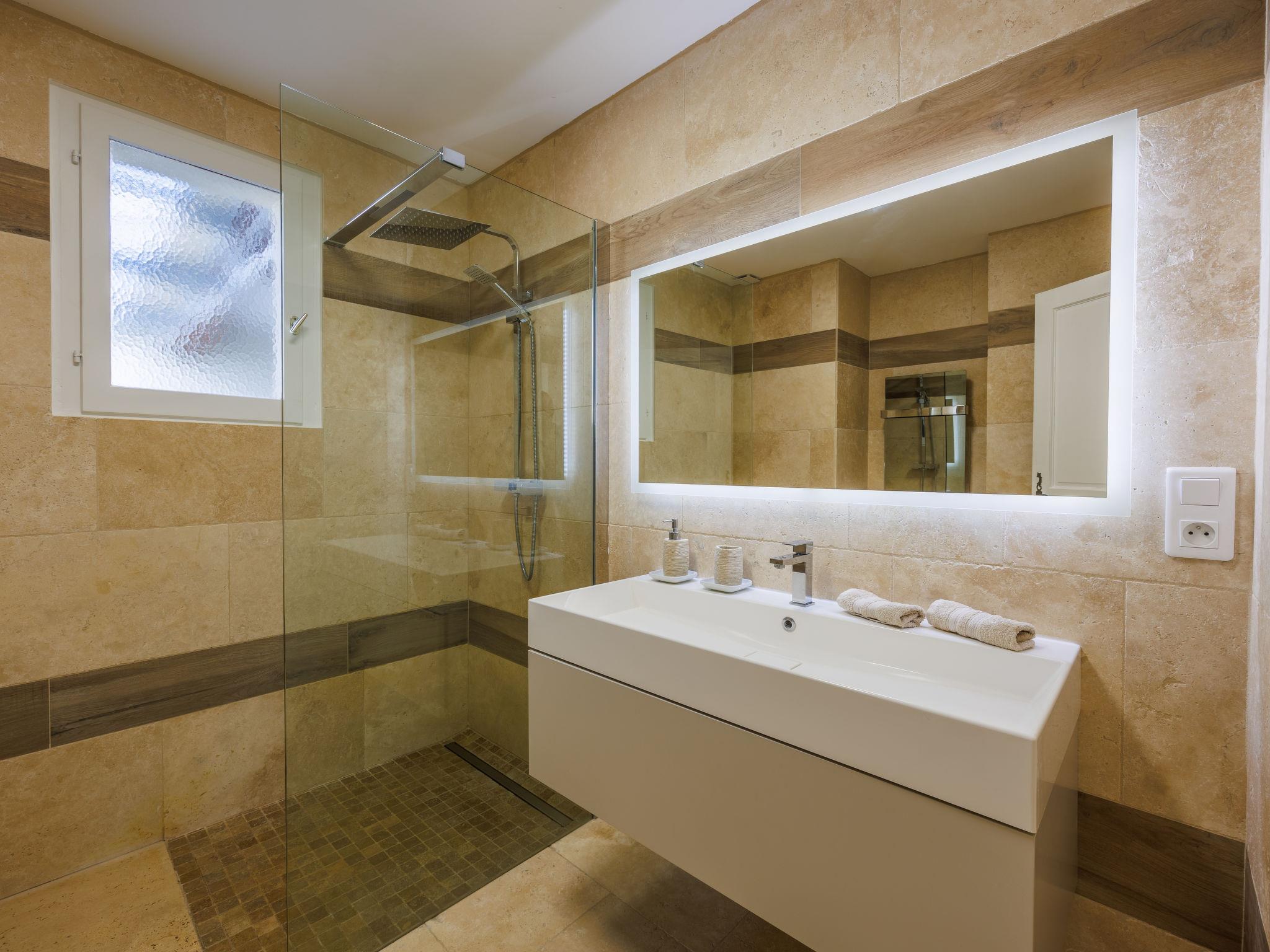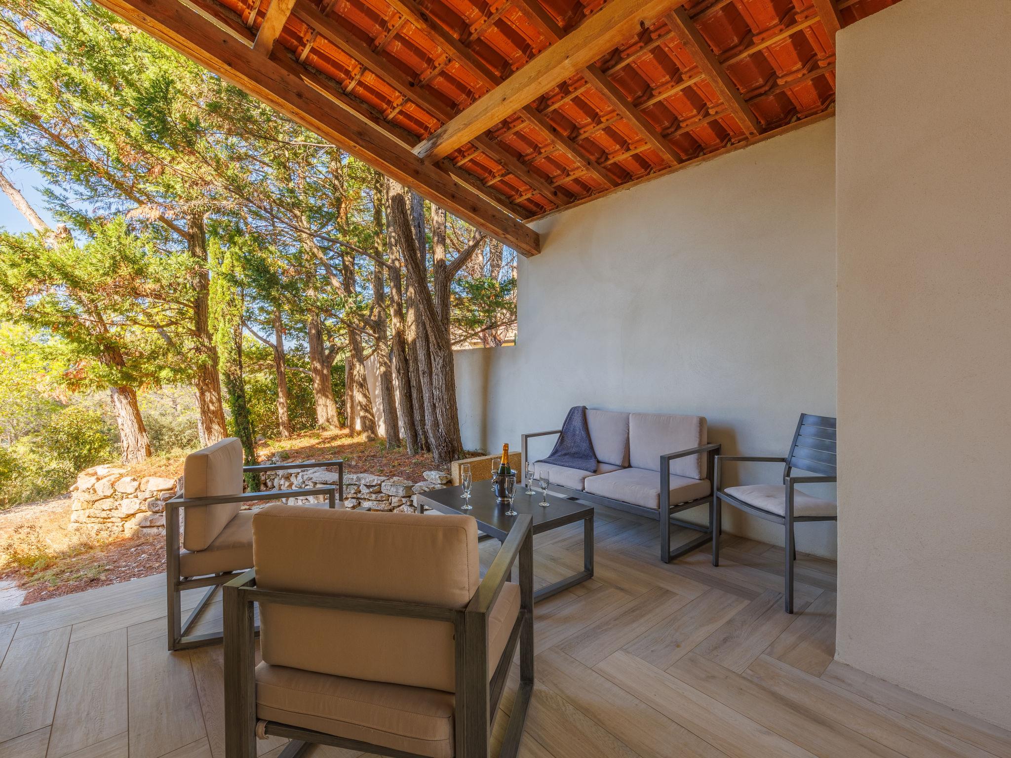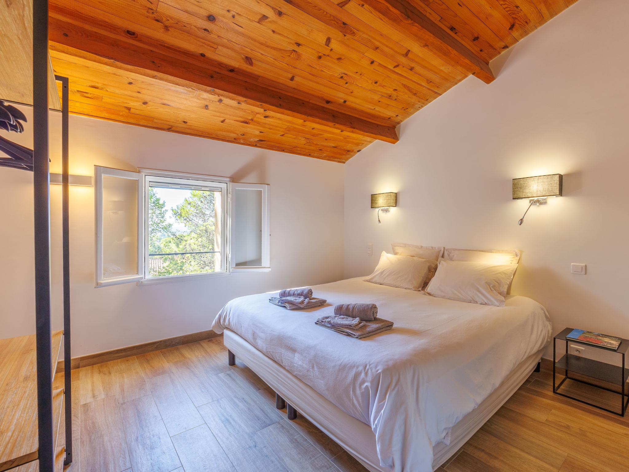 "Les Garrigues d'Ozilhan", 6-room house 200 m2 on 2 levels. Comfortable and tasteful furnishings: living/dining room with open-hearth fireplace (only for decoration), dining table, radio and hi-fi system. Exit to the terrace. 1 room with 1 french bed (180 cm, length 200 cm), shower/WC and satellite TV (flat screen), fan. Playroom with satellite TV (flat screen), DVD, DVD collection available and air conditioning. Exit to the terrace. Open kitchen (oven, dishwasher, 4 induction hot plates, toaster, kettle, microwave, freezer, electric coffee machine, raclette grill) with radio. Exit to the terrace. Shower, 2 sep. WC's. Electric heating. Upper floor: 1 room with 2 beds (90 cm, length 200 cm), shower/WC. 1 room with 2 beds (90 cm, length 200 cm), shower/WC and fan. 1 room with 1 french bed (180 cm, length 200 cm), shower/WC. Lounge with library and satellite TV (flat screen), DVD. Shower, sep. WC. Electric heating. Natural stone floors. Large terrace 25 m2, roofed, south facing position, large terrace 16 m2, roofed, west facing position. Terrace furniture, barbecue, deck chairs, sitting area. Beautiful view of the garden, the countryside and Castillon du Gard (4 km). Facilities: washing machine, dryer, iron, mosquito net, children's high chair, baby cot, baby changing unit. Internet (WiFi, free). Please note: non-smokers only. Smoke alarm. When there are less than the maximum number of guests staying at the property, not all of the bedrooms will be available for use. FR6392.601.1