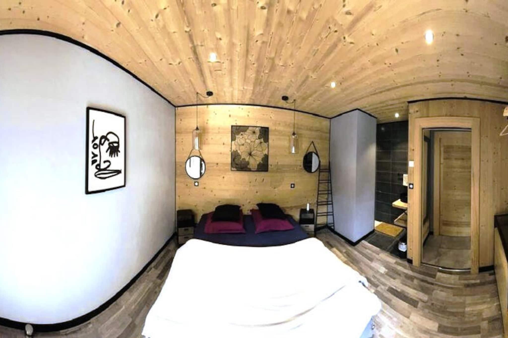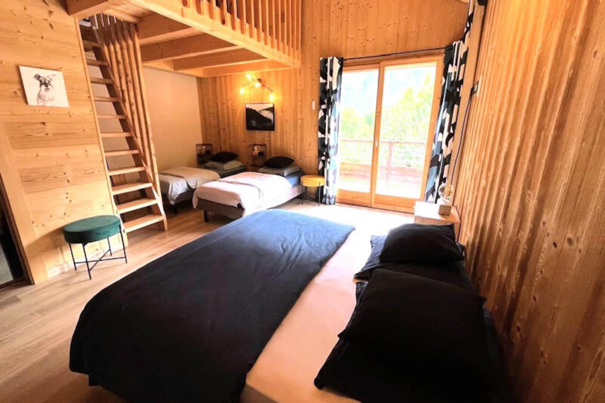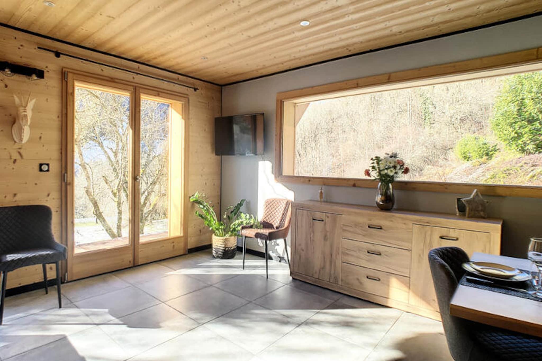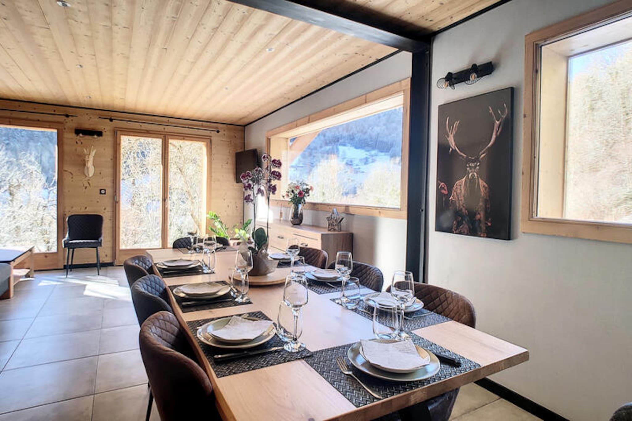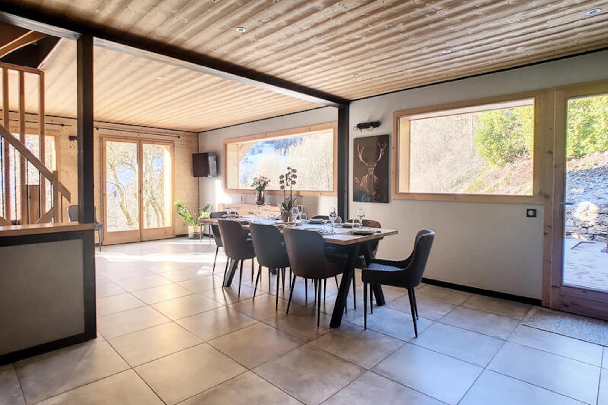 This spacious and modern chalet offers comfortable accommodations for up to 10 people with 4 bedrooms and 3 bathrooms. The chalet is perfect for families or groups, featuring two master suites with double beds and a large family room with a combination of double and single beds. The property is pet-free, ensuring a clean and allergy-friendly environment. Duvets and pillows are provided for all beds, but guests should bring their own bed linen and towels. A baby bed is available for younger guests, making it an ideal choice for families. Nestled in a serene location near the Saint Guérin oratory, the chalet offers breathtaking views of the valley and surrounding mountains. It’s just a short 5-minute walk to the climbing wall and via ferrata, perfect for outdoor enthusiasts. Numerous hiking trails start directly from the chalet, making it a prime spot for nature lovers. The local area offers a peaceful retreat, yet it is close to the vibrant amenities of nearby Saint-Jean-d'Aulps, where guests can explore local cafes, restaurants, and markets, offering a taste of the region's charm. The chalet is fully equipped for a comfortable stay, including a modern kitchen with a ceramic hob, dishwasher, fridge, oven, and microwave. The open-plan living and dining area boasts a spacious and bright environment with large windows that open to a 60m² wooden terrace, offering stunning views of the valley. The chalet also features a laundry room with a washing machine and ironing facilities. Additional amenities include Wi-Fi, a raclette machine, a fondue machine, and private parking spaces.