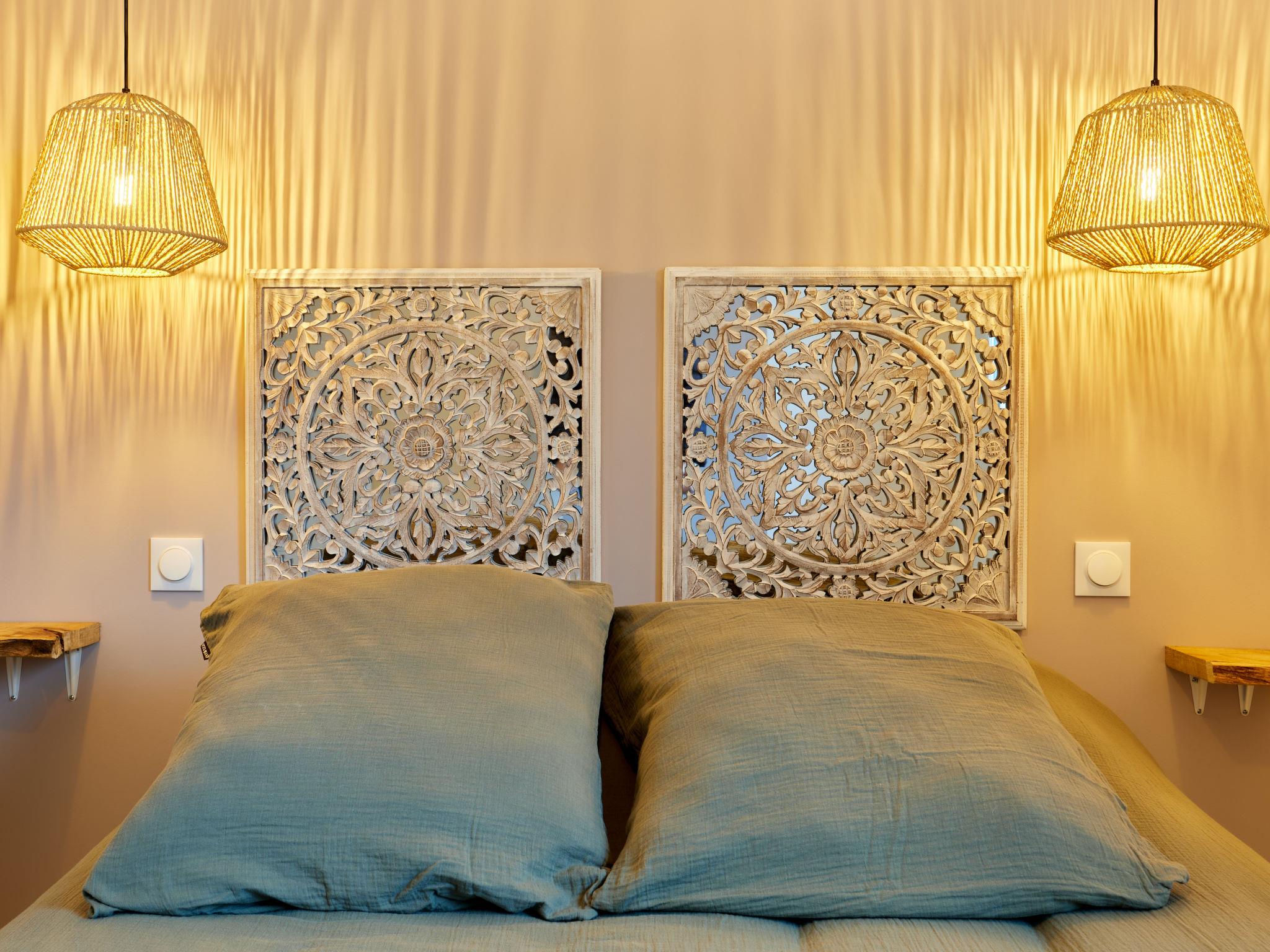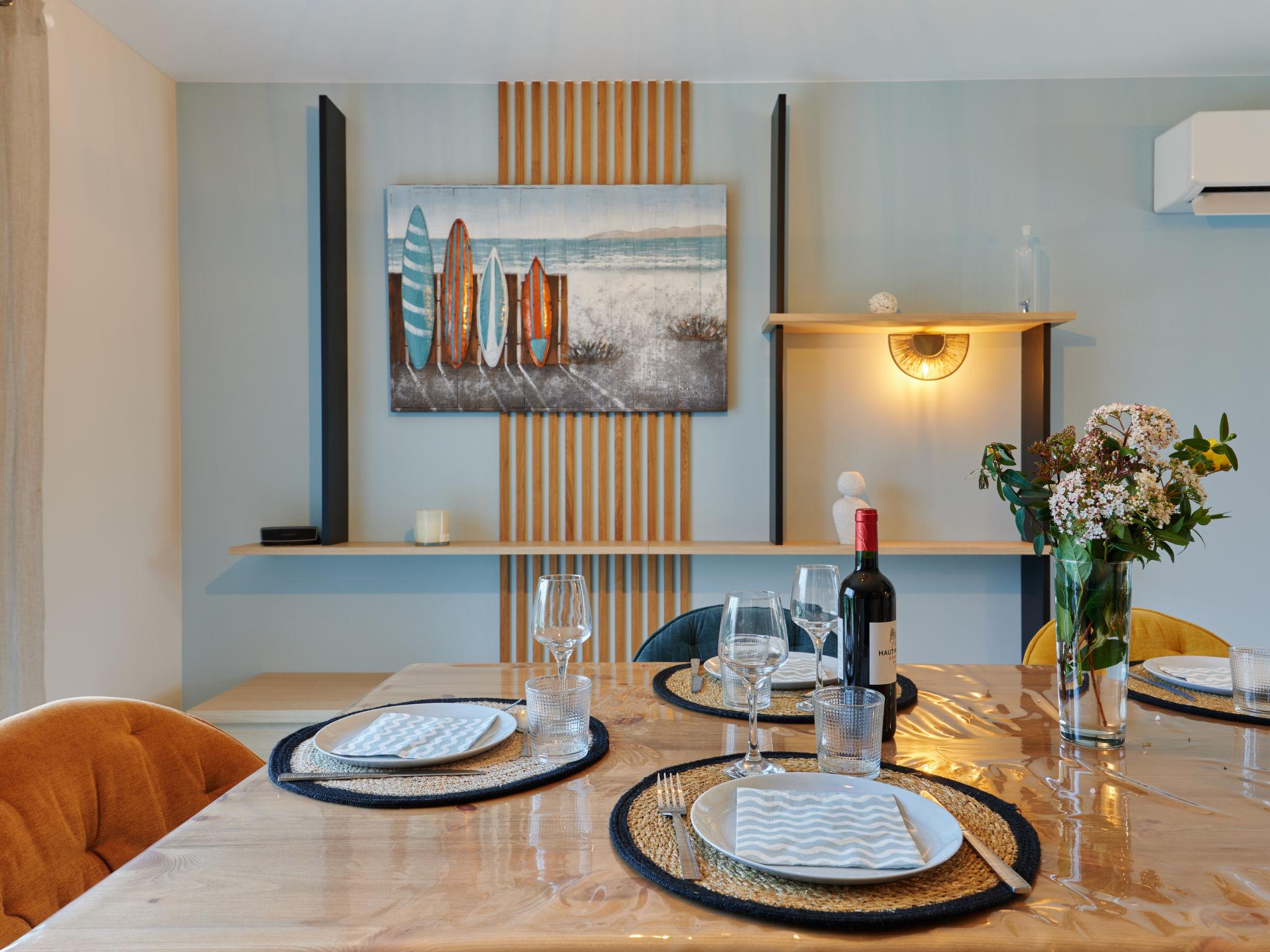 4-room house 70 m2. Comfortable and modern furnishings: living/dining room, south facing position and west facing position with TV (flat screen), air conditioning. Exit to the terrace. 2 rooms, each room with 1 french bed (1 x 140 cm, length 190 cm). 1 room with 1 french bed (140 cm, length 190 cm), TV and flat screen with separate WC. Open kitchen (1 induction hot plates, 4 gas rings, toaster, kettle, microwave). Shower/WC. Air-conditioning. Terrace 40 m2. Terrace furniture, barbecue, deck chairs (6). Facilities: washing machine, dryer, children's high chair, baby cot, logs (free). Internet (WiFi, free). Parking (2 cars). Please note: maximum 2 pets/ dogs allowed. Smoke alarm. Offer by a private individual according to Art. 155, IV of CGI.