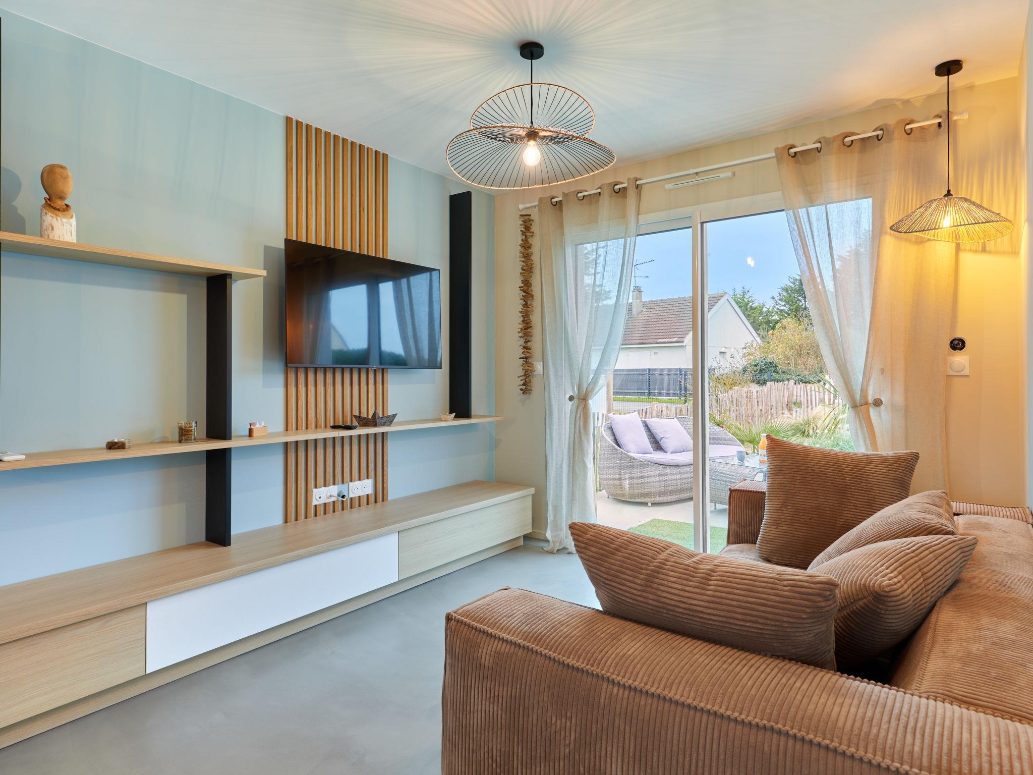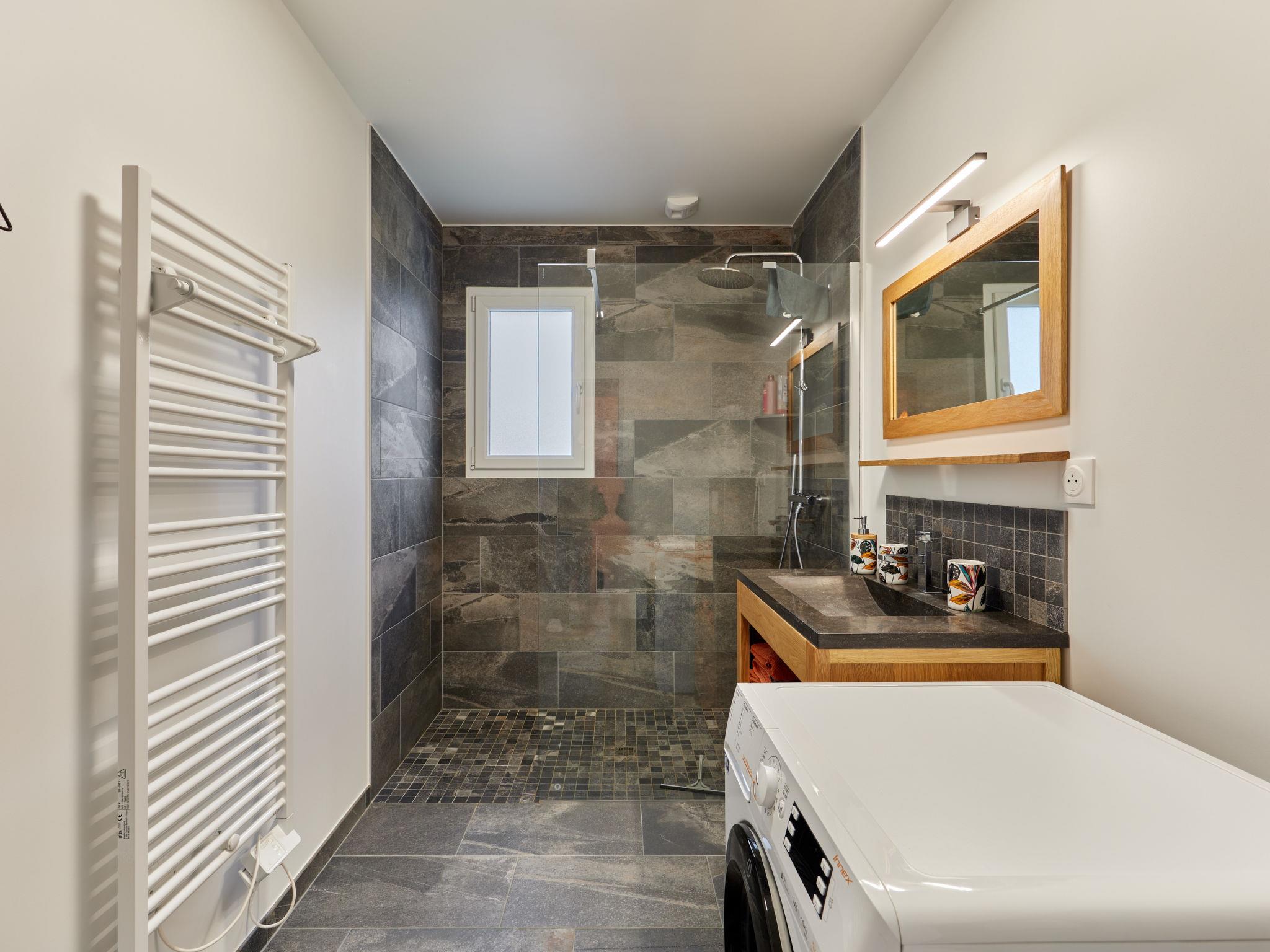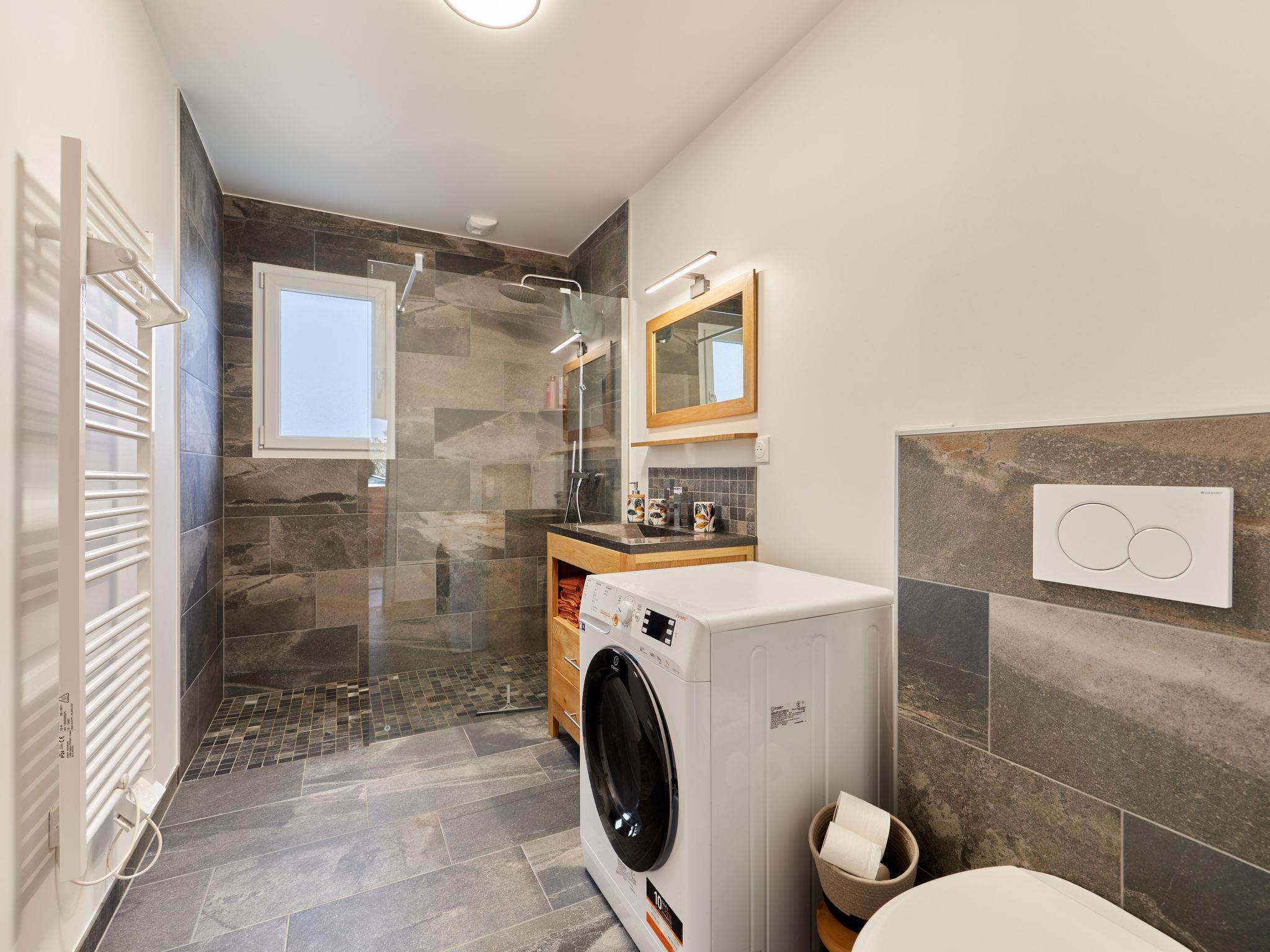 Modern, comfortable single-family house "Saro". 400 m from the sea, 400 m from the beach. Private: property 380 m2 (fenced). In the house: hot tub. Grocery 2 km, supermarket 3 km, restaurant 1 km, bar 1 km, bakery 2 km, bus stop 1 km. Sports harbour 5 km, golf course (18 hole) 1 km, sailing school 4 km, riding stable 400 m. Nearby attractions: Cherbourg 40 km, Portbail 5 km, Carteret 3 km, Agon coutainville 47 m, Granville 78 m, Air de jeux 200 m. Hiking paths: Cap de carteret, Vieille église 5 km. Please note: car recommended. Entertainment in the season.