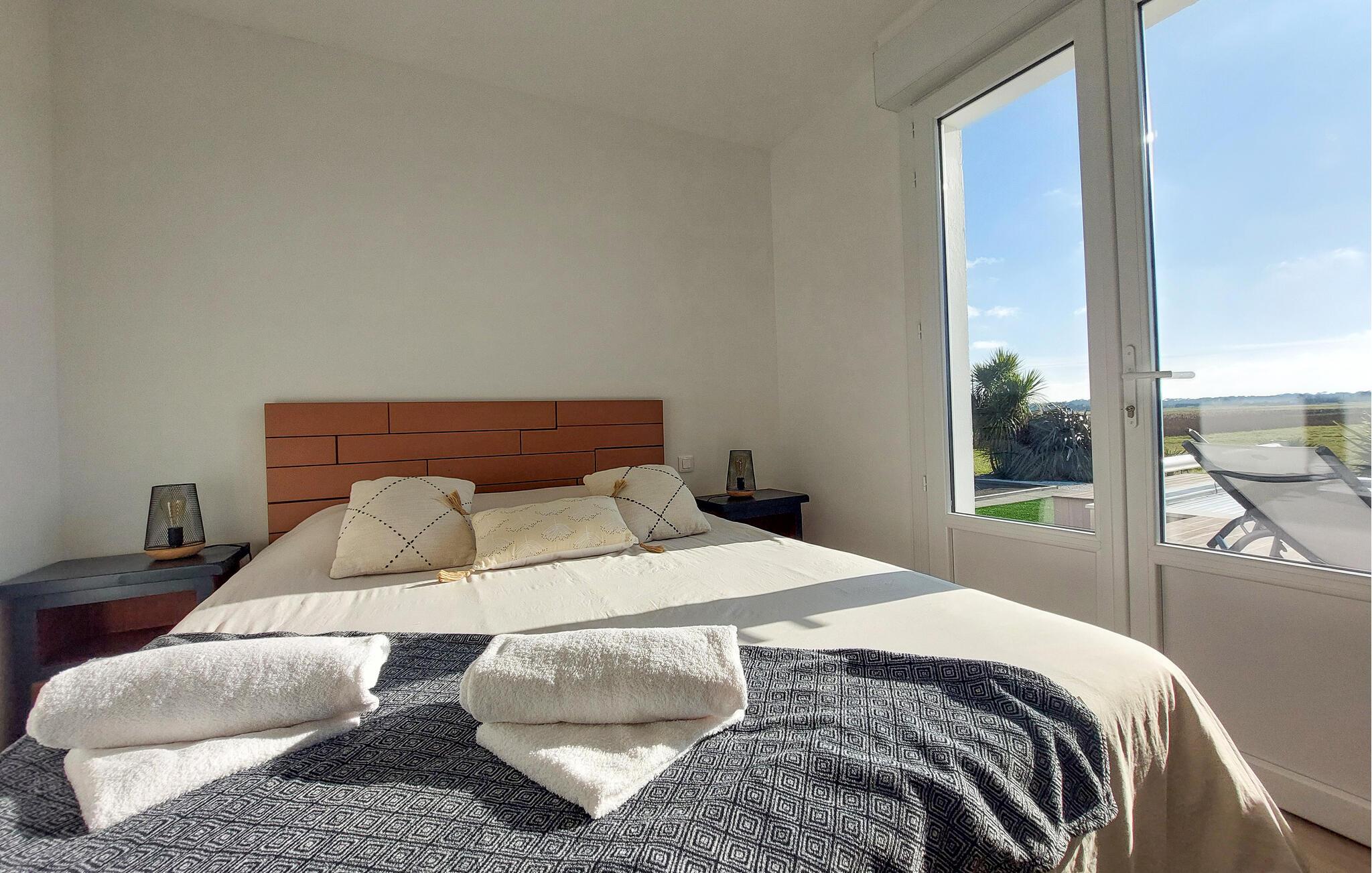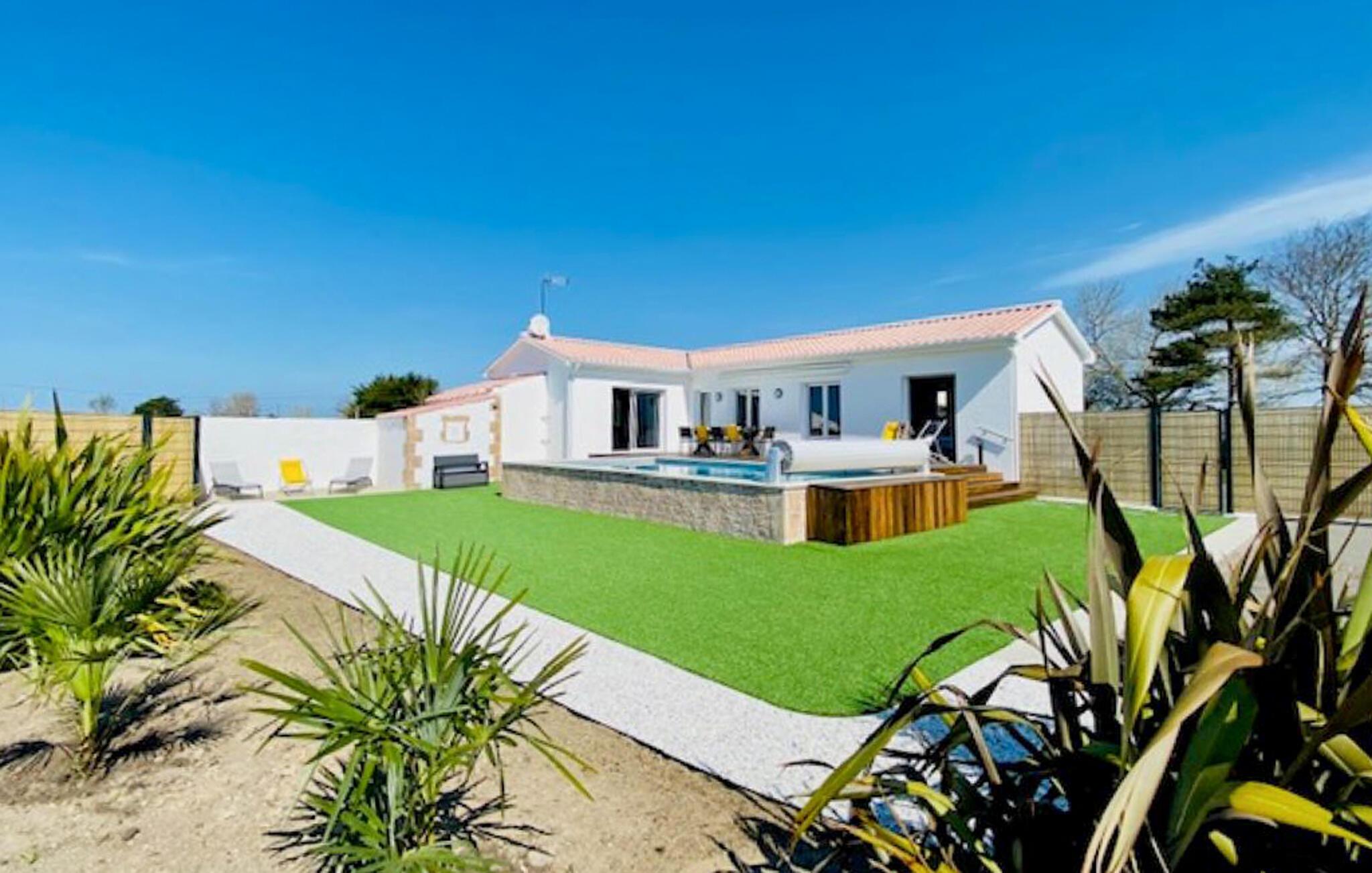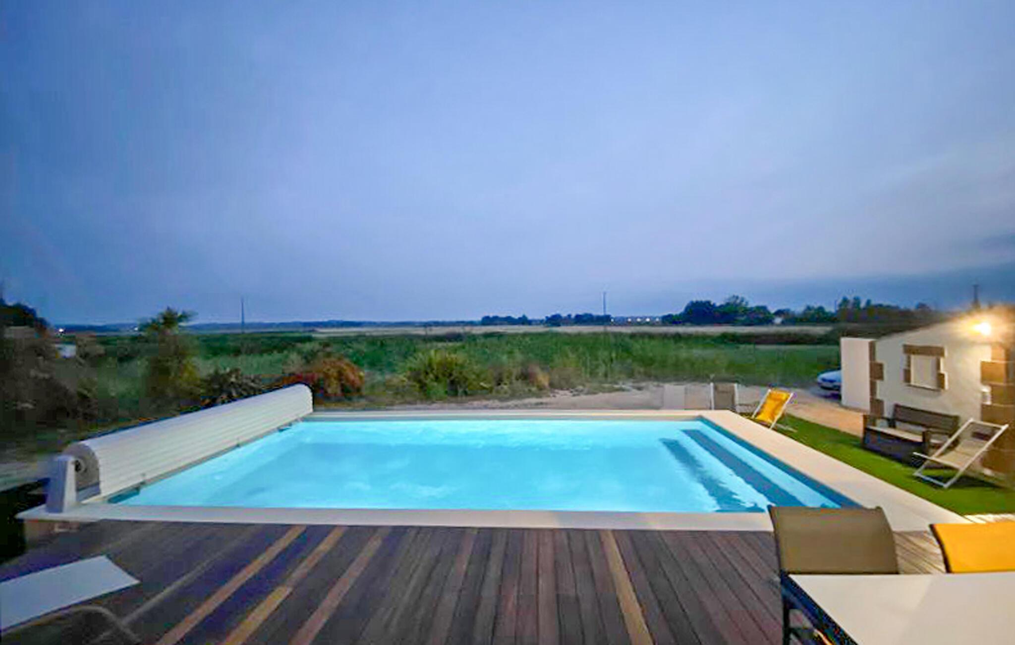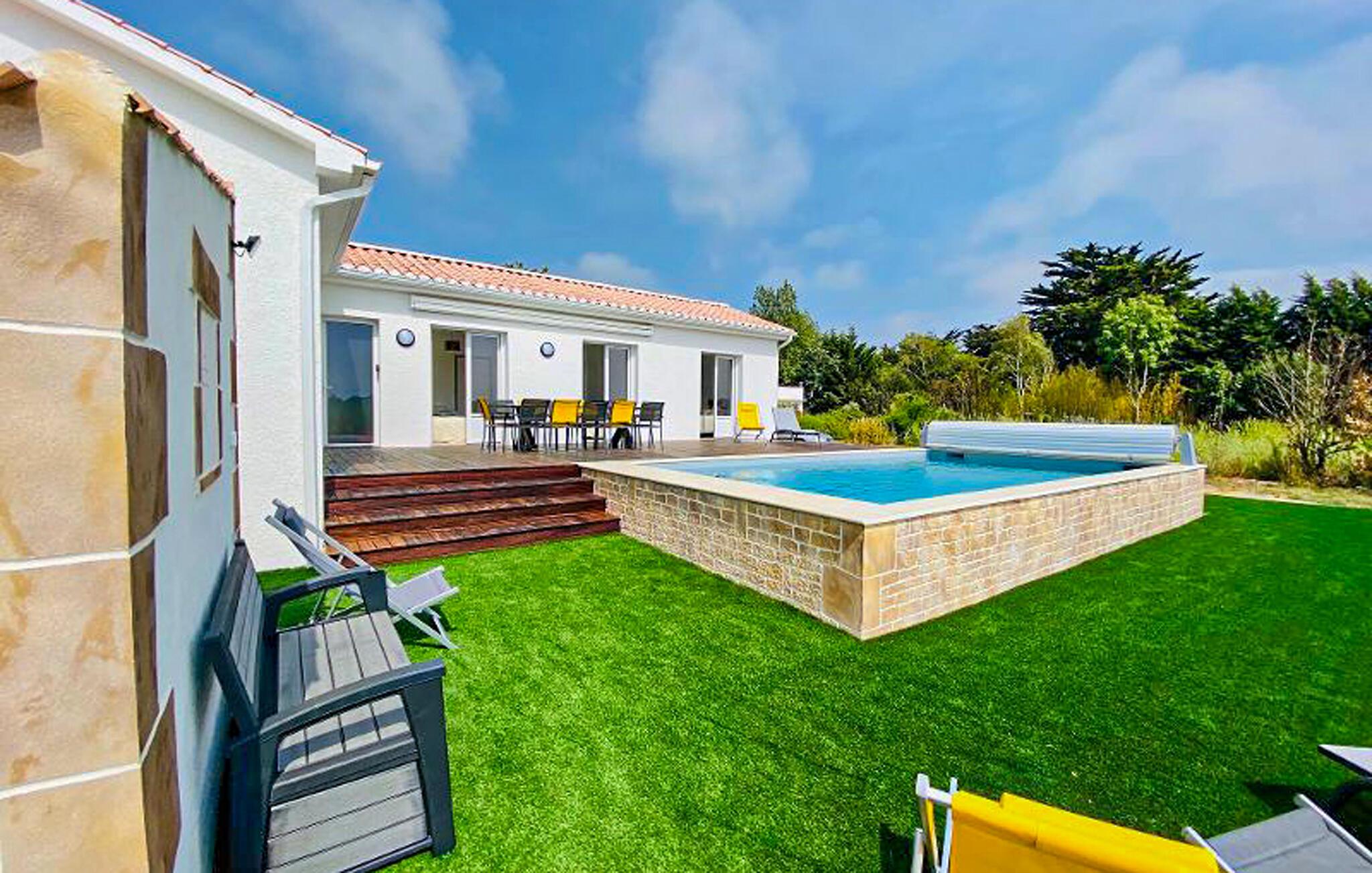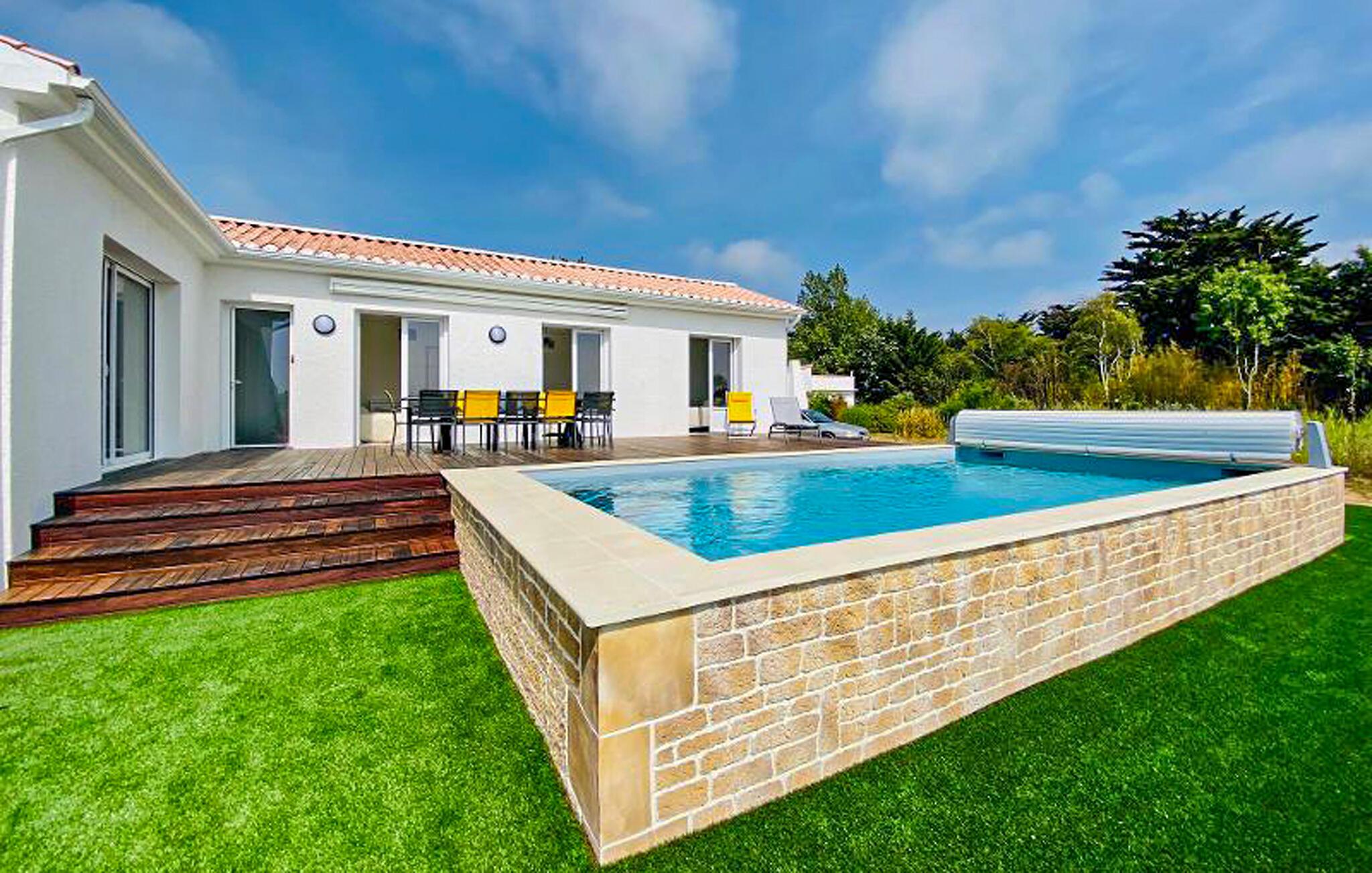 Freuen Sie sich auf einen sonnigen Urlaub in diesem komfortablen Ferienhaus mit Pool.