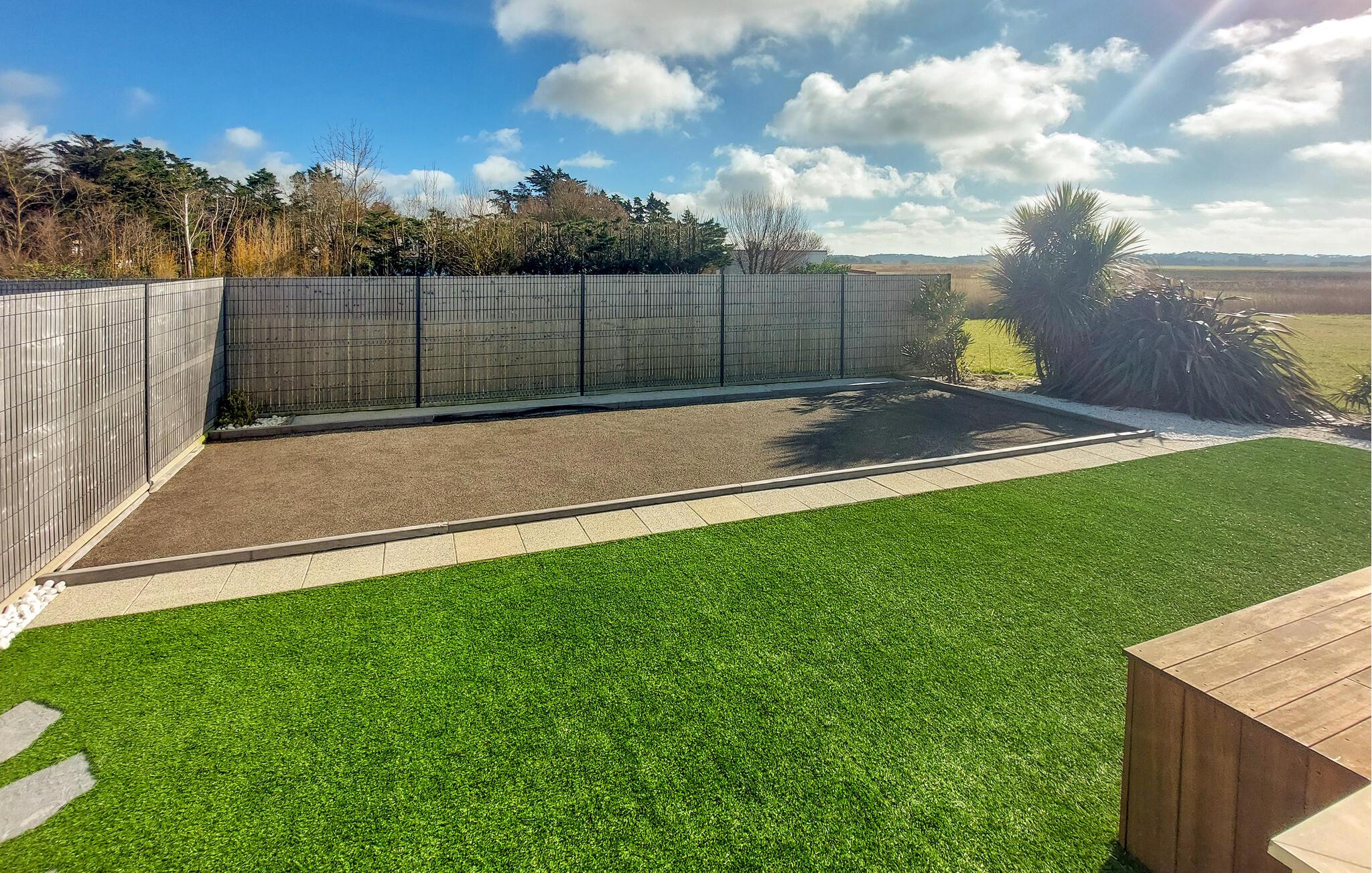 Der übersichtlich gestaltete Außenbereich ist nicht einsehbar und lädt zum Barfußlaufen ein. Starten Sie den Tag mit einem Frühstück auf der Terrasse, erfrischen Sie sich im Pool und gönnen Sie sich Ruhe auf der Sonnenliege. Messen Sie Ihr Talent auf der Boule-Bahn und genießen Sie stimmungsvolle Barbecues in der Abendsonne.