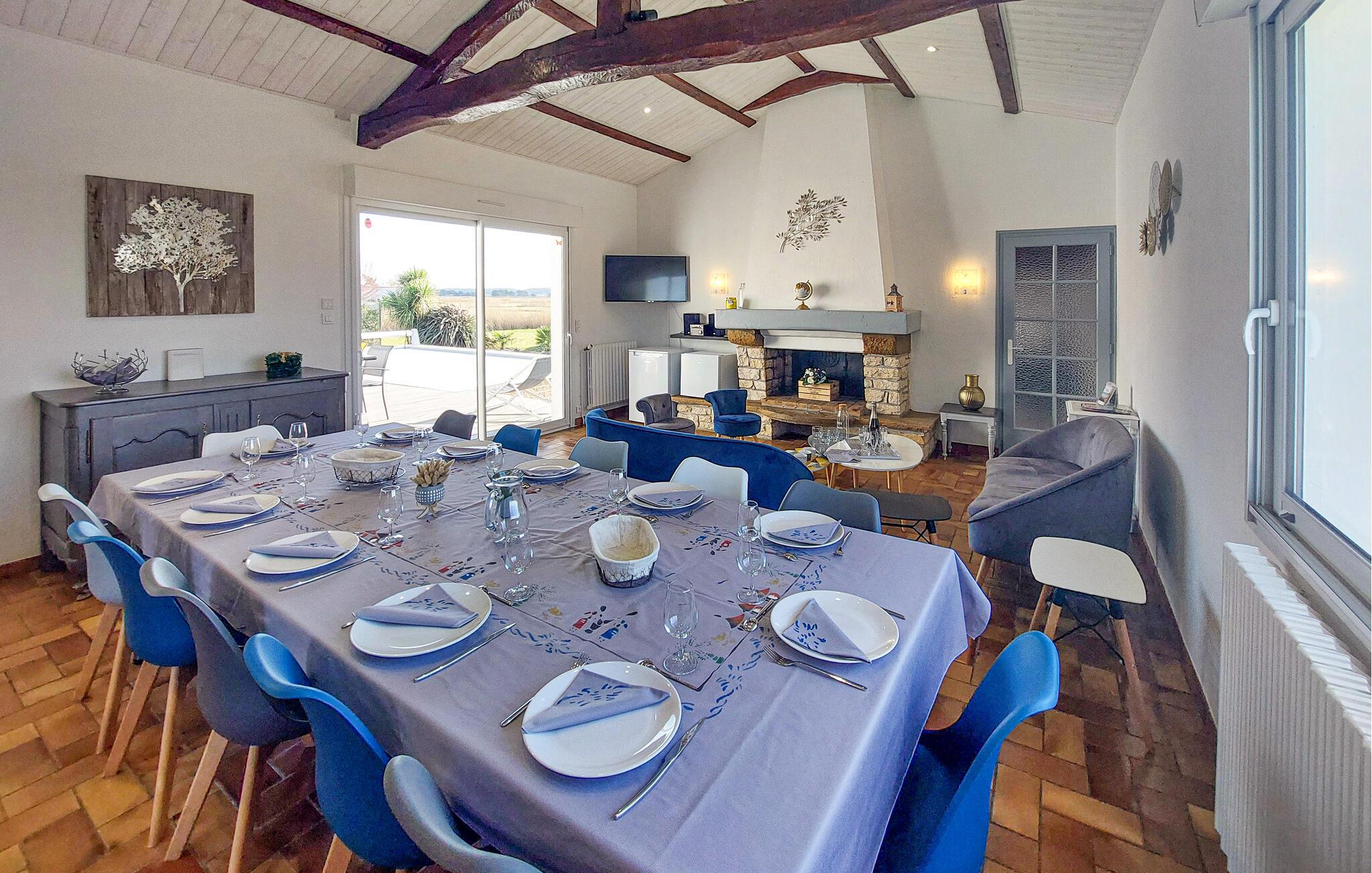 Dieses kinderfreundliche Urlaubsdomizil bietet reichlich Platz, um gemeinsam mit einer befreundeten Familie herrliche Tage nahe der Atlantikküste zu verbringen. Veranstalten Sie gesellige Kochabende in der modernen Küche und nehmen Sie am großzügigen Esstisch Platz. Machen Sie es sich im geschmackvoll eingerichteten Wohnzimmer bequem und verbringen Sie fröhliche Momente bei einem Gesellschaftsspiel oder nutzen Sie die freie Zeit für gute Gespräche bei einem Glas Wein.