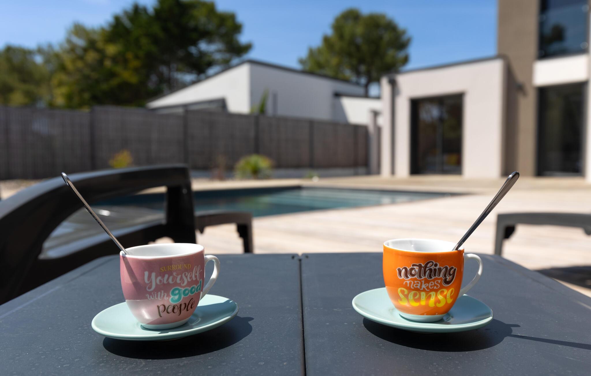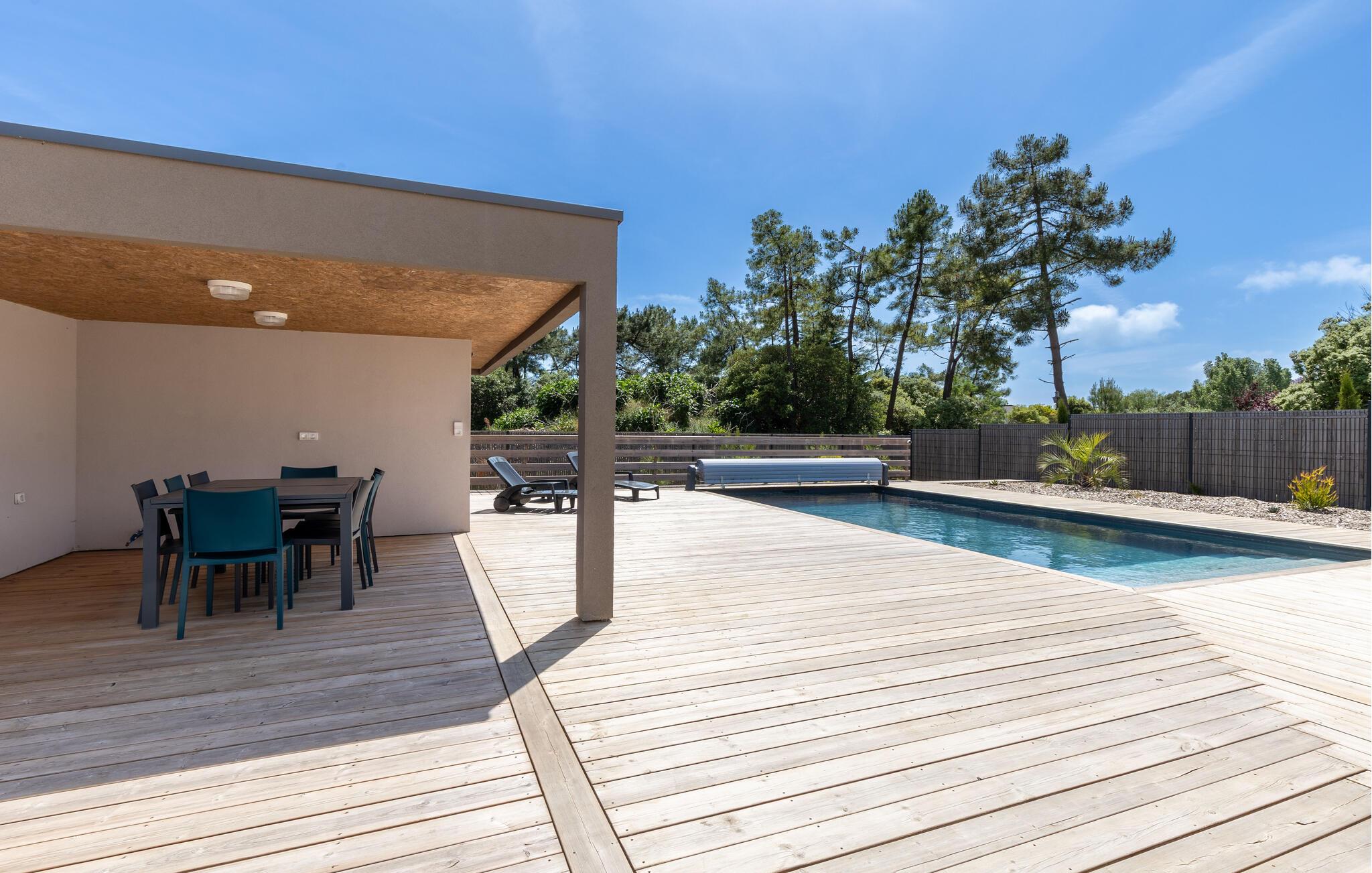 Gehen Sie barfuß hinaus auf die sonnenverwöhnte Terrasse und ziehen Sie gleich nach dem Aufstehen ruhige Bahnen im großen Pool. Genießen Sie ein herrliches Frühstück auf der überdachten Terrasse, plaudern Sie bei einem Glas Wein auf den bequemen Gartenmöbeln und lassen Sie bei stimmungsvollen Grillabenden die friedliche Atmosphäre auf sich wirken.
