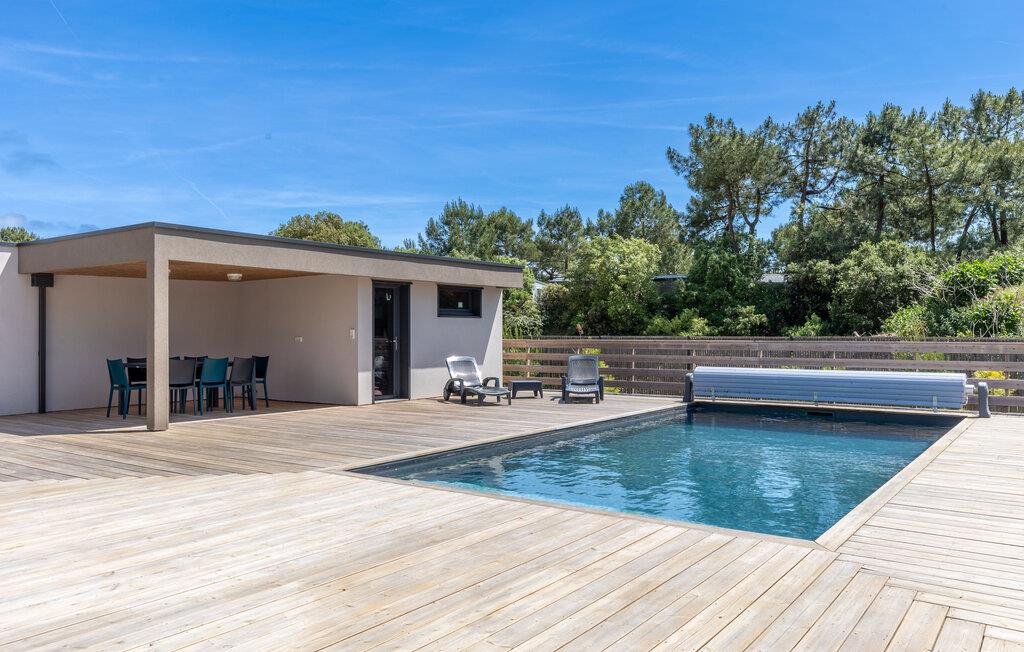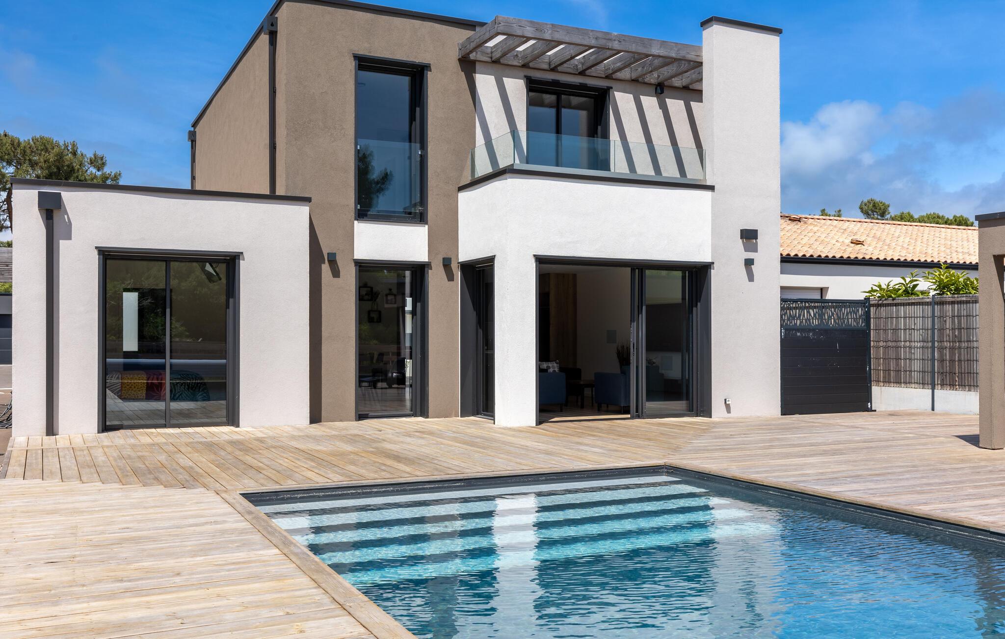 Gönnen Sie sich eine traumhafte Auszeit in diesem großzügigen Ferienhaus mit Pool in Strandnähe.