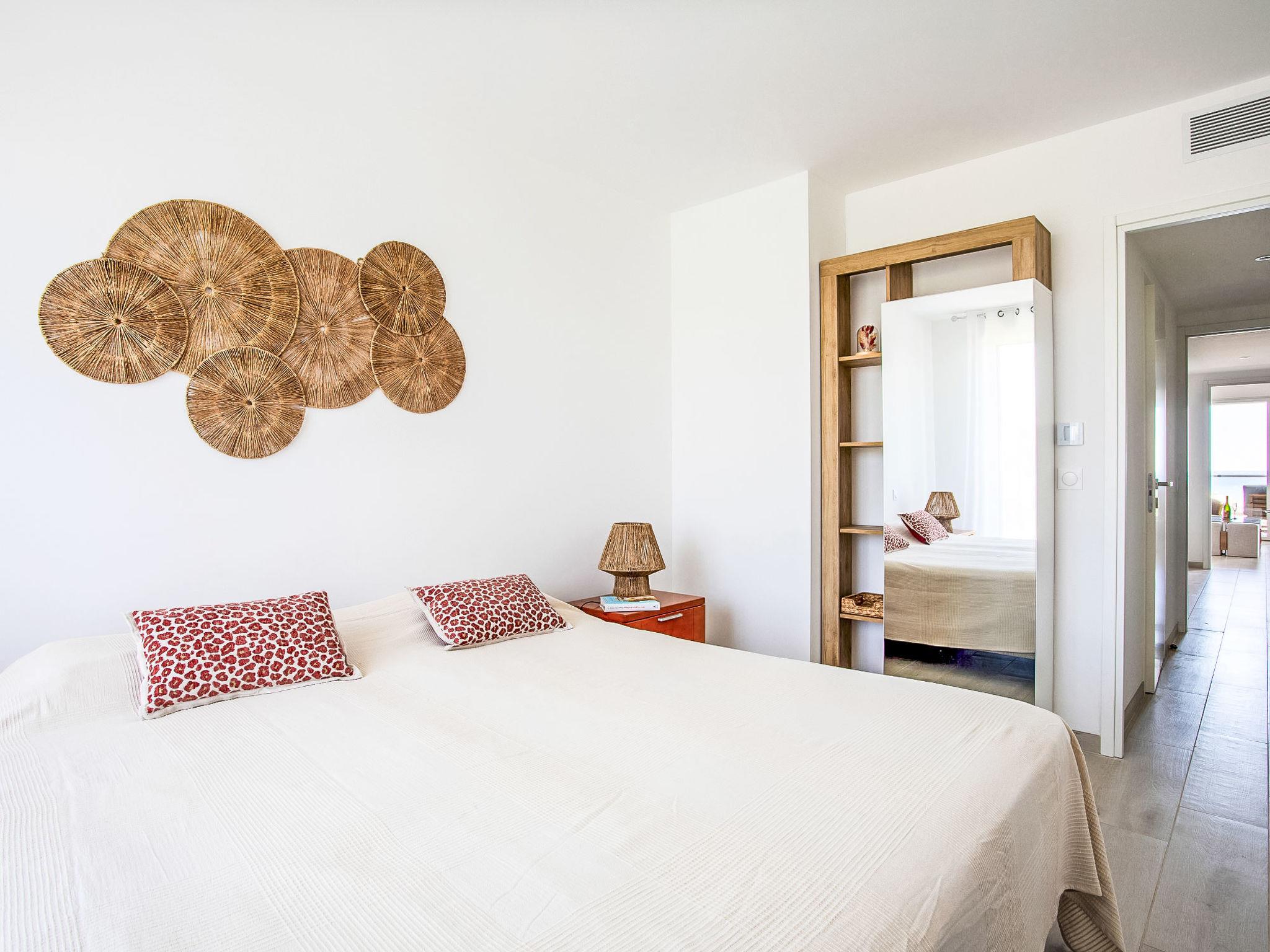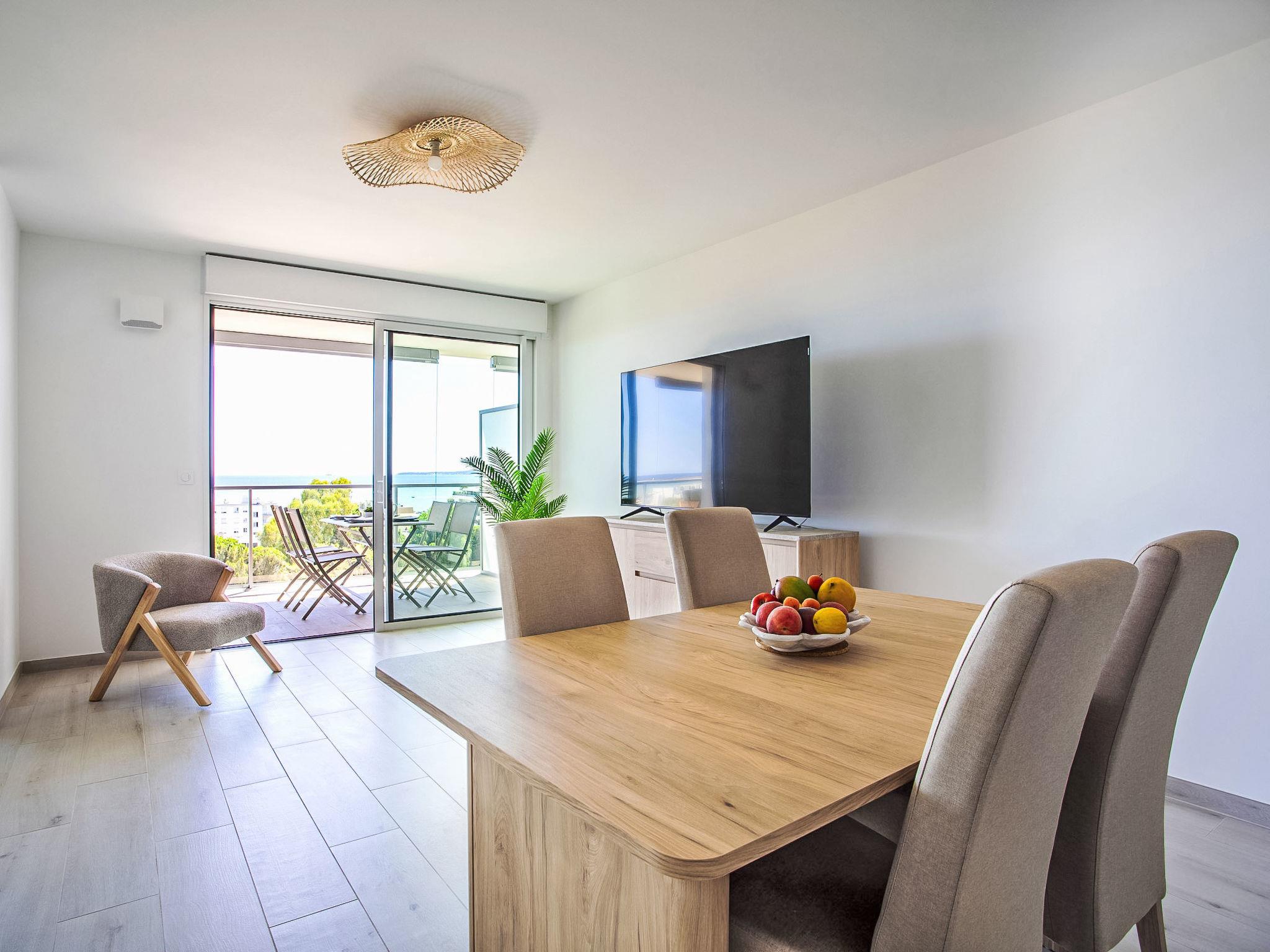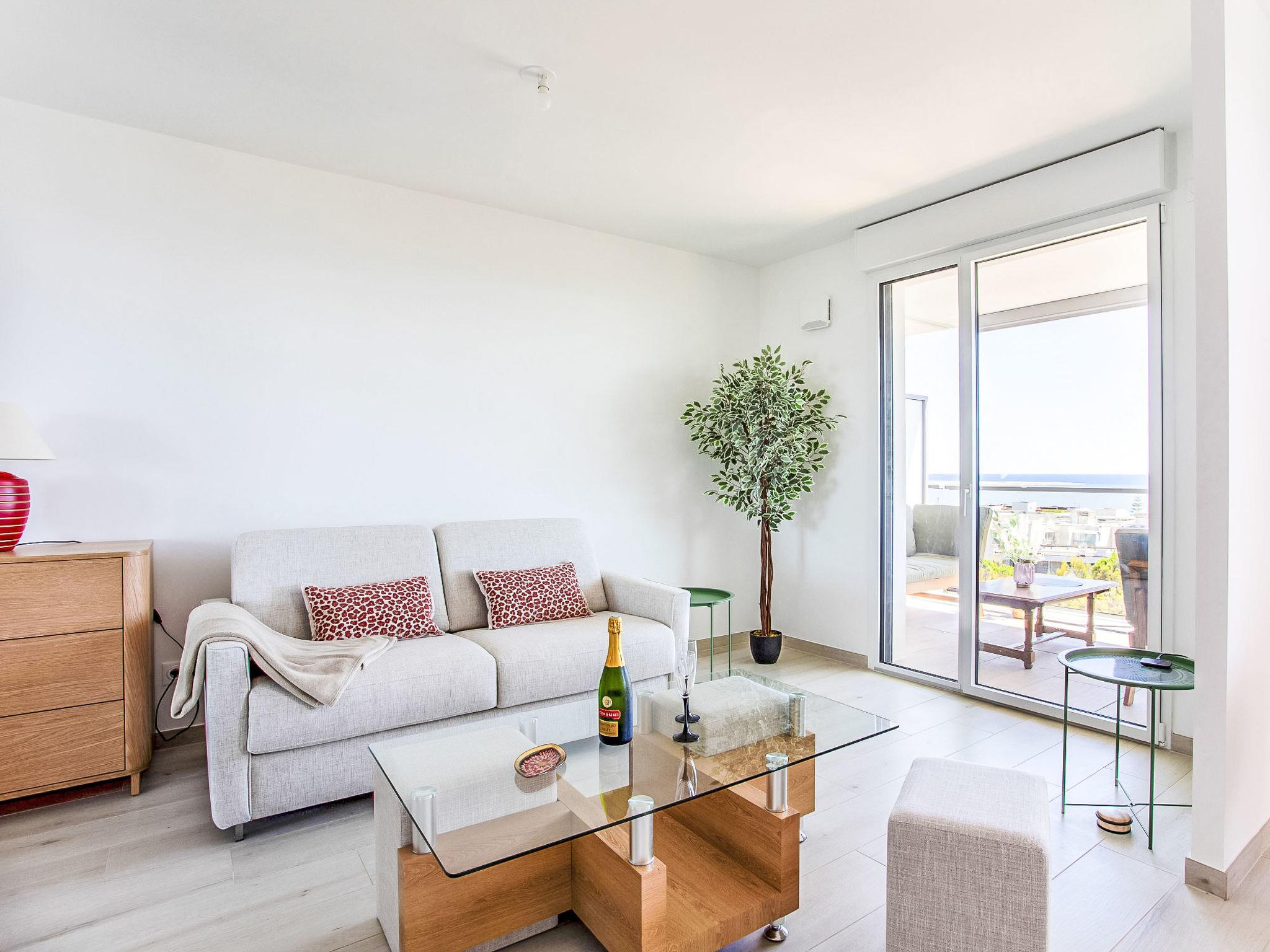 2-room apartment 65 m2 on 6th floor, south facing position. Comfortable and modern furnishings: large living/dining room with 1 double sofabed (1 x 140 cm, length 190 cm), TV (flat screen). Exit to the terrace. 1 room with 1 french bed (2 x 90 cm, length 200 cm), TV (flat screen). Open kitchen (oven, dishwasher, 3 induction hot plates, toaster, kettle, microwave, electric coffee machine). Exit to the terrace. Shower, sep. WC. Heating, air-conditioning. Large terrace 15 m2, south facing position. Terrace furniture. Very beautiful panoramic view of the sea and the bay. Facilities: washing machine, iron, hair dryer. Internet (WiFi, free). Parking space n 160 (roofed, 1 car). Please note: non-smoking house. Smoke alarm. Offer by a private individual according to Art. 155, IV of CGI. 06123038337MX