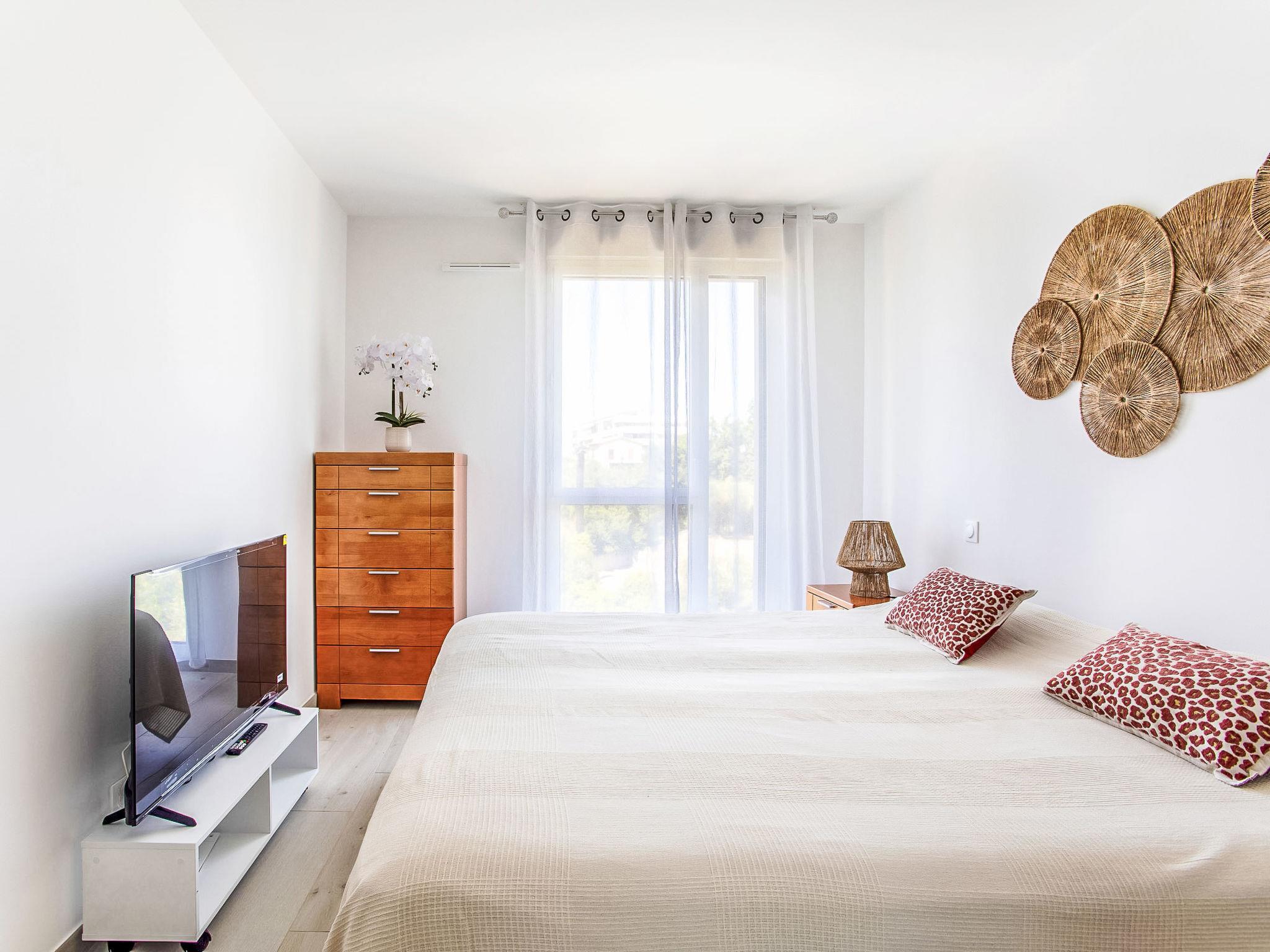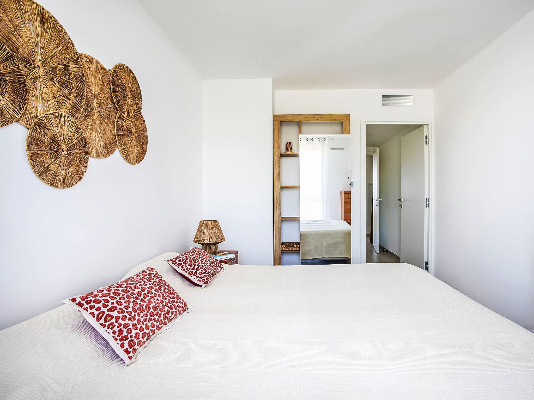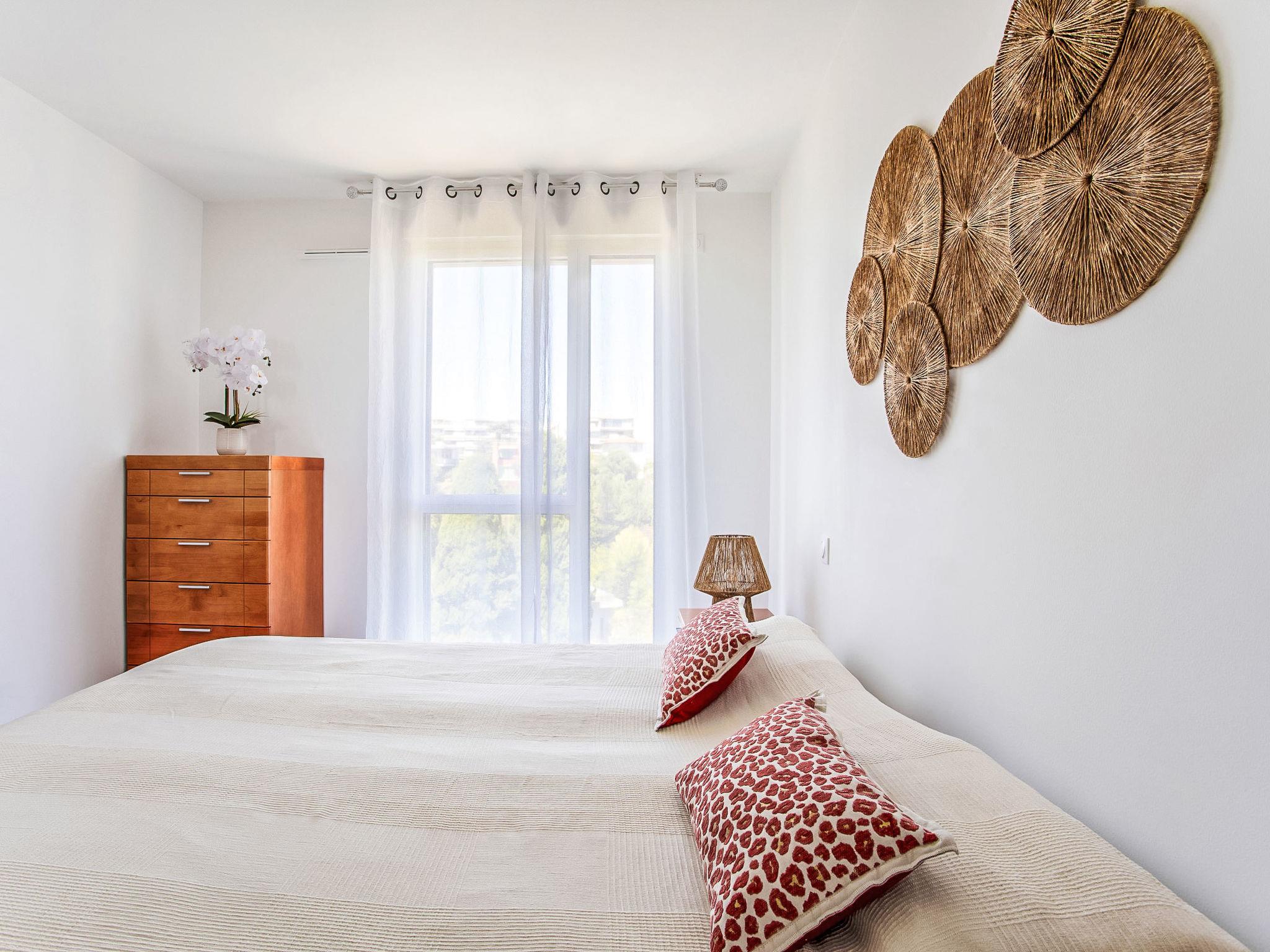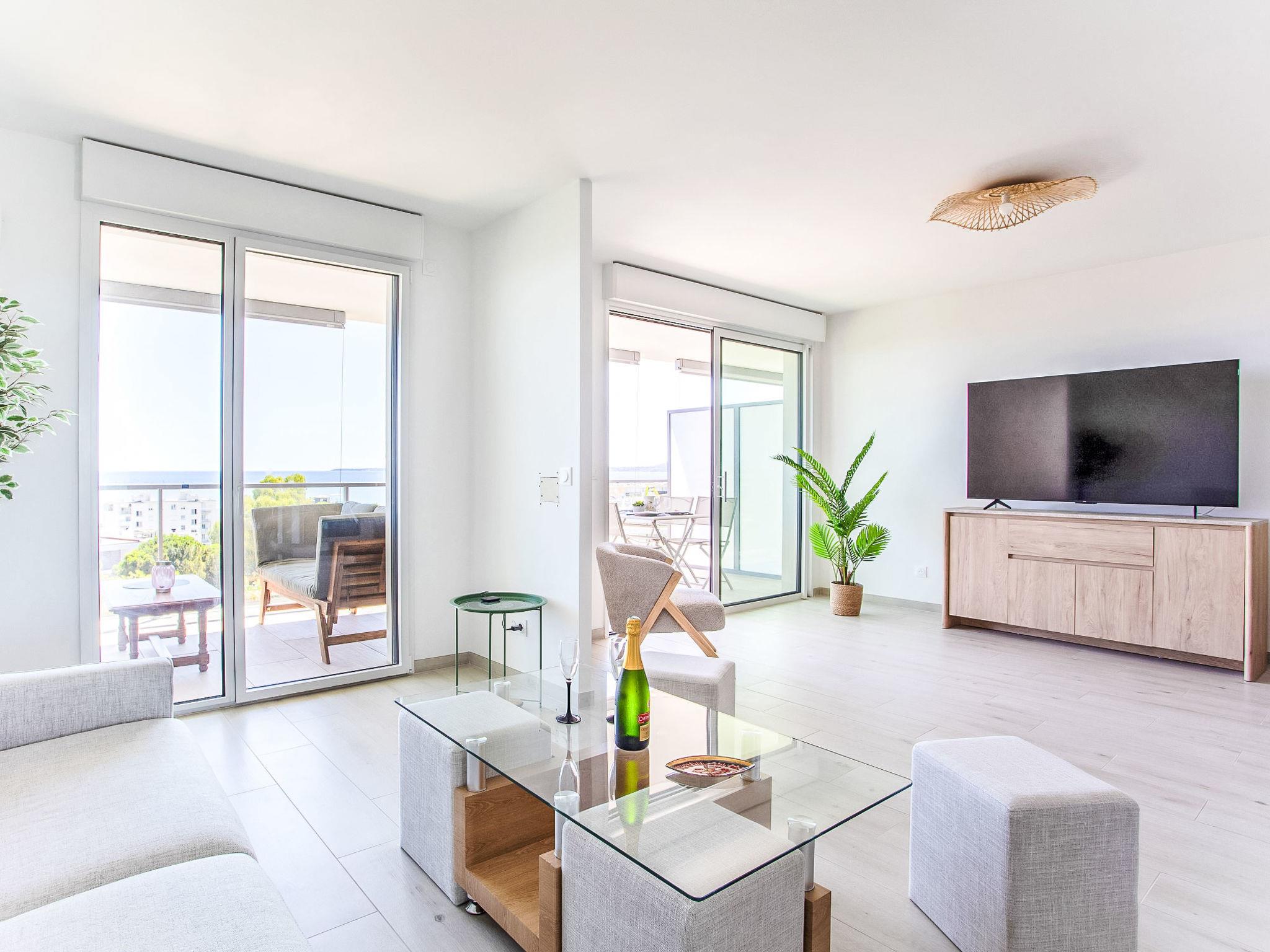 2-room apartment 65 m2 on 6th floor, south facing position. Comfortable and modern furnishings: large living/dining room with 1 double sofabed (1 x 140 cm, length 190 cm), TV (flat screen). Exit to the terrace. 1 room with 1 french bed (2 x 90 cm, length 200 cm), TV (flat screen). Open kitchen (oven, dishwasher, 3 induction hot plates, toaster, kettle, microwave, electric coffee machine). Exit to the terrace. Shower, sep. WC. Heating, air-conditioning. Large terrace 15 m2, south facing position. Terrace furniture. Very beautiful panoramic view of the sea and the bay. Facilities: washing machine, iron, hair dryer. Internet (WiFi, free). Parking space n 160 (roofed, 1 car). Please note: non-smoking house. Smoke alarm. Offer by a private individual according to Art. 155, IV of CGI. 06123038337MX