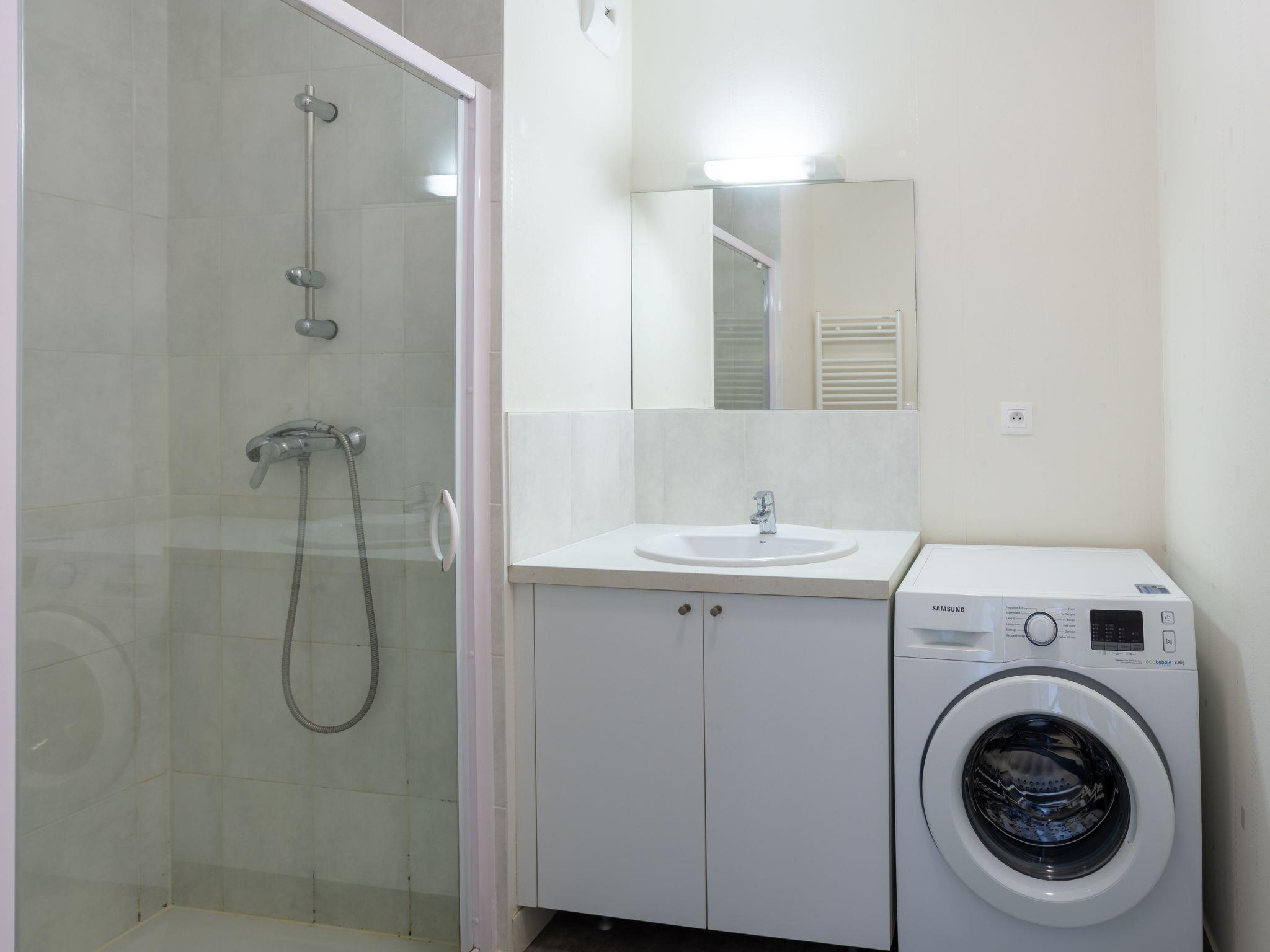 "Montjoie, Bat A", 2-room apartment 45 m2 on 2nd floor. Bright, beautiful and tasteful furnishings: large living/dining room with 1 double sofabed (1 x 140 cm, length 190 cm), TV (flat screen). Exit to the terrace. 1 room with Dressing room with 1 french bed (1 x 160 cm, length 200 cm). Open kitchen (4 ceramic glass hob hotplates, toaster, kettle, microwave, freezer, electric coffee machine). Shower/WC. Gas heating. Small terrace 10 m2. Terrace furniture. Facilities: washing machine, iron. Internet (WiFi, free). Please note: non-smokers only. Smoke alarm. Offer by a private individual according to Art. 155, IV of CGI. 3528821A02320