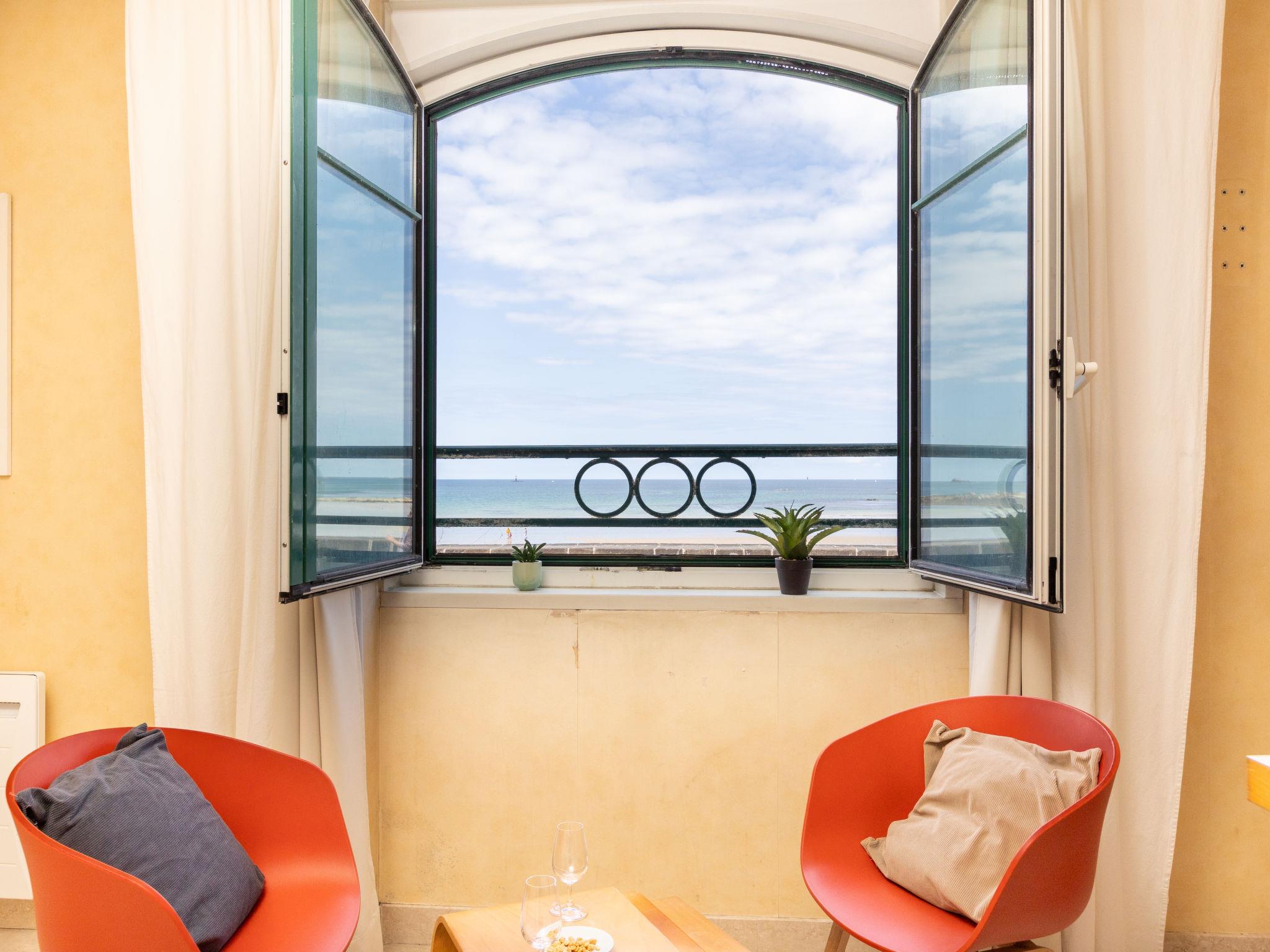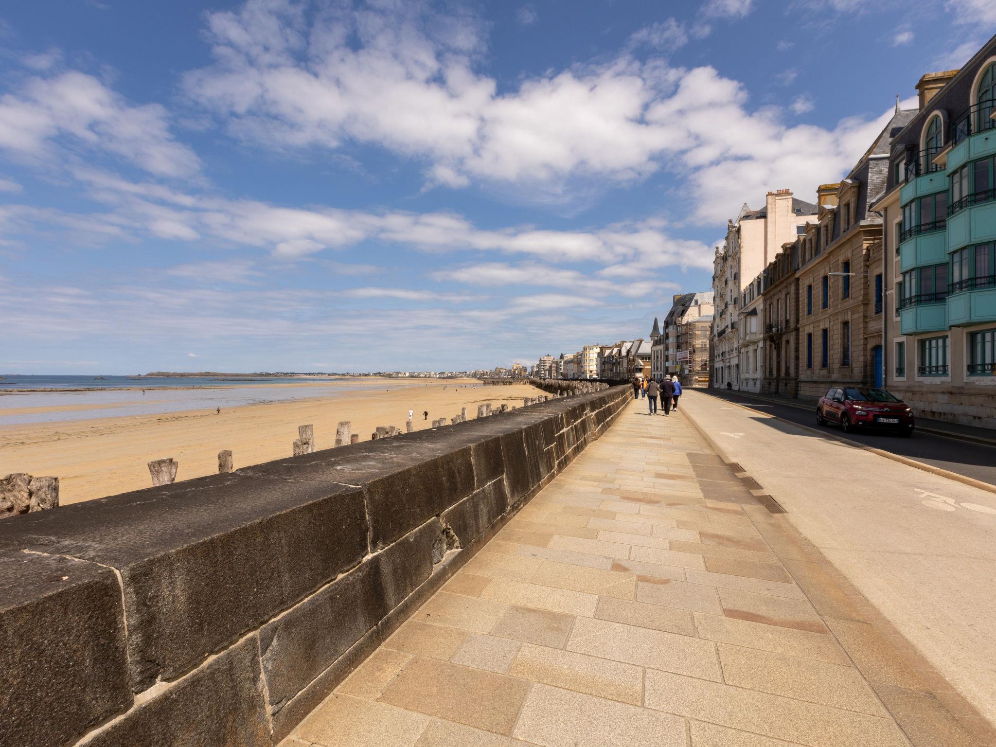 Beautiful apartment block "Les Armateurs", 5 storeys, built in 1995. In a sunny position, 20 m from the sea, 20 m from the beach. In the house: lift. Public parking. Short-stay parking zone (fee), time: 19:00 - 09:00, Monday - Saturday. Shop, grocery 250 m, restaurant 200 m, bar 50 m, bus stop "Dugay Trouin" 450 m, railway station "Gare TGV St Malo" 1.4 km, ferry "Gare maritime du Naye" 1.7 km, sandy beach "Grande Plage du Sillon" 20 m, park "La Briantais" 4 km, diving center 1.5 km, thermal baths "Les Thermes Marins" 2 km. Sports harbour 700 m, surf school 1.7 km, sailing school 1 km. Nearby attractions: Le Mont St Michel 56 km, Cancale 15 km, Dinard 15 km, Piscine Aqaumalo 8 km, Aquarium de St Malo 5 km, Casino Barrière 750 m.