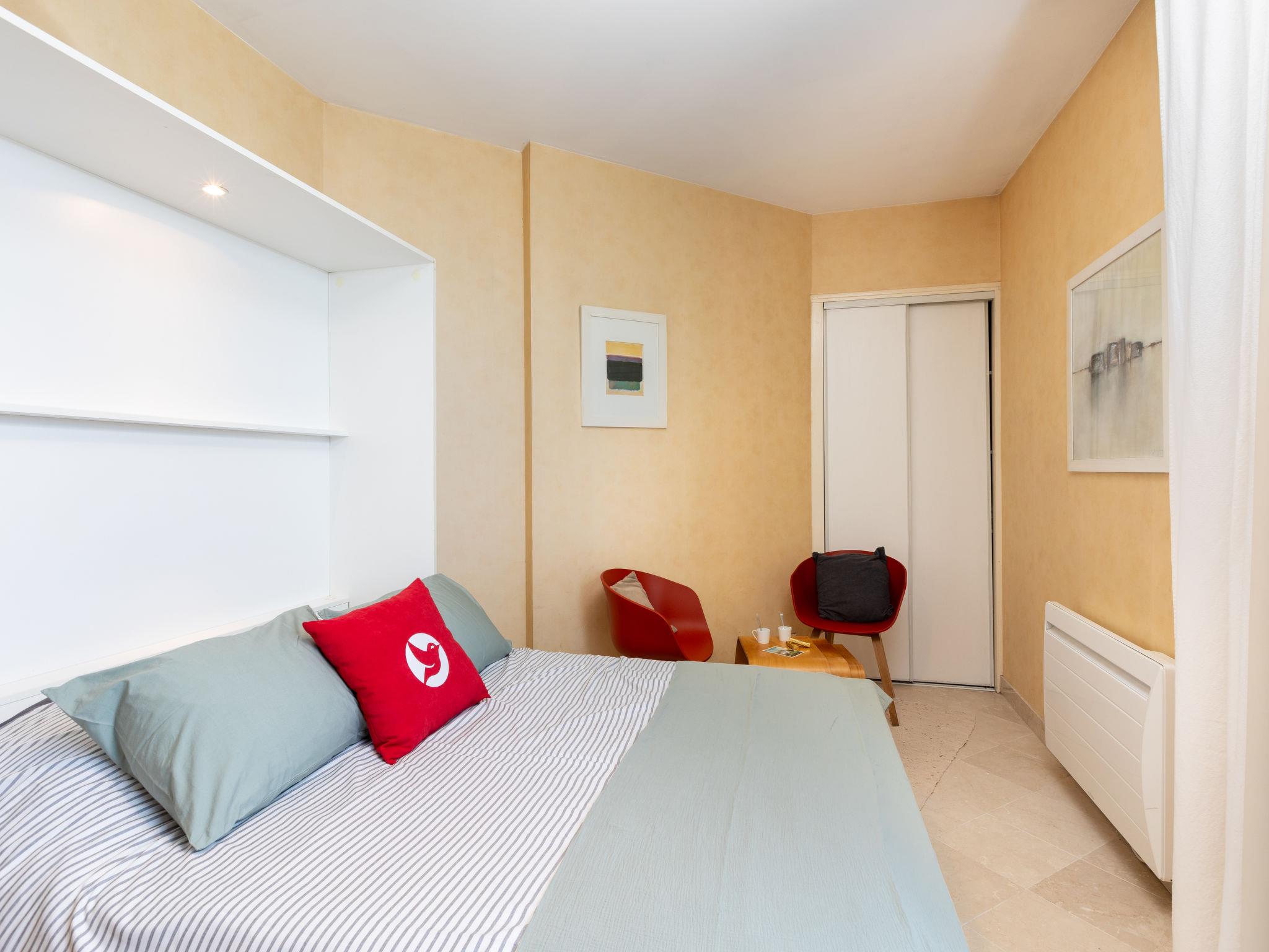 "Les Armateurs 3", 1-room studio 23 m2, on the ground floor. Bright, comfortable furnishings: living/sleeping room with 1 double fold-away bed (1 x 140 cm, length 190 cm), dining nook and TV (flat screen). Small kitchenette (2 hot plates, toaster, kettle, microwave, electric coffee machine). Shower/WC. Electric heating. Very beautiful view of the sea. Facilities: iron, hair dryer. Internet (WiFi, extra). Please note: apartment street side. Non-smokers only. Smoke alarm. Offer by a private individual according to Art. 155, IV of CGI. 35288005491A7