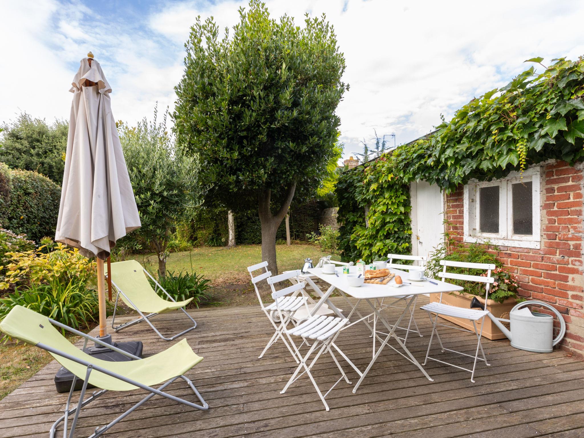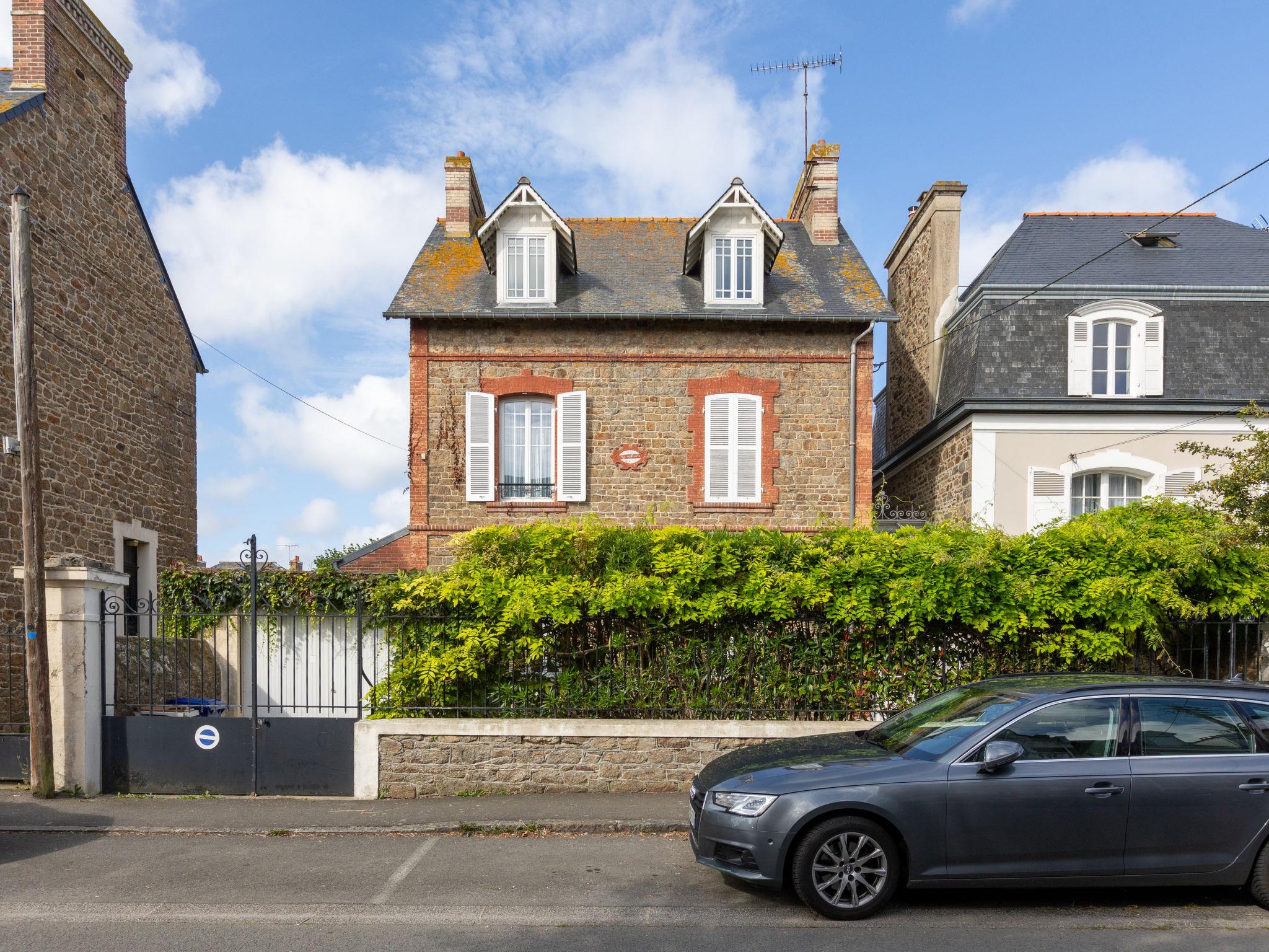 Old, rustic manor house "La Solaine", 3 storeys. In the district of Courtoisville, in the residential district, excellent location: right in the centre but still quiet, 280 m from the sea, 280 m from the beach. Private: well-kept garden (fenced) with lawn 200 m2. Terrace, garden furniture, barbecue. In the house: storage room for bicycles. Public parking on the road. Shop 300 m, grocery, supermarket 240 m, shopping centre 4.4 km, restaurant, bar 400 m, bakery 300 m, bicycle rental 350 m, bus stop "Courtoisville" 190 m, railway station "Gare TGV St Malo" 1.2 km, ferry "Gare maritime du Naye" 3.5 km, sandy beach "Plage du Sillon" 700 m, thermal baths "Thermes marin de Saint Malo" 350 m. Sports harbour 1.8 km, golf course (18 hole) 17.5 km, surf school, sailing school 500 m, minigolf 9.2 km. Nearby attractions: Cancale 13.7 km, Dinard 12.4 km, Dinan 31.2 km, Dol de Bretagne 27.8 km, Grand Aquarium de Saint-Malo 4.8 km, Mont Saint-Michel 53.8 km.