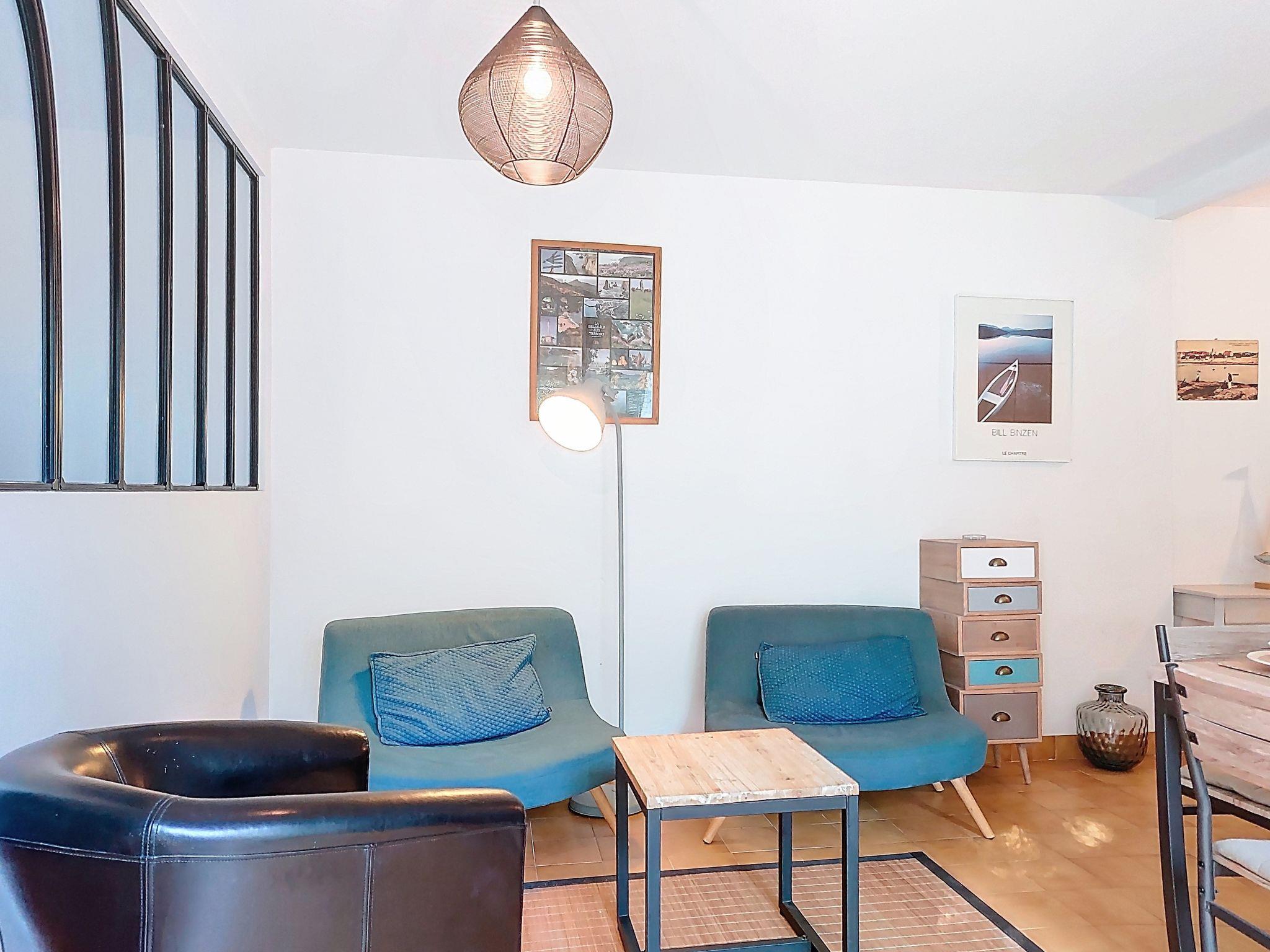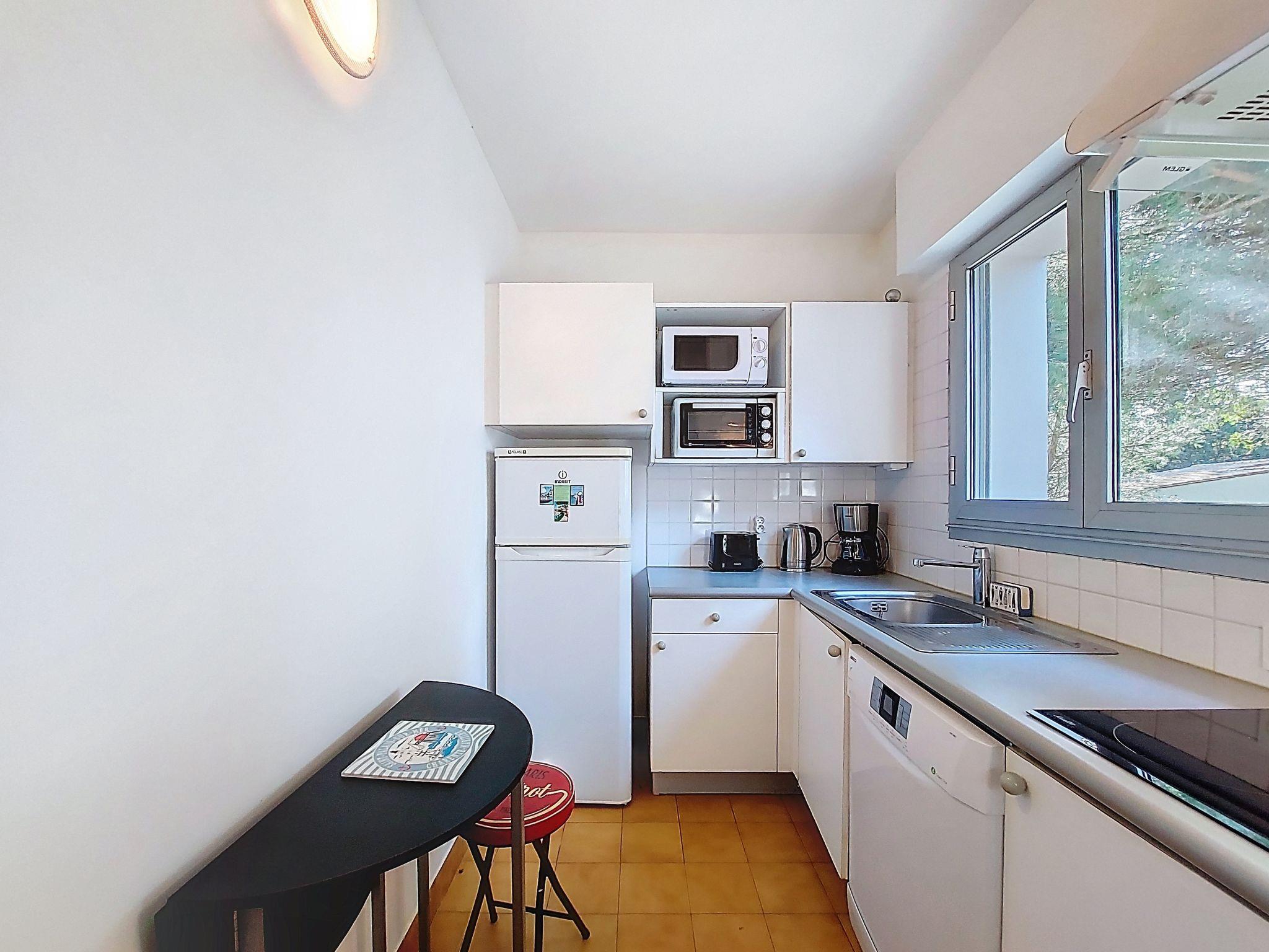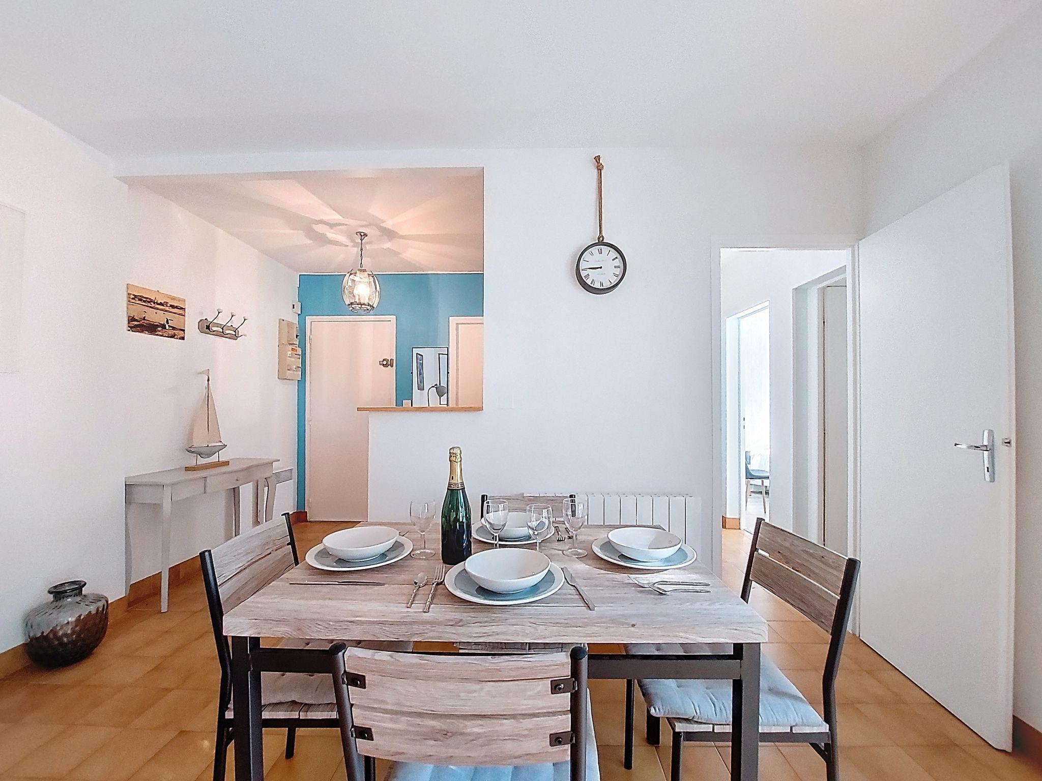 2-room apartment 51 m2 on 1st floor, south facing position. Beautiful furnishings: living/dining room with TV. Exit to the terrace. Alcove with 2 beds (70 cm, length 190 cm). 1 room with 1 french bed (1 x 140 cm, length 190 cm). Kitchen (mini-oven, dishwasher, 3 induction hot plates, microwave, freezer). Shower, sep. WC. Electric heating. Terrace 7 m2, south facing position. Terrace furniture. Facilities: washing machine. Internet (WiFi, free). Parking space n 20. Please note: smoke alarm. Instead of an enclosed bedroom, some sleeping areas are located in an open-plan area (gallery, alcove, etc.).