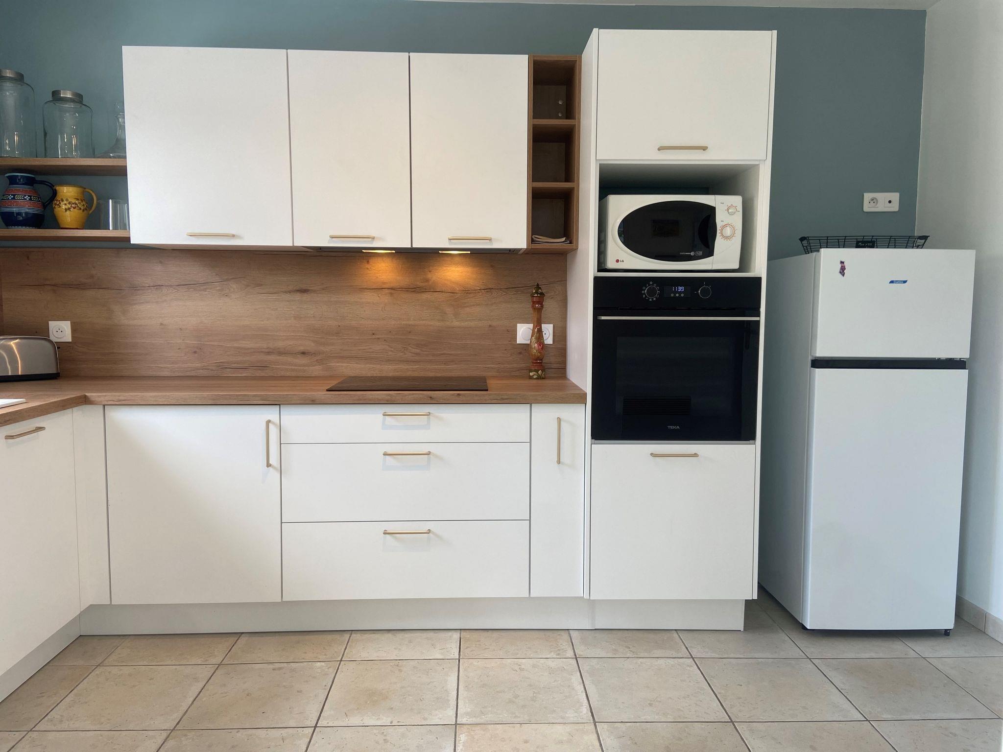 6-room villa 146 m2. Beautiful furnishings: large living/dining room with TV (flat screen). Exit to the garden, to the terrace, to the veranda. 1 room with 1 french bed (1 x 160 cm, length 190 cm), shower/WC. 1 small room with 1 bed (90 cm, length 190 cm), 1 double sofabed (1 x 140 cm, length 190 cm), DVD. 1 room with 1 french bed (1 x 140 cm, length 190 cm). 1 room with 2 beds (90 cm). 1 room with 1 french bed (1 x 160 cm, length 190 cm), shower/WC. Kitchen (oven, dishwasher, 4 ceramic glass hob hotplates, kettle, microwave, freezer, electric coffee machine, Capsules for coffee machine (Nespresso) extra). Bathroom, sep. WC. Electric heating. Large terrace, garden 592 m2. Terrace furniture, barbecue. Facilities: washing machine, dryer, children's high chair, baby cot. Internet (WiFi, free). Parking at the house. Please note: smoke alarm. Veranda with air conditioning. Big screen smart TV. Very high speed fiber internet. Baby equipment: 1 travel cot, 1 high chair, 1 deckchair, 1 baby playpen, 1 changing table, 2 booster seats.