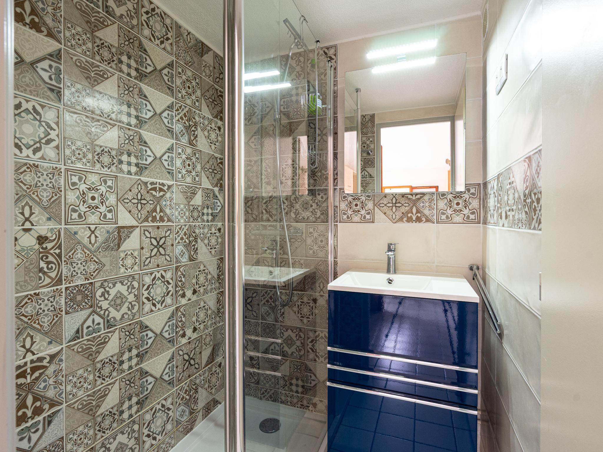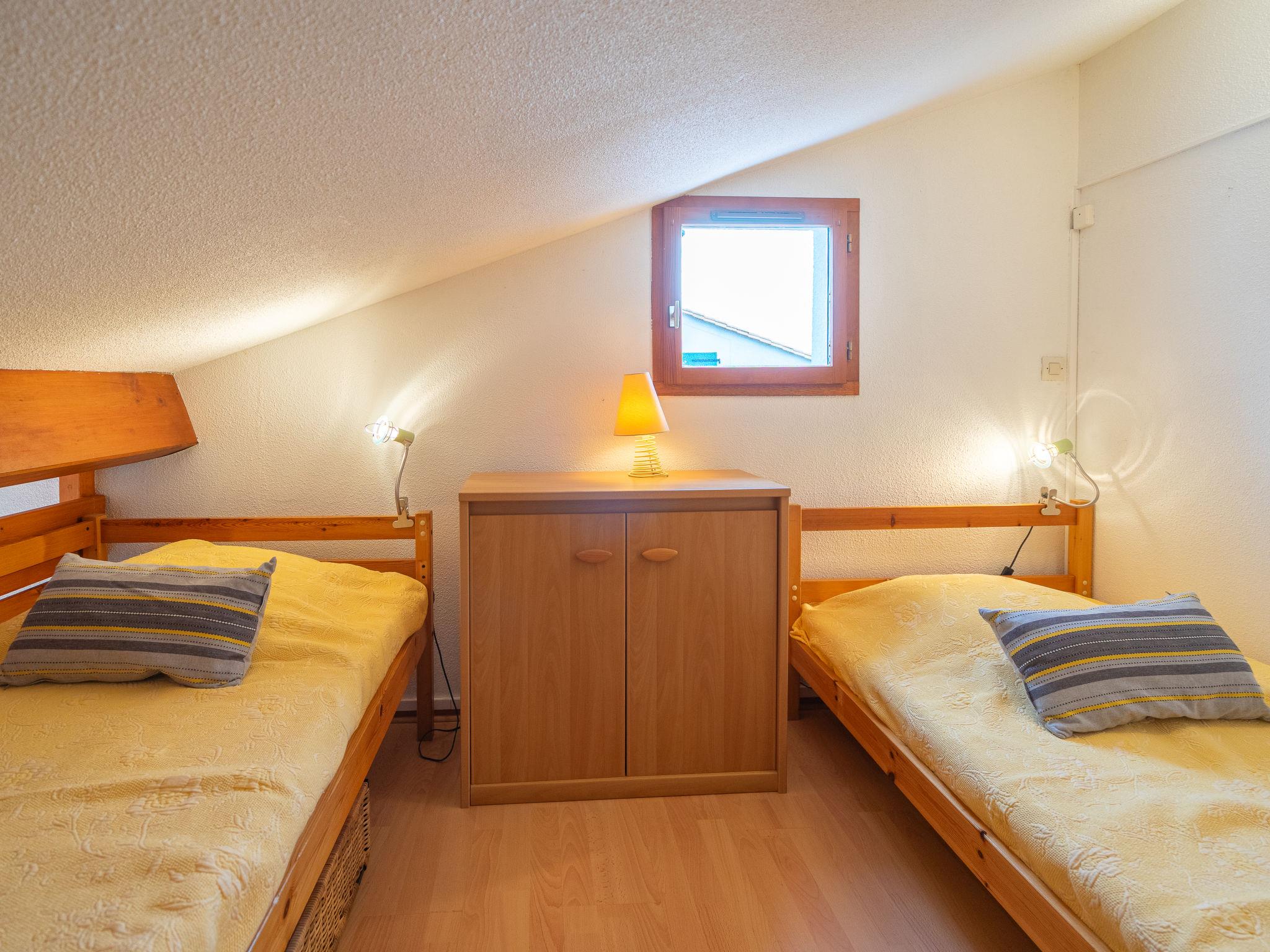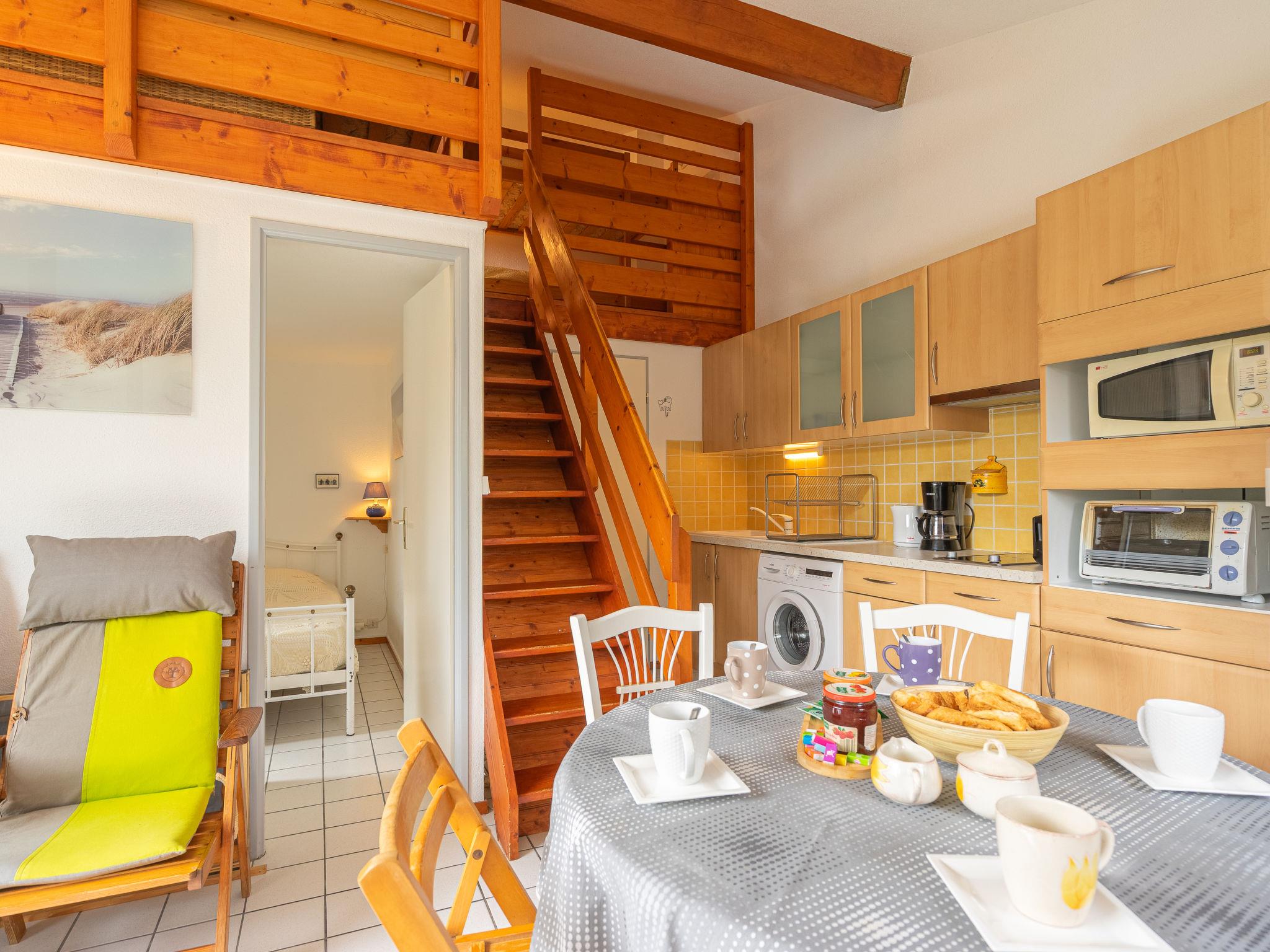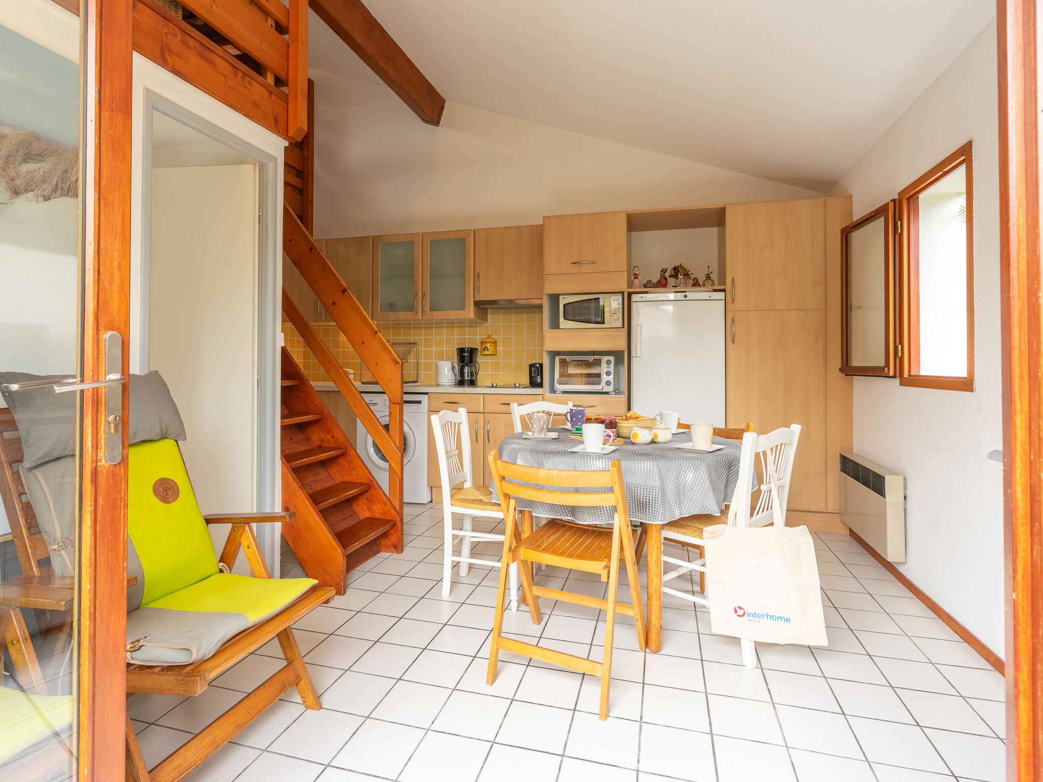 2-room terraced house 35 m2 on 2 levels. Living room with TV (flat screen). Exit to the terrace, to the patio. 1 room with 1 french bed (1 x 140 cm, length 190 cm). Kitchenette (mini-oven, 2 ceramic glass hob hotplates, toaster, kettle, microwave, freezer, electric coffee machine). Shower, sep. WC. Electric heating. Upper floor: gallery with sloping ceilings with 3 beds (90 cm, length 190 cm). Terrace 6 m2, patio 50 m2. Terrace furniture, barbecue. Facilities: washing machine. Internet (WiFi, extra). Parking space n 140. Please note: smoke alarm. Offer by a private individual according to Art. 155, IV of CGI.