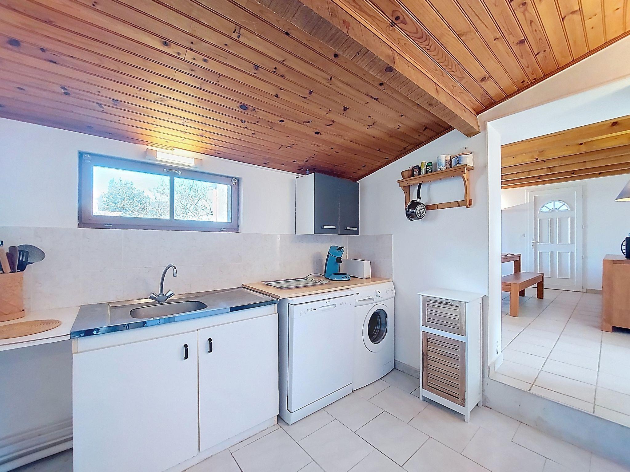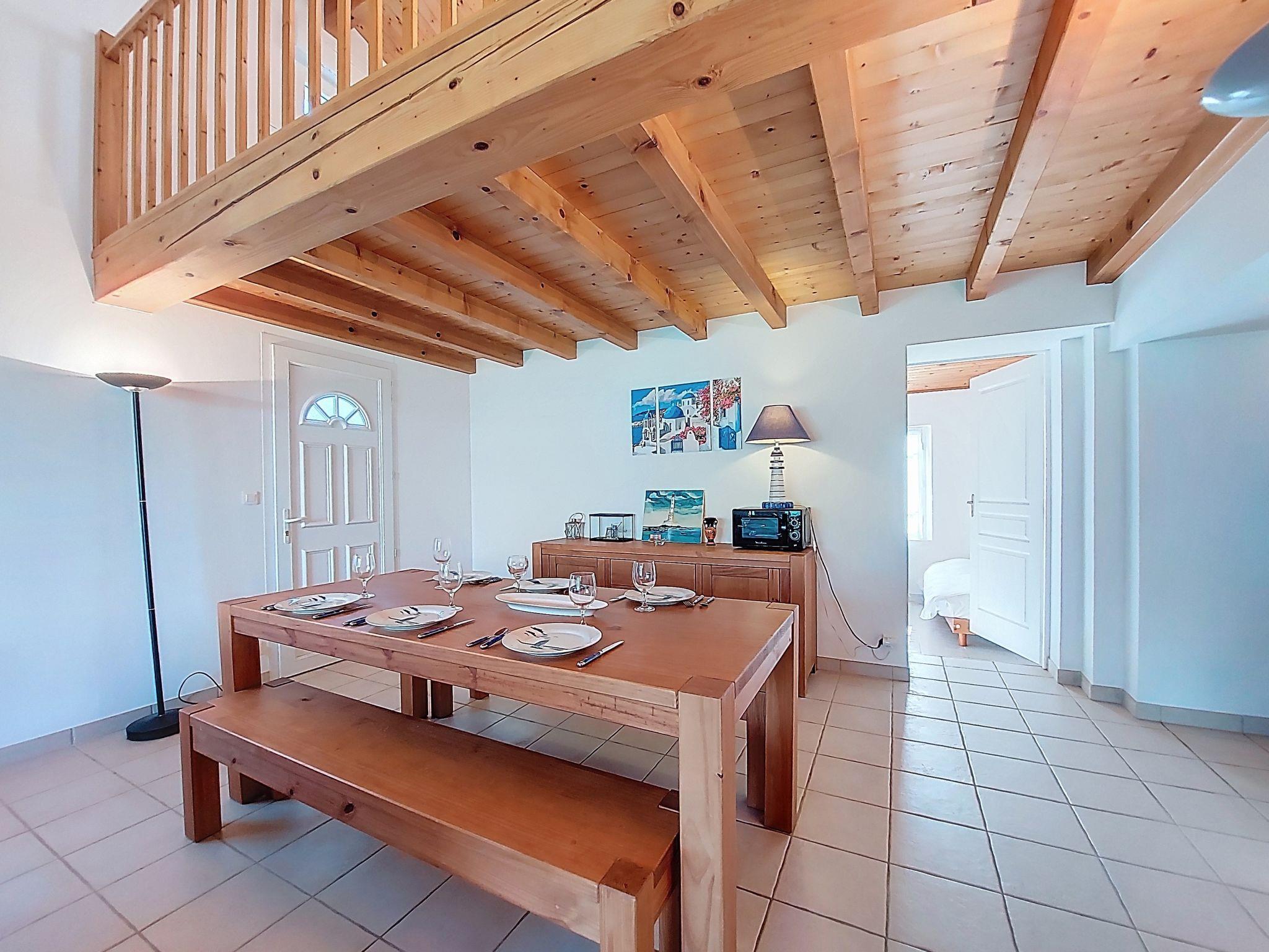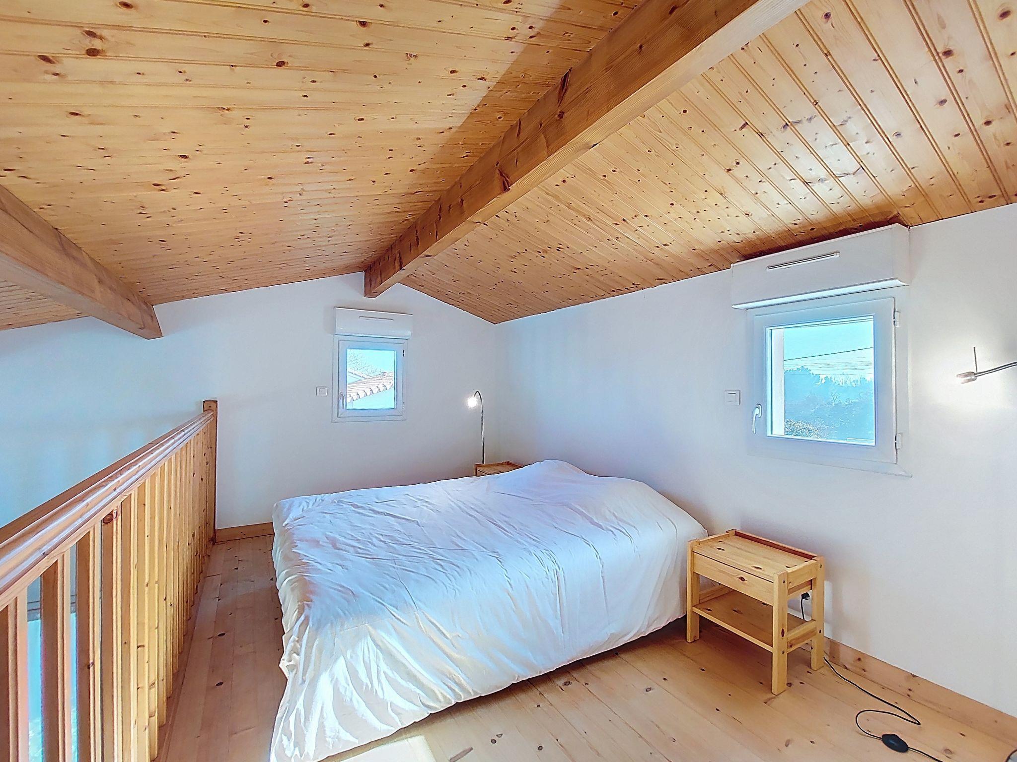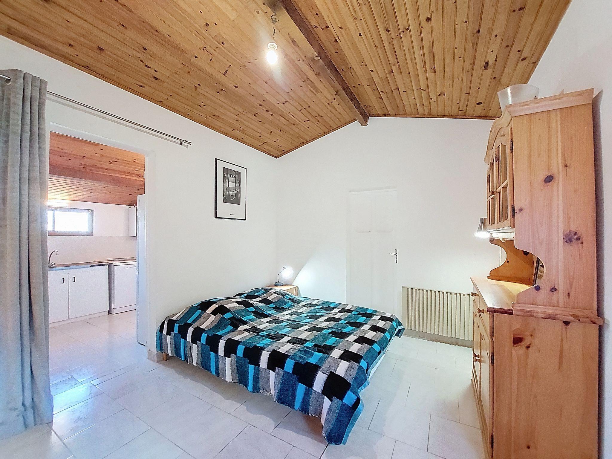 3-room house 70 m2 on 2 levels. Living/dining room with open-hearth fireplace (only for decoration), TV (flat screen), electric heater. Exit to the garden, to the terrace, north facing position and east facing position. 1 room with 1 french bed (1 x 140 cm, length 190 cm). 1 room with 2 beds (90 cm, length 190 cm). Small kitchen (oven, dishwasher, 4 induction hot plates, toaster, kettle, microwave, electric coffee machine). Shower/WC. Upper floor: 1 open room with sloping ceilings with 1 french bed (1 x 160 cm, length 200 cm). Terrace furniture, barbecue. Facilities: washing machine. Internet (WiFi, extra). Parking (fenced 2 cars). 1 pet/ dog allowed. Offer by a private individual according to Art. 155, IV of CGI.