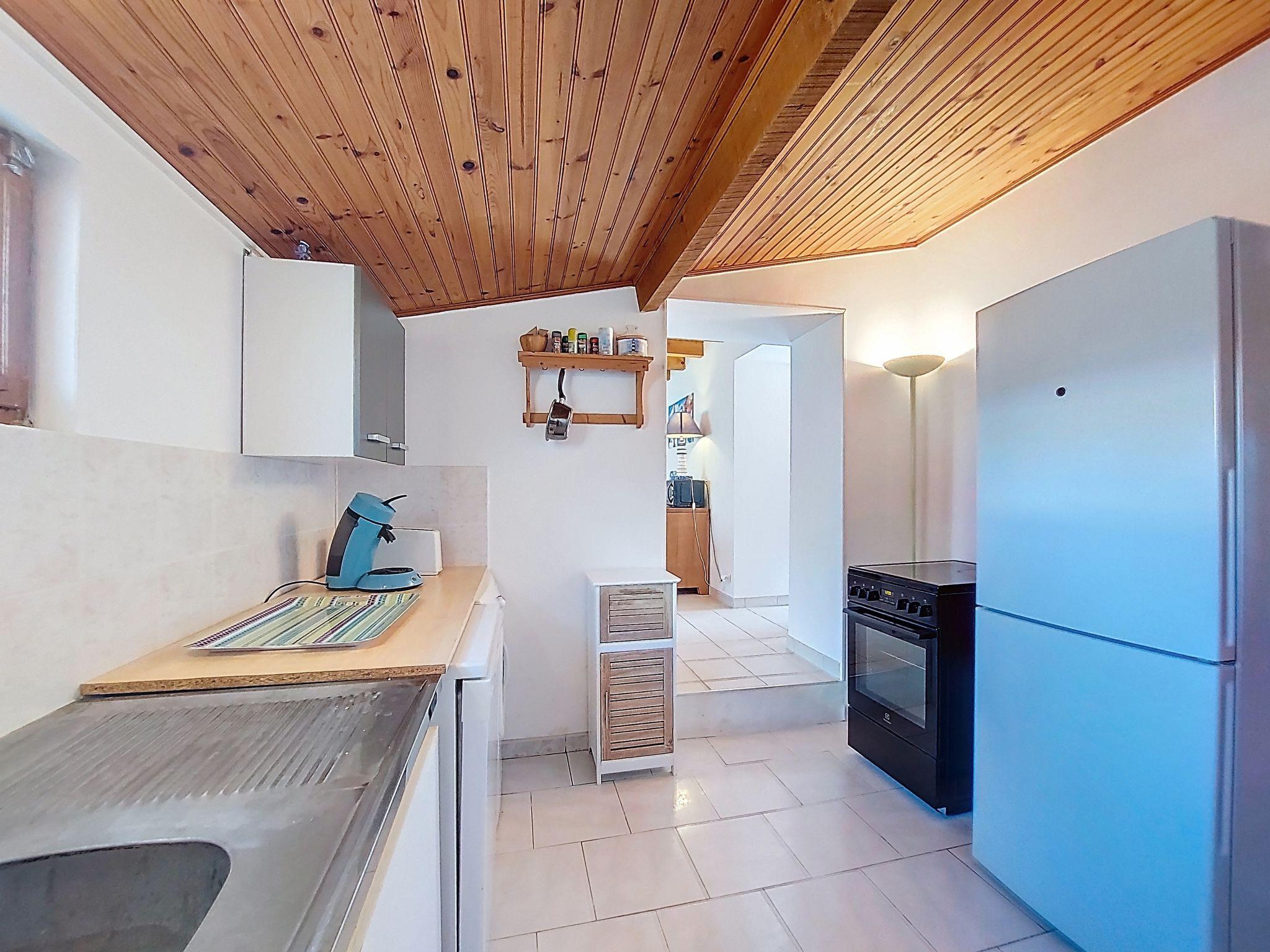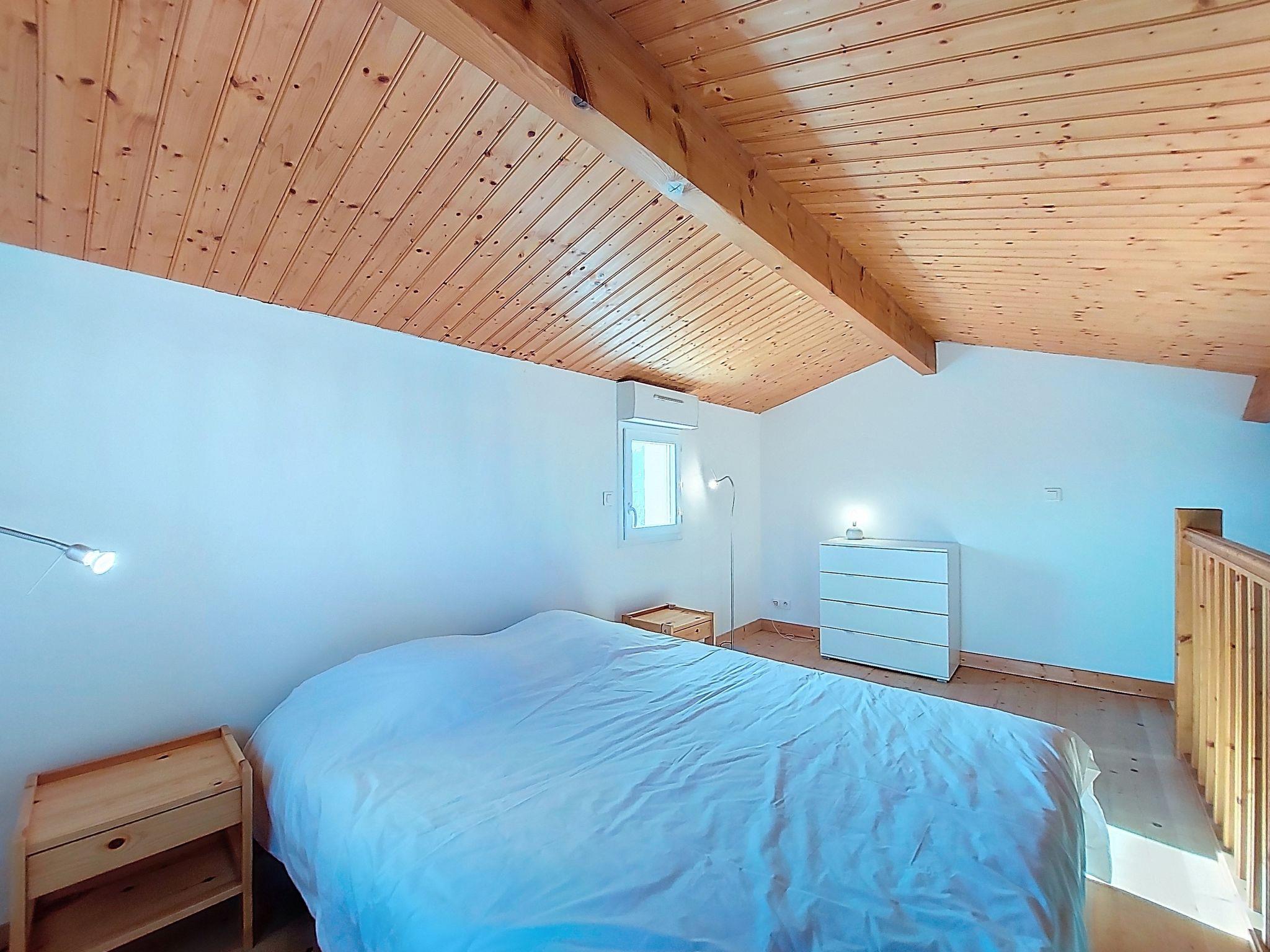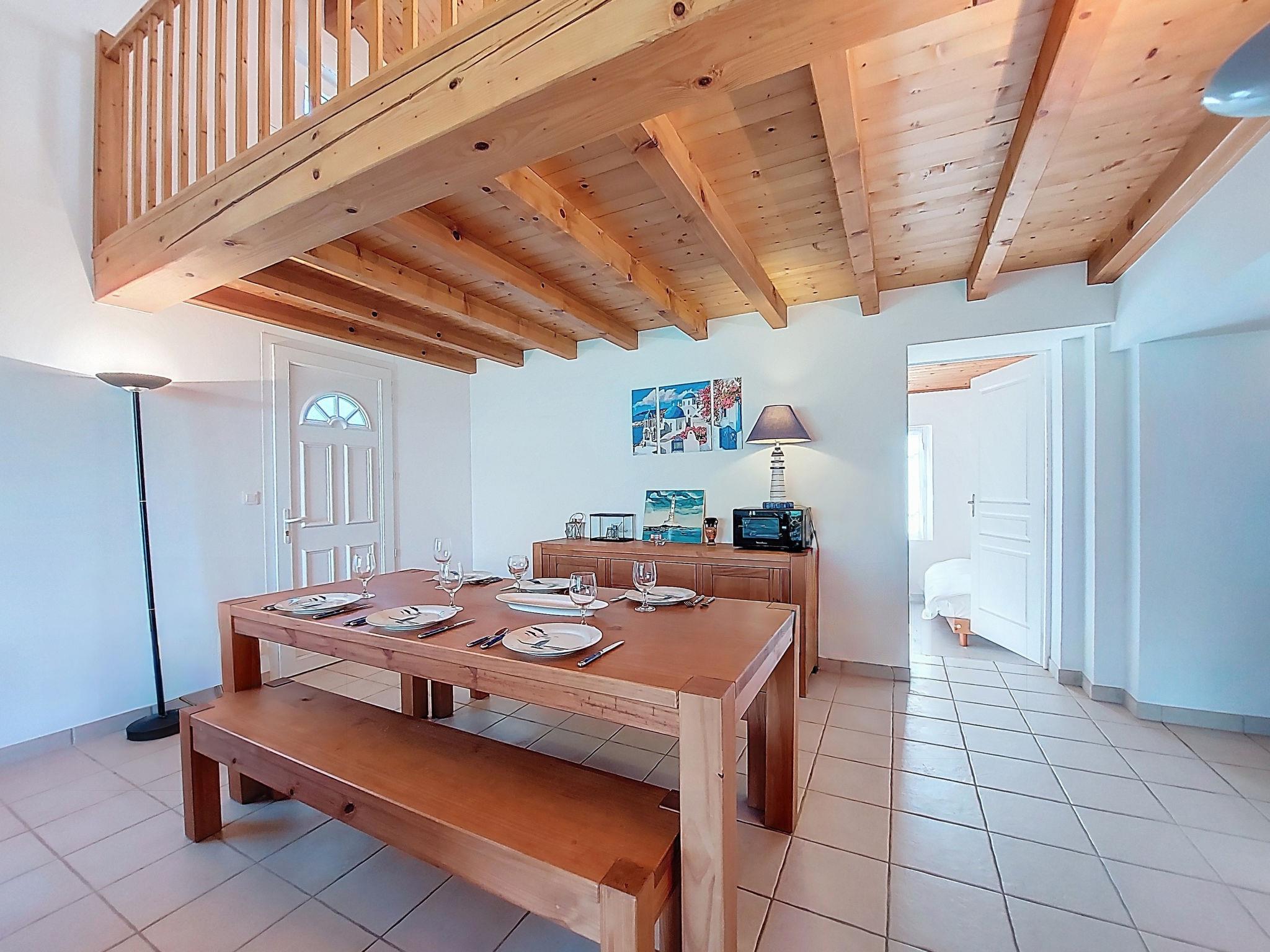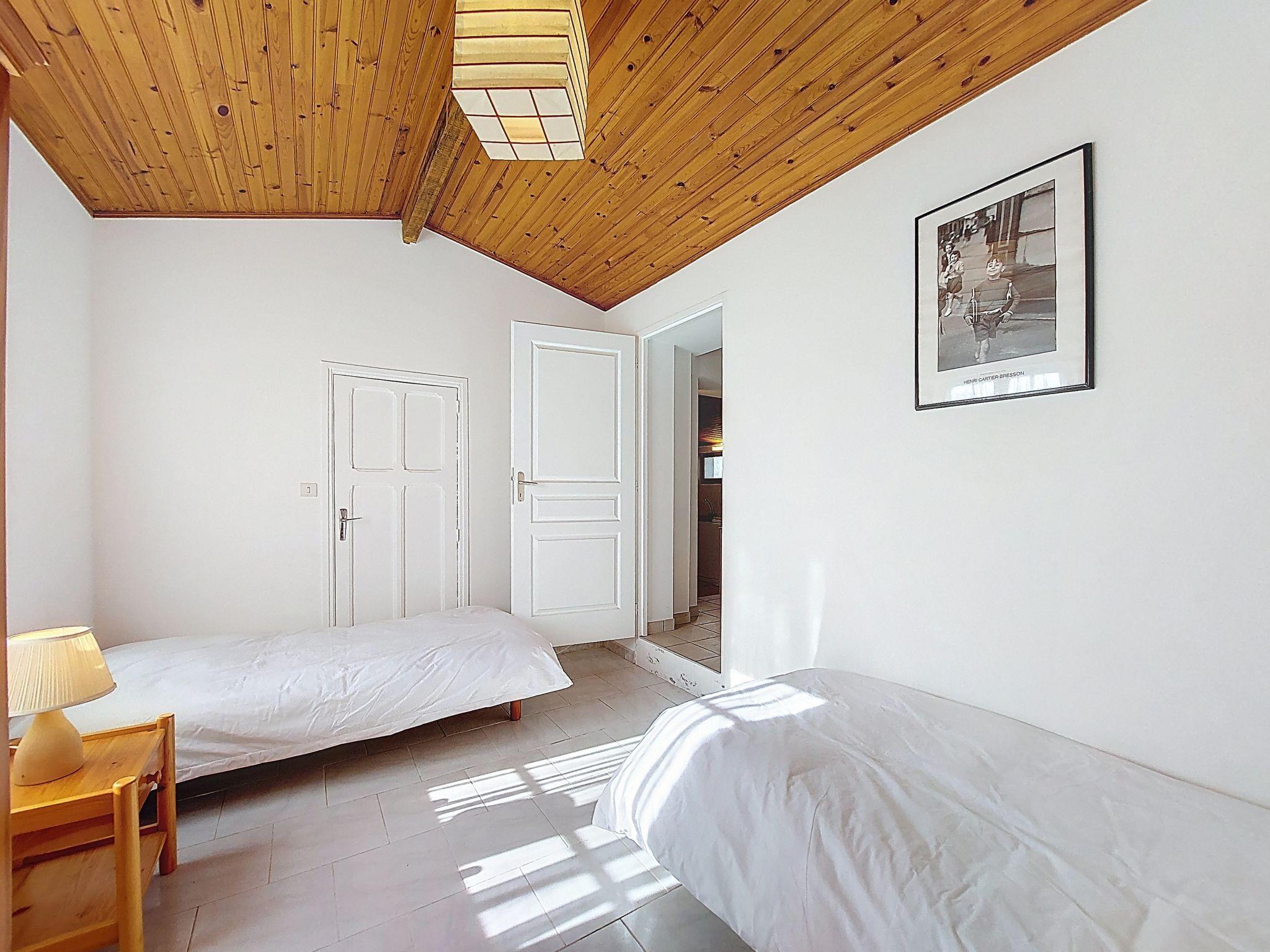 3-room house 70 m2 on 2 levels. Living/dining room with open-hearth fireplace (only for decoration), TV (flat screen), electric heater. Exit to the garden, to the terrace, north facing position and east facing position. 1 room with 1 french bed (1 x 140 cm, length 190 cm). 1 room with 2 beds (90 cm, length 190 cm). Small kitchen (oven, dishwasher, 4 induction hot plates, toaster, kettle, microwave, electric coffee machine). Shower/WC. Upper floor: 1 open room with sloping ceilings with 1 french bed (1 x 160 cm, length 200 cm). Terrace furniture, barbecue. Facilities: washing machine. Internet (WiFi, extra). Parking (fenced 2 cars). 1 pet/ dog allowed. Offer by a private individual according to Art. 155, IV of CGI.