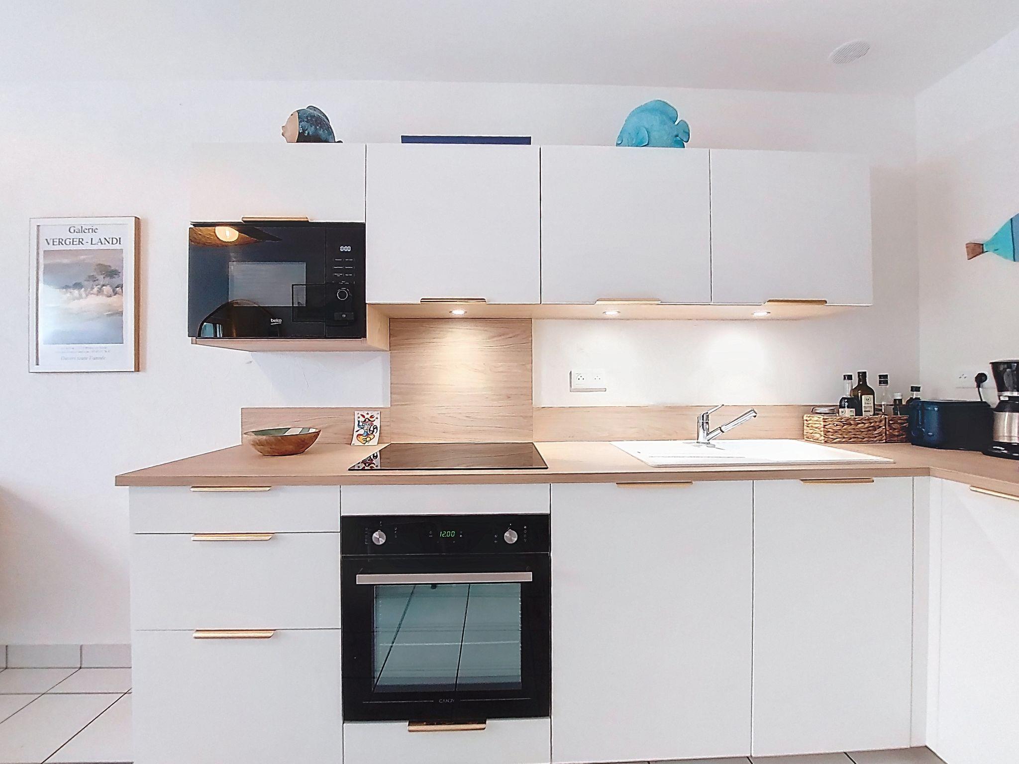 2-room apartment 35 m2 on 1st floor. Renovated in 2024, modern furnishings: living/dining room with TV (flat screen). Exit to the balcony. 1 small room with 1 french bed (1 x 160 cm, length 190 cm). Kitchenette (oven, 3 induction hot plates, toaster, microwave, freezer, electric coffee machine). Shower, sep. WC. Electric heating. Balcony 7 m2. Balcony furniture, electric barbecue. Facilities: washing machine. Internet (WiFi, extra). Garage space n 3. Please note: maximum 1 pet/ dog allowed. Smoke alarm. Offer by a private individual according to Art. 155, IV of CGI.