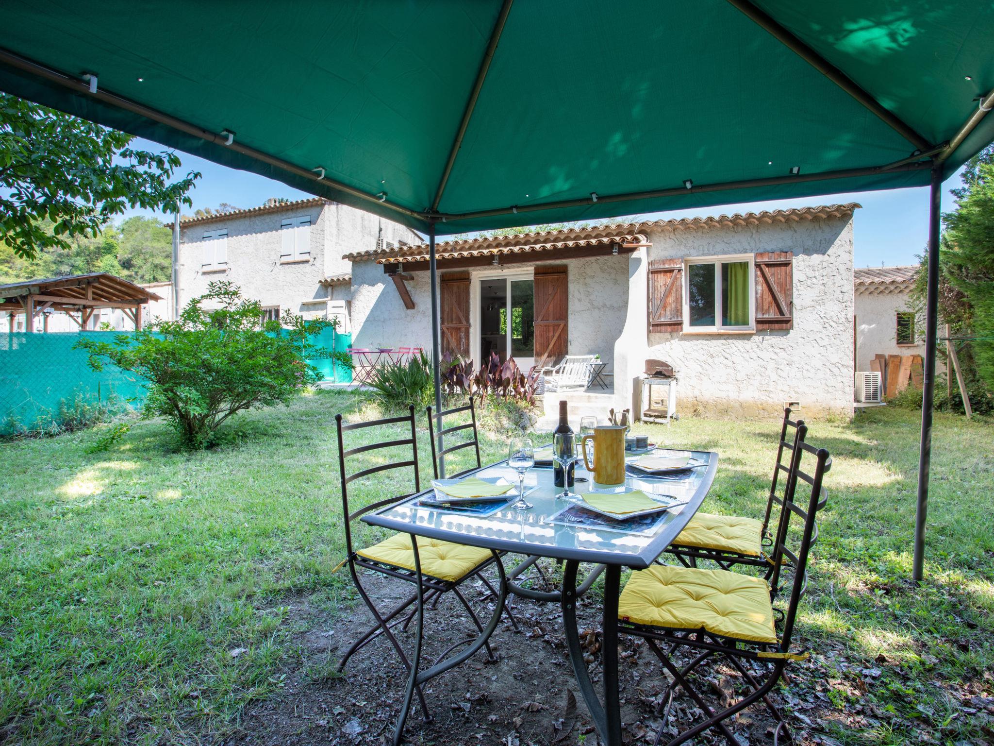 Terraced house "La Grenadière". 5 km from the sea, 5 km from the beach. Private: garden 800 m2 (fenced) lawn and trees. Shop 1.7 km, grocery 1.7 km, supermarket 1.7 km, shopping centre 1.7 km, restaurant 1.7 km, bakery 1.5 km, bus stop "les 4 chemins" 1.2 km, railway station "cagnes sur mer" 4 km, shingle beach "cagnes sur mer" 5 km. Sports harbour 5 km, marina 5 km, sailing school 5 km. Nearby attractions: village médieval st paul de vence 7 km, musée Maeght 7 km, hippodrome de la côte d'azur 5 km, musée Renoir Cagnes 5 km. Please note: car recommended.