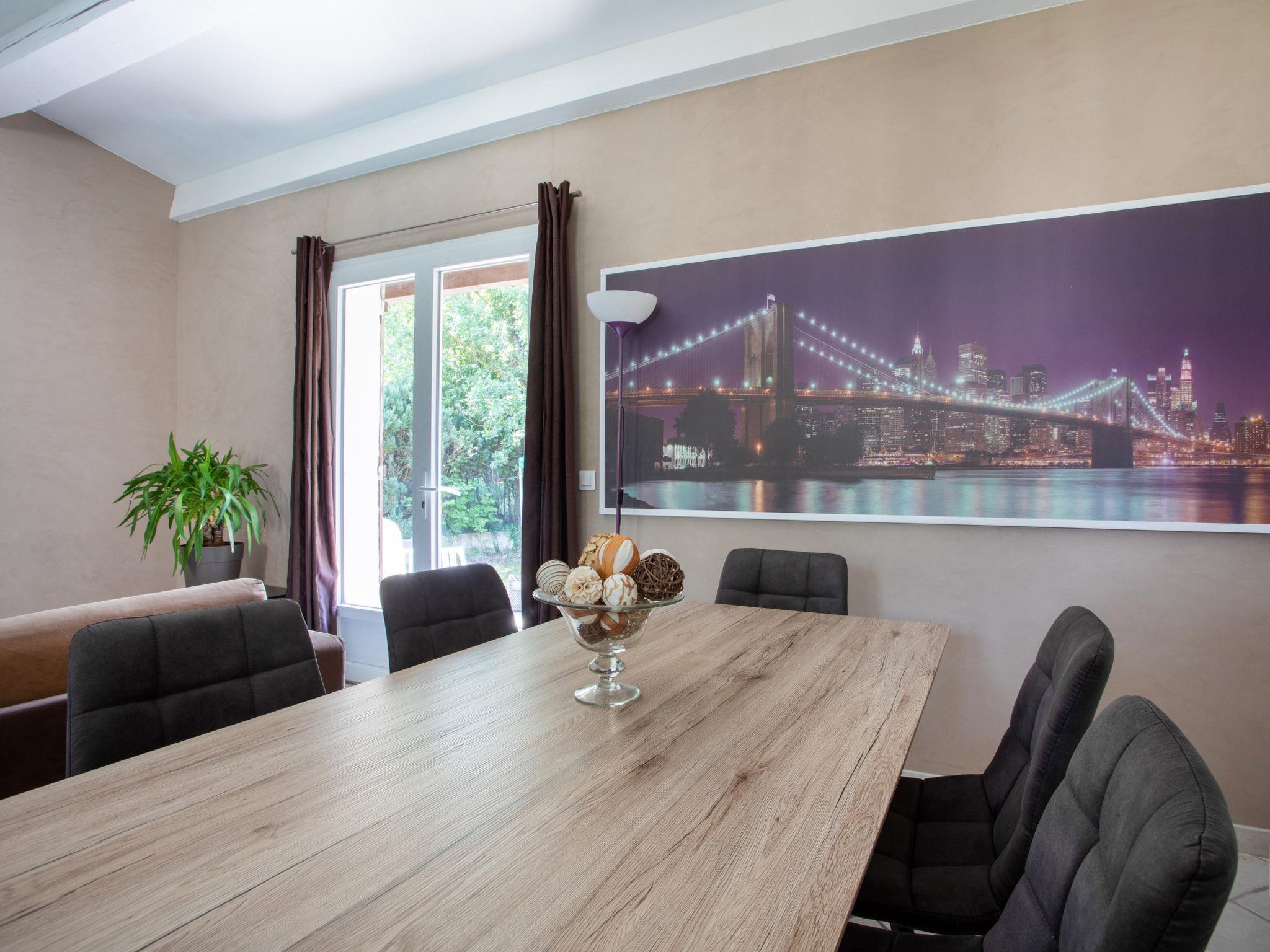 3-room terraced house 63 m2. Comfortable and modern furnishings: living/dining room with 1 double sofabed (1 x 140 cm, length 190 cm), TV (flat screen). Exit to the garden, to the terrace. 1 room with 1 french bed (160 cm, length 200 cm), TV (flat screen). Exit to the garden. 1 room with 2 beds (90 cm, length 190 cm). Open kitchen (oven, dishwasher, 3 induction hot plates, toaster, kettle, microwave, electric coffee machine). Exit to the garden. Shower, sep. WC. Heating, air-conditioning. Terrace 10 m2, porch. Terrace furniture, barbecue. View of the garden. Facilities: washing machine, iron, hair dryer. Internet (WiFi, free). Parking (2 cars). Please note: non-smoking house. Smoke alarm. Offer by a private individual according to Art. 155, IV of CGI. 06128000027SV