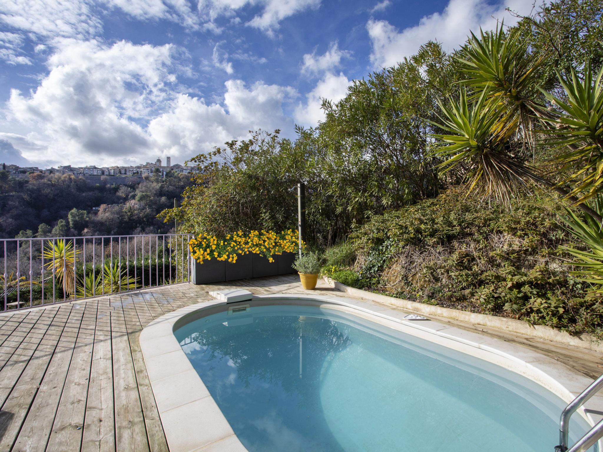 Beautiful villa "Villa Bellevue", terraced. 7 km from the sea, 7 km from the beach. Private: swimming pool (2 x 4 m, depth 150 cm, seasonal availability: 01.Apr. - 31.Oct.) with alarm system. Outdoor shower. Grocery 2.5 km, supermarket 2.5 km, shopping centre 4.5 km, restaurant 2.5 km, bus stop 3 km, shingle beach "Plage de la batterie" 7 km. Nearby attractions: Shopping Promenade 4.5 km, Promenade des anglais 18 km, Musée Renoir 10 km, Village de St Paul de Vence 2.5 km. Hiking paths: Le Mercantour 45 km. Please note: car recommended. The keys‘ handover takes place by the agency Interhome in Cagnes sur Mer, 8 km.