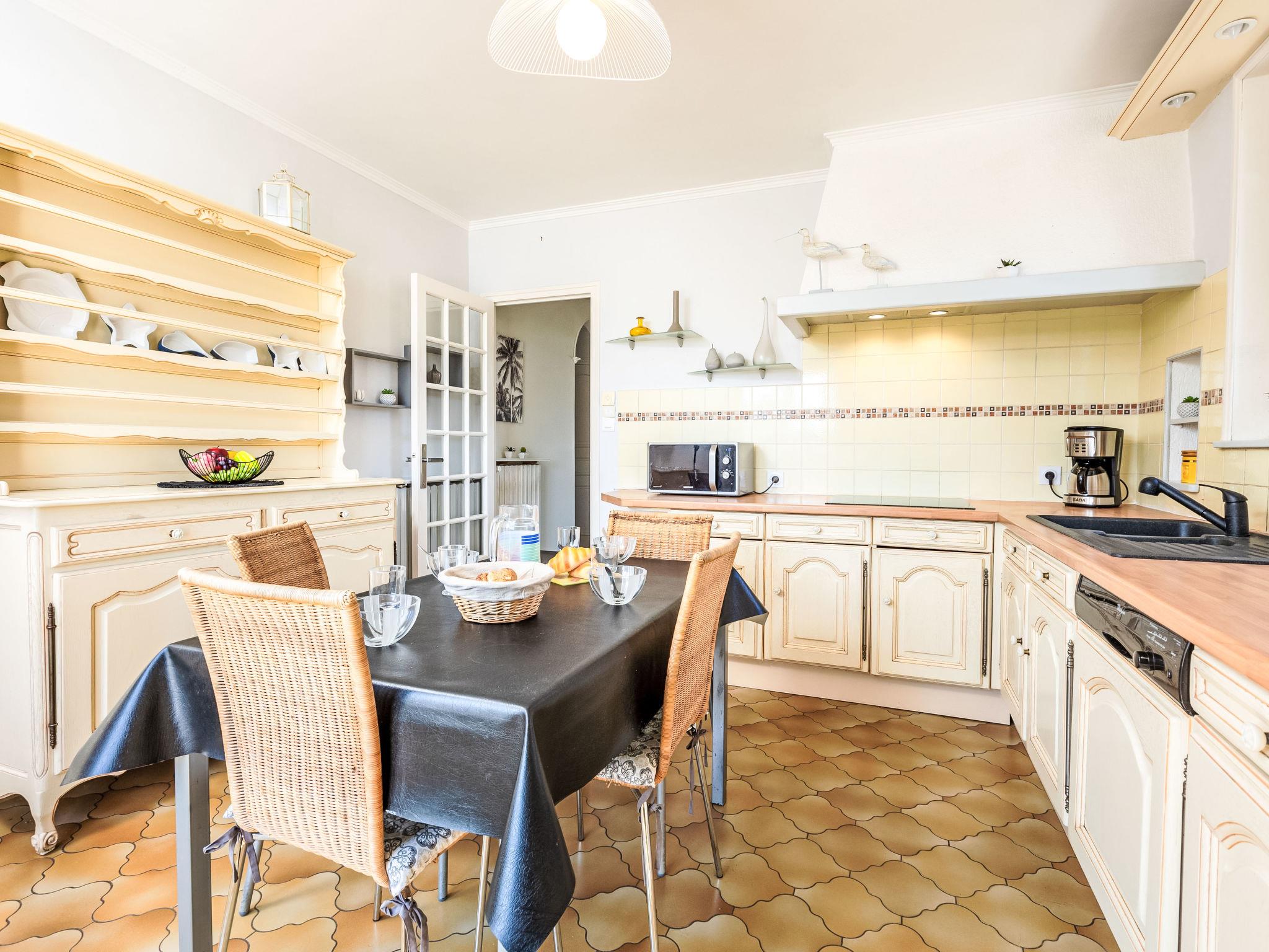 5-room house 160 m2 on 2 levels. Simple and comfortable furnishings: living/dining room with open-hearth fireplace (only for decoration), TV (flat screen). Exit to the veranda. 1 room with 1 french bed (1 x 140 cm, length 190 cm). Kitchen (oven, dishwasher, 3 induction hot plates, toaster, kettle, microwave, freezer, electric coffee machine). Exit to the veranda. Shower, sep. WC. Electric heating. Upper floor: 1 room with 2 beds (90 cm, length 190 cm). 2 rooms, each room with 1 french bed (1 x 140 cm, length 190 cm). Shower/WC. Terrace 15 m2, south facing position and west facing position. Terrace furniture, barbecue. Facilities: washing machine, hair dryer. Internet (WiFi, free). Please note: non-smoking house. Smoke alarm. Offer by a private individual according to Art. 155, IV of CGI.