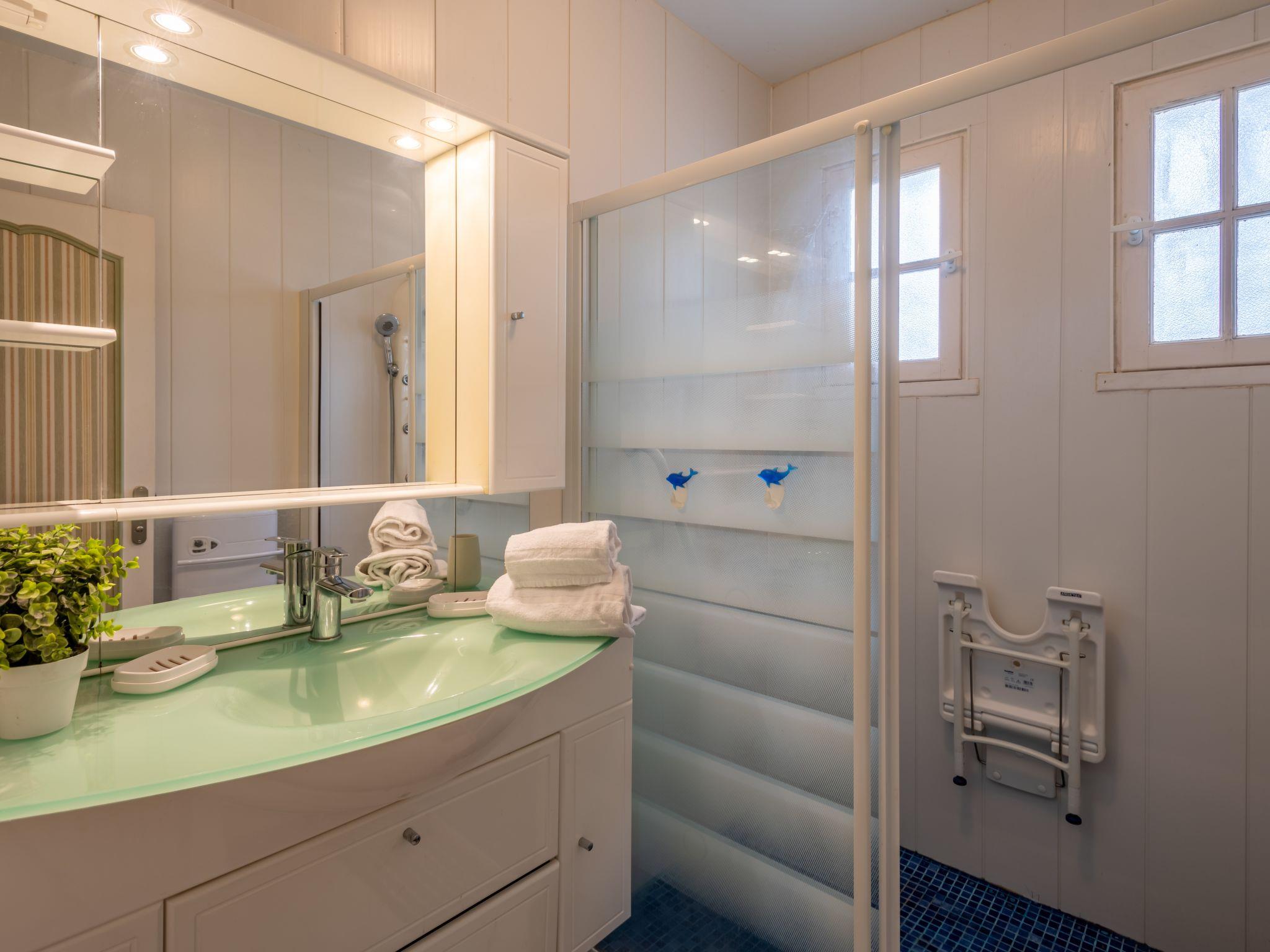 4-room maisonette 90 m2, on the upper ground floor. Practical furnishings: living/dining room with TV (flat screen). 1 room with 1 french bed (1 x 140 cm, length 190 cm), TV (flat screen). Kitchen (4 hot plates, oven, dishwasher, toaster, kettle, microwave, freezer, electric coffee machine) with TV (flat screen). Shower, sep. WC. Upper floor: 2 rooms, each room with 2 beds (90 cm, length 190 cm). Shower/WC. Garden 600 m2. Terrace furniture, barbecue, deck chairs (6). Very beautiful view of the sea. Facilities: washing machine, iron, baby cot for up to 2 year olds, hair dryer. Internet (WiFi, free). Please note: maximum 1 small pet/ dog allowed. Smoke alarm. 56233000121CU