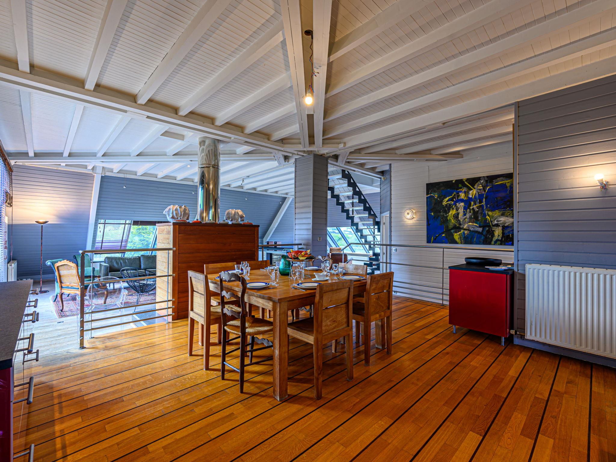 "Villa Pyramide II", 7-room villa 323 m2. Comfortable and stylish furnishings: living/dining room with 1 sofabed (140 cm, length 190 cm), TV (flat screen). 3 rooms, each room with 2 beds (90 cm, length 200 cm). Kitchen (oven, dishwasher, 3 ceramic glass hob hotplates, toaster, kettle, microwave, electric coffee machine). Exit to the terrace. Bathroom, bath/WC, sep. WC. Upper floor: large living/dining room with TV (flat screen). Exit to the terrace. 1 room with 2 beds (90 cm, length 200 cm), bath/shower/WC. 1 room with 2 beds (80 cm, length 200 cm), shower. Open kitchen (oven, dishwasher, 5 gas rings, toaster, kettle, freezer, electric coffee machine, cooking island). Sep. WC. 2nd upper floor: 1 room with 2 beds (90 cm, length 200 cm), shower/WC and hydro massage bath. Gas heating. Terrace 70 m2, south facing position. Terrace furniture, barbecue. Partial view of the sea. Facilities: washing machine, dryer, hair dryer. Internet (WiFi, free). Please note: one double bedroom is outside the apartment. Non-smokers only. Smoke alarm. Offer by a private individual according to Art. 155, IV of CGI. 56233000139HP