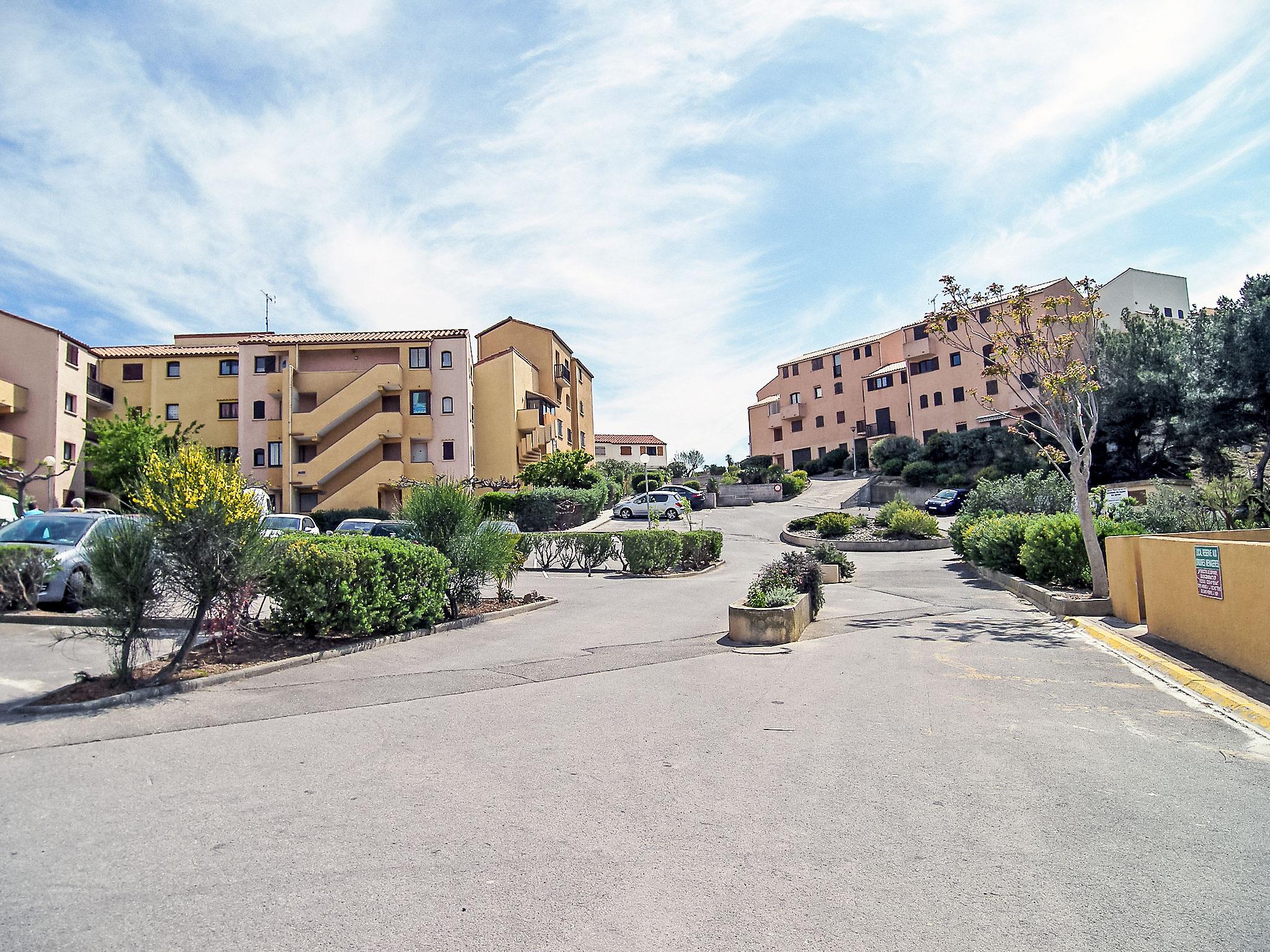 Residence "Pleine Vue sur Mer". 400 m from the sea, road to cross. For shared use: tennis (15.Jun. - 15.Sep.) (extra). Shop, grocery 300 m, restaurant, bar 600 m, bus stop 500 m, diving center 800 m. Sports harbour 800 m, riding stable 4.4 km. Nearby attractions: Réserve Africaine de Sigean 36 km, Cité de Carcassonne 78 km, Espace balnéoludique de Gruissan 11 km. The keys‘ handover takes place by the agency Interhome in Narbonne Plage, 3 km. The residence is a group of 3-storey buildings perched on a small cliff overlooking the harbour at the entrance to the station.