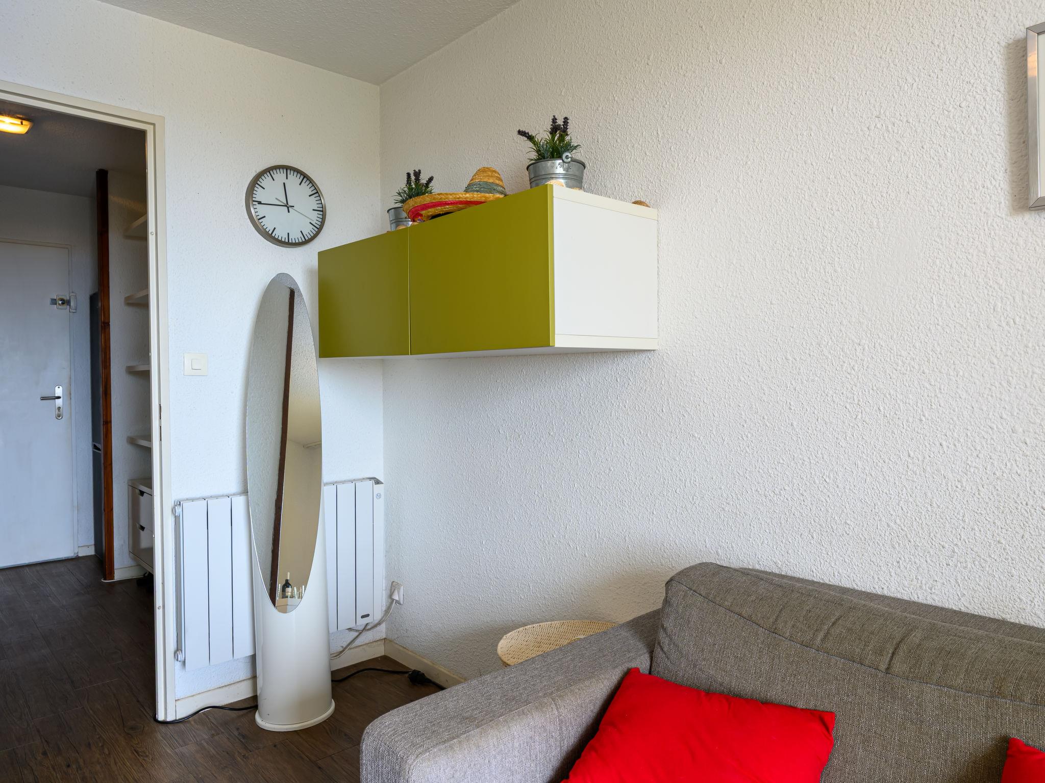 2-room apartment 24 m2 on 2nd floor. Comfortable and beautiful furnishings: living/dining room with 1 double sofabed (1 x 140 cm, length 190 cm), TV (flat screen). Exit to the balcony. 1 room with 1 french bed (1 x 140 cm, length 190 cm). Kitchenette (2 hot plates, toaster, kettle, freezer, electric coffee machine, Capsules for coffee machine (SENSEO) extra, combination microwave). Shower/WC. Electric heating. Balcony 7 m2, south facing position. Balcony furniture. Very beautiful view of the sea and the swimming pool. Facilities: washing machine. Internet (WiFi, extra). Parking space n 241. Please note: maximum 1 pet/ dog allowed. Smoke alarm. Offer by a private individual according to Art. 155, IV of CGI.