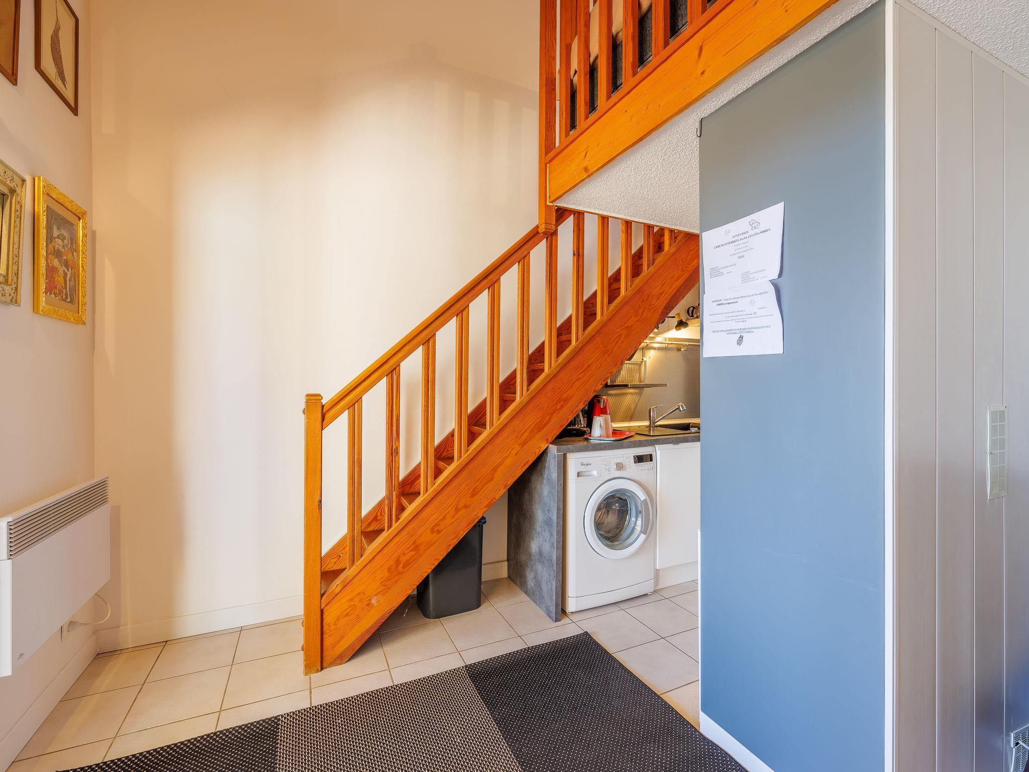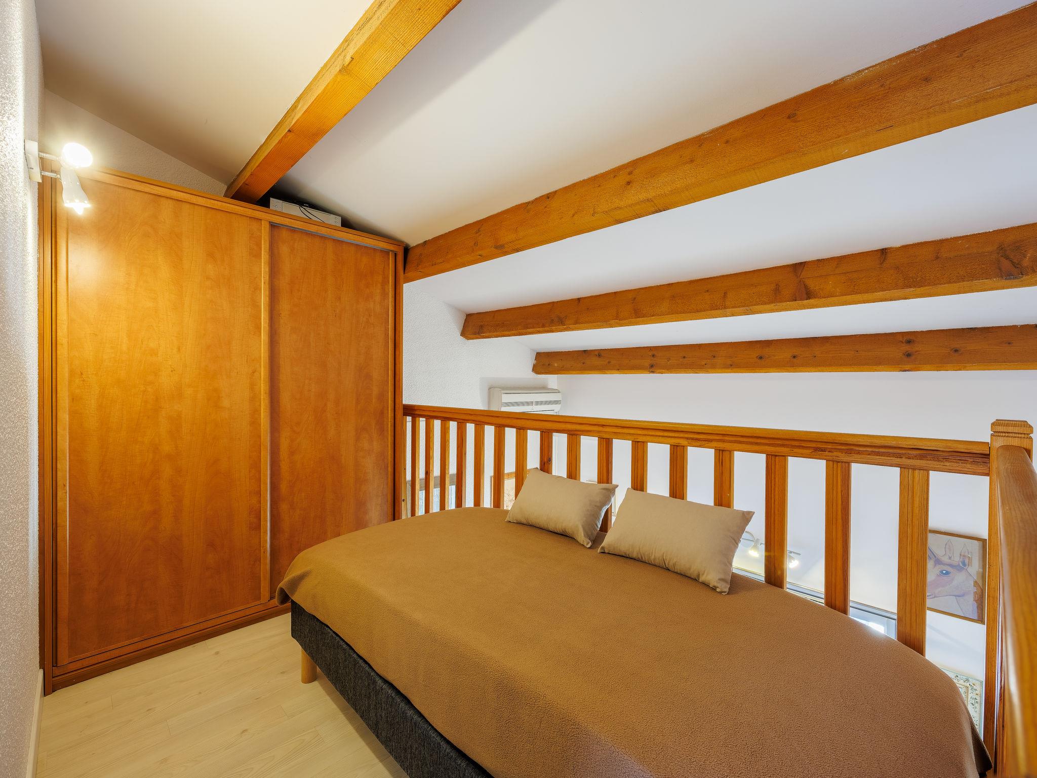 "Petite Cigale", 2-room semi-detached house 55 m2 on 2 levels. Simple and modern furnishings: living/sleeping room with veranda with 1 double sofabed (160 cm, length 200 cm), dining table, satellite TV, radio, CD-player and DVD. Exit to the terrace. Kitchenette (oven, 2 ceramic glass hob hotplates, toaster, kettle, microwave, freezer, electric coffee machine). Shower/WC. Upper floor: 1 room with sloping ceilings with 1 french bed (140 cm, length 190 cm). Open gallery with sloping ceilings with 1 bed (90 cm, length 190 cm). Electric heating, air-conditioning. Terrace 30 m2. Terrace furniture, barbecue (portable), deck chairs (4), box-room. Beautiful view of the sea and the resort. Facilities: washing machine, baby cot. Internet (WiFi, free). Parking (fenced 2 cars) at the house. Please note: non-smoking house. Maximum 1 pet/ dog allowed. TV only FR, DE. Smoke alarm. Bed layout is flexible. There are more sleeping options available than the maximum number of people allowed which may, however, not be exceeded. Instead of an enclosed bedroom, some sleeping areas are located in an open-plan area (gallery, alcove, etc.).