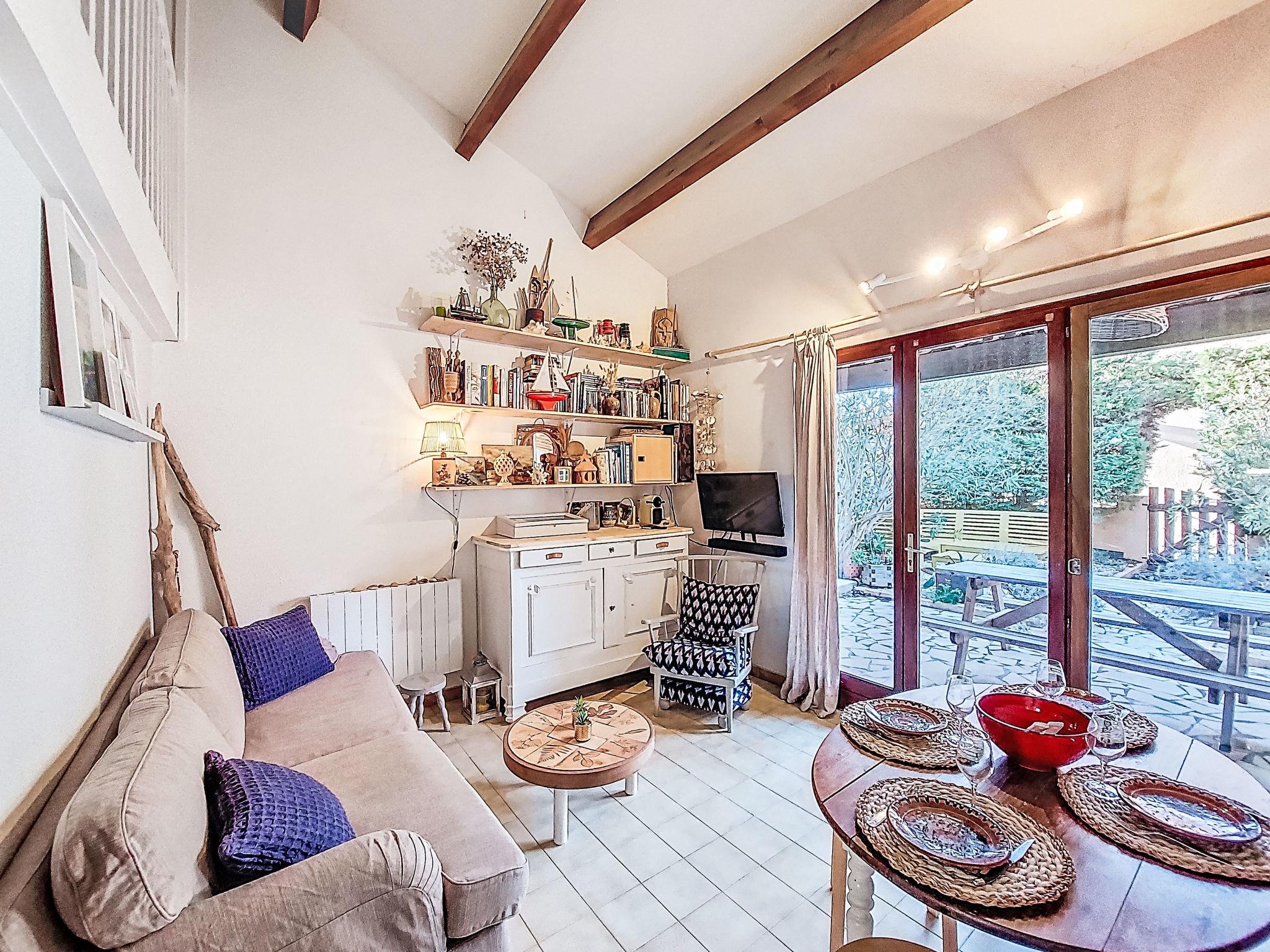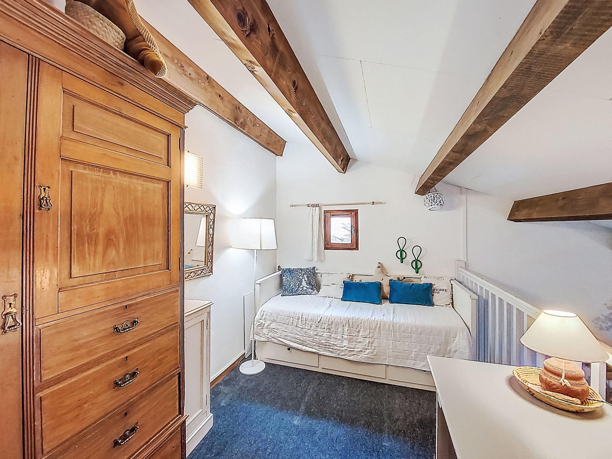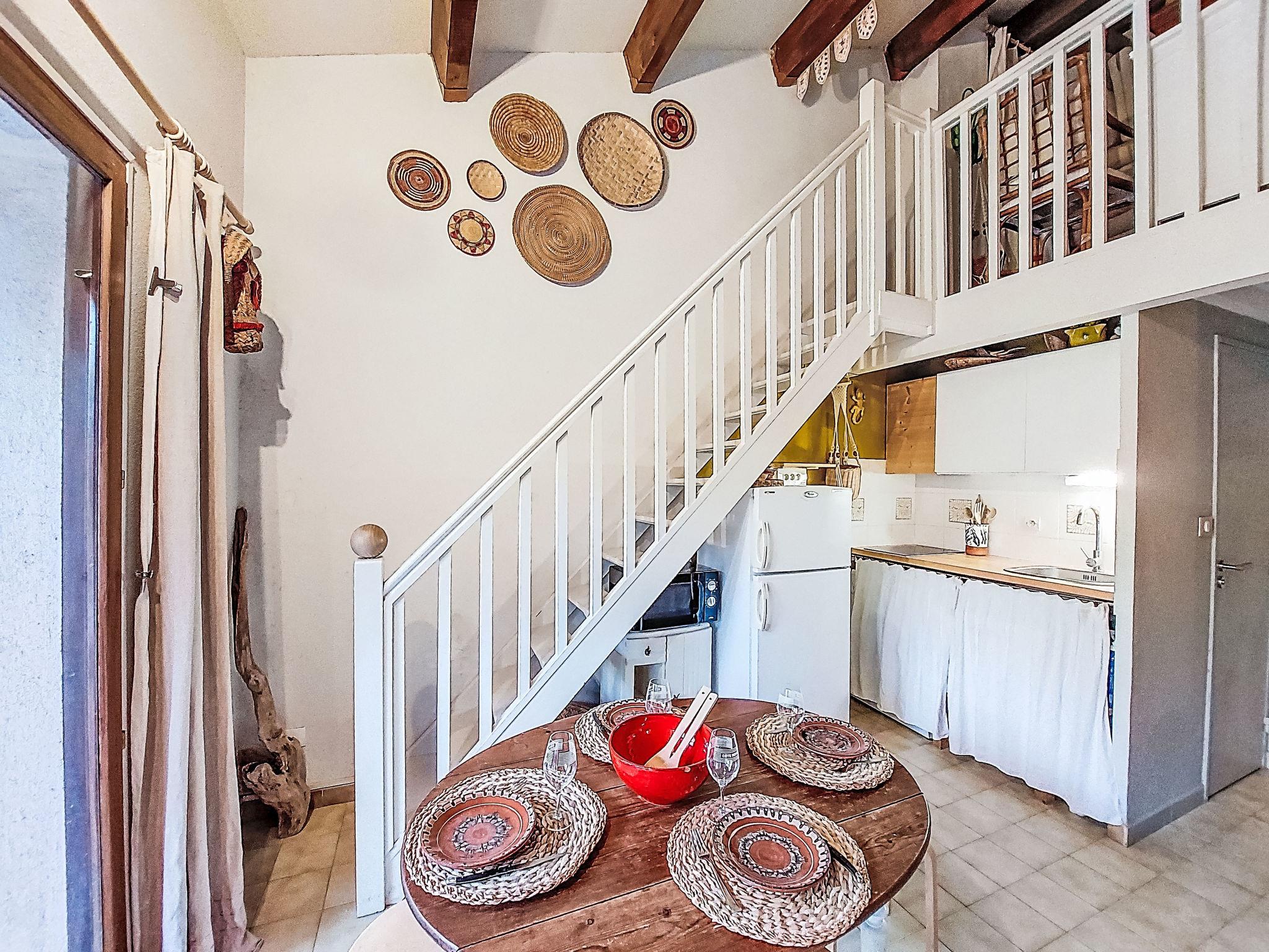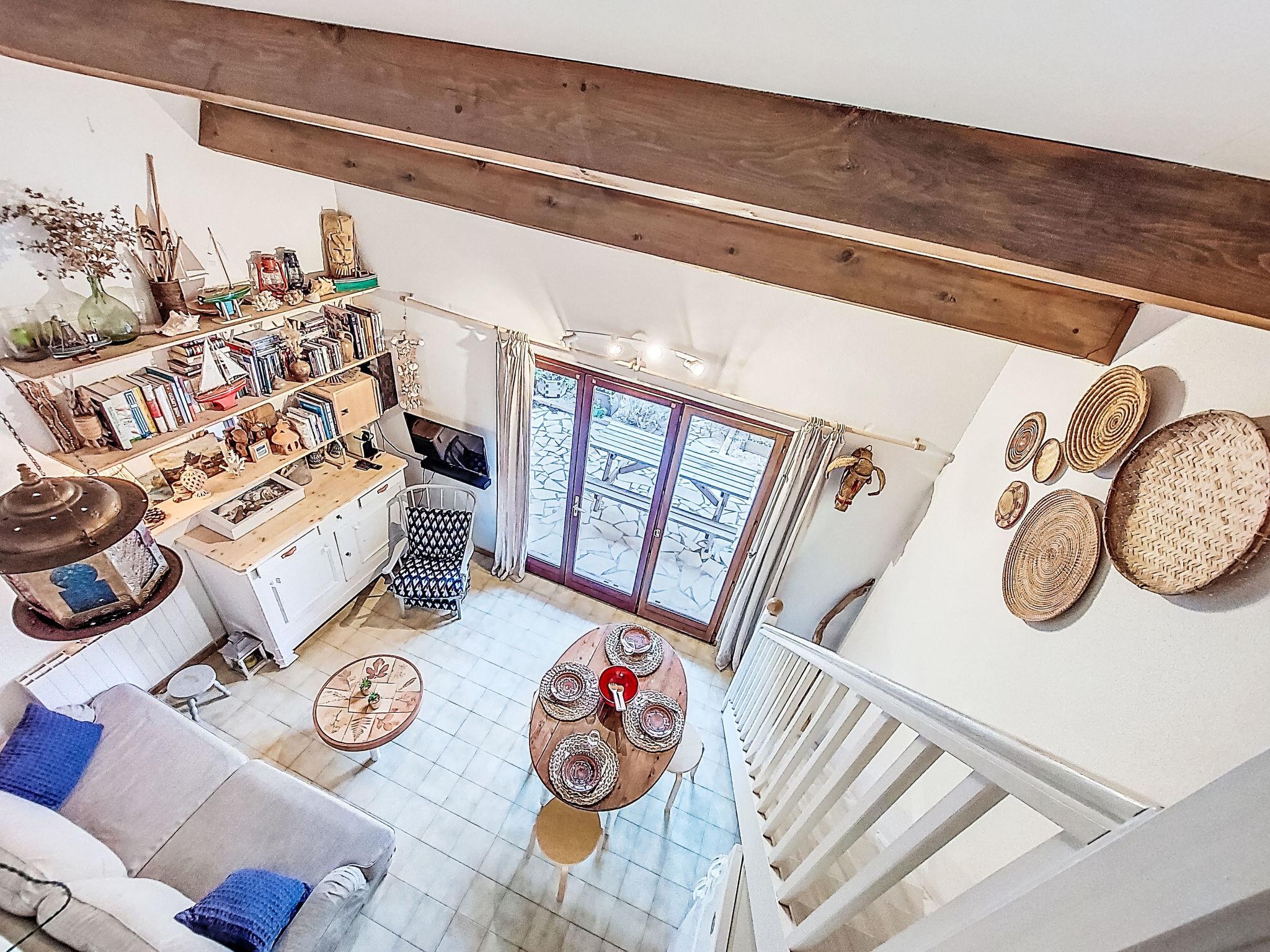 2-room terraced house 35 m2 on 2 levels. Beautiful furnishings: living/dining room with TV (flat screen), hi-fi system and DVD. Exit to the terrace, to the patio. 1 room with 1 french bed (140 cm). Kitchenette (dishwasher, 2 ceramic glass hob hotplates, freezer, electric coffee machine, Capsules for coffee machine (Nespresso) extra, combination microwave). Shower/WC. Upper floor: gallery, ceiling height 180 - 230 cm with 1 pull-out bed (2 pers. 2 x 80 cm, length 190 cm). Electric heating. Terrace. Terrace furniture, barbecue. Facilities: washing machine. Internet (WiFi, extra). Parking space n 615. Please note: smoke alarm. Facilities: Blu-Ray Player. Instead of an enclosed bedroom, some sleeping areas are located in an open-plan area (gallery, alcove, etc.). Offer by a private individual according to Art. 155, IV of CGI. FR6637.650.7
