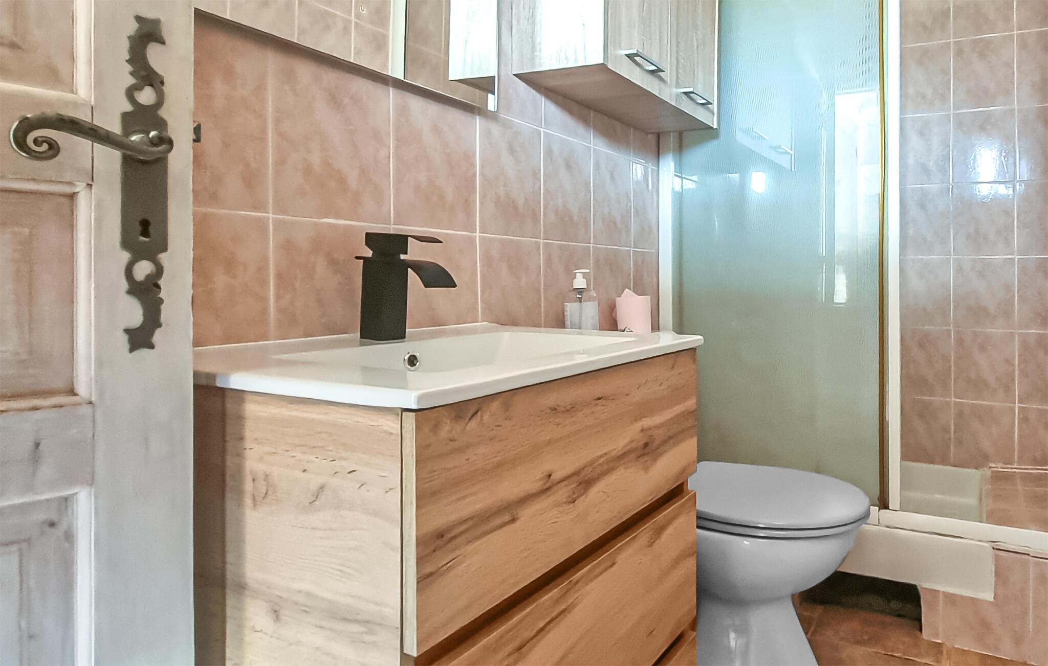 - WC mit warmem und kaltem Wasser, Dusche und Badewanne