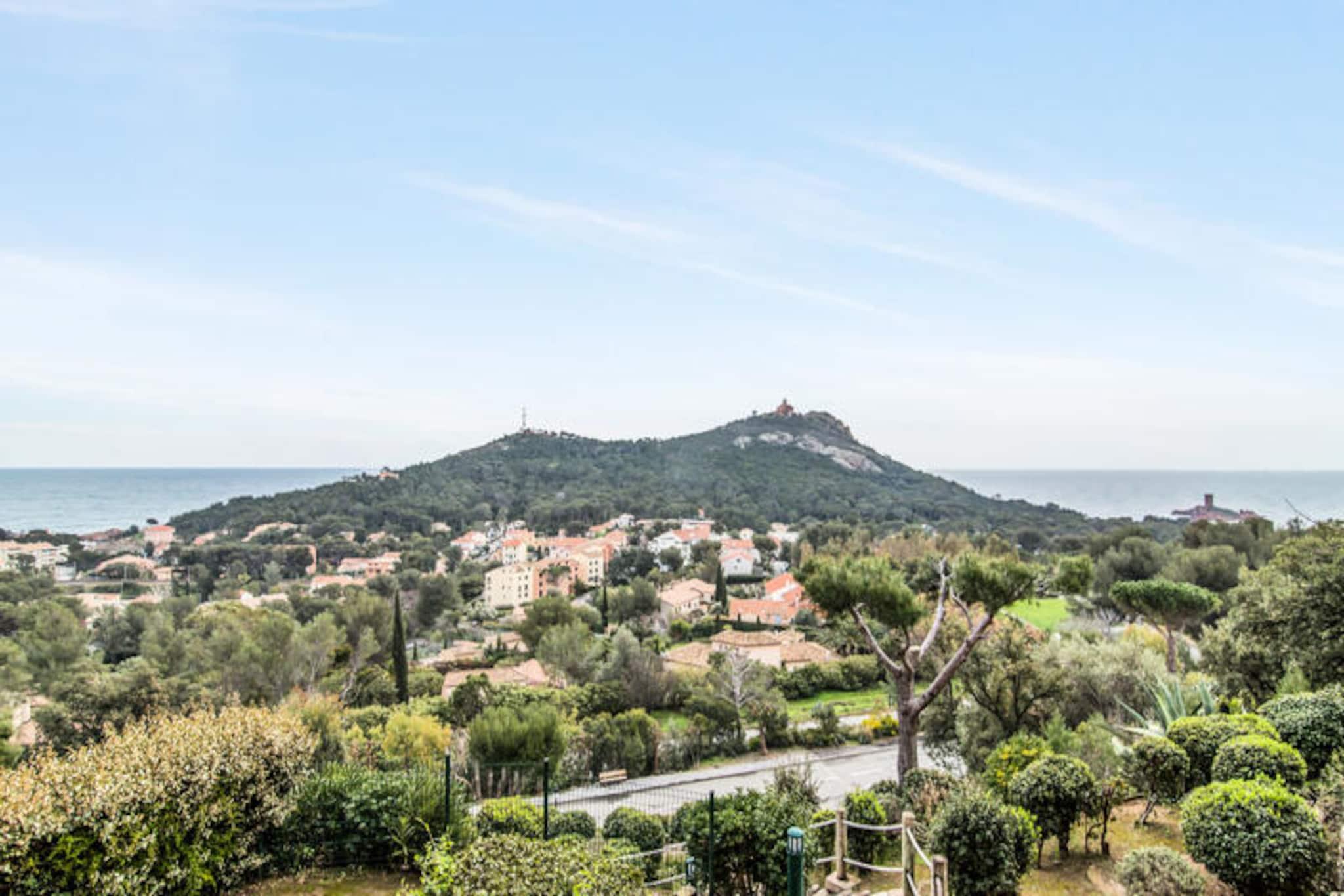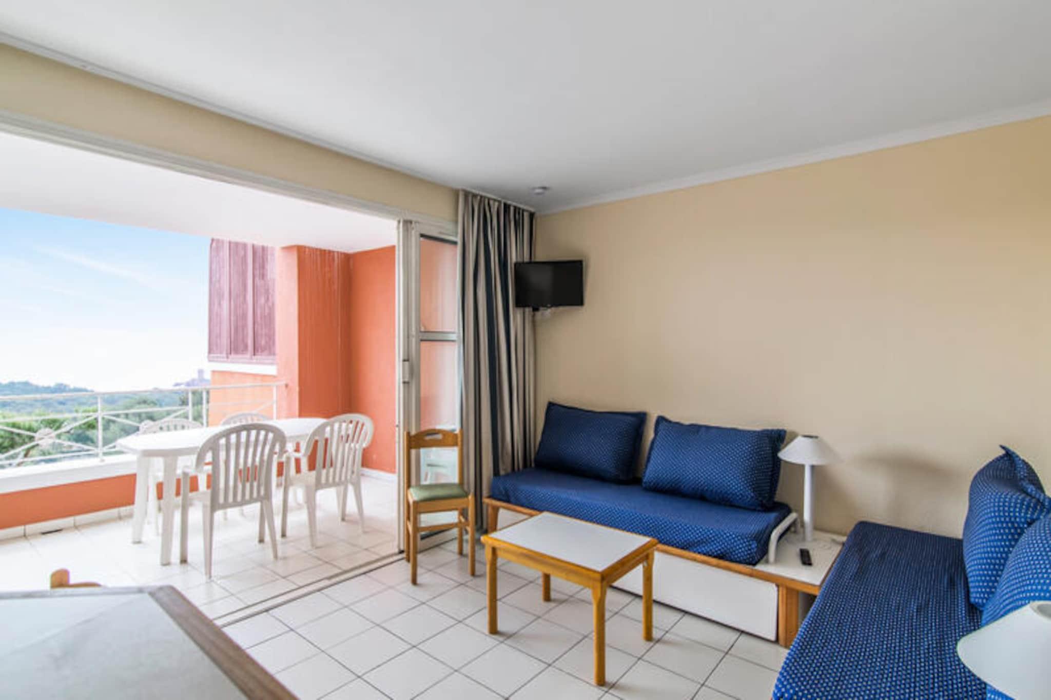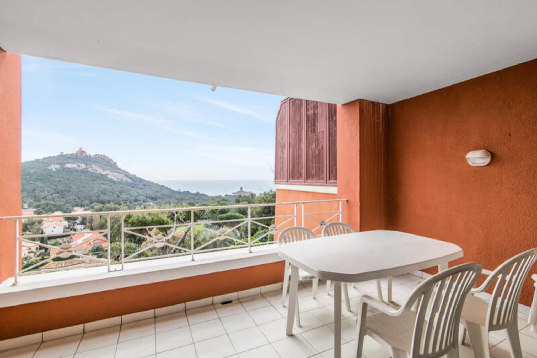 This well-appointed apartment offers a comfortable stay with a range of amenities. It features a spacious living room, a kitchen area, and a bedroom with a double bed. The cabin area provides additional sleeping space with two bunk beds. The bathroom includes a shower and bathtub, with a separate toilet for convenience. A furnished balcony offers a beautiful sea view, and reserved parking is available for guests. The property is pet-friendly, allowing you to bring your furry companions along. Located 9 km from Saint Raphael, the apartment is in close proximity to local attractions. The Mediterranean coast and Agay Bay provide picturesque views and opportunities for outdoor activities. A 15-minute walk brings you to the Village Club Cap Esterel, where you'll find shops, restaurants, and cafes. For those seeking adventure, nearby activities include water sports, hiking in the Esterel Massif, and canyoning in the Verdon gorges. The resort’s location offers the perfect blend of relaxation and exploration. The apartment is equipped with all the essentials for a convenient stay. The kitchen area is open to the living room and includes everything needed to prepare meals. Guests will also have access to multiple swimming pools on-site, along with a variety of leisure activities. The residence includes a mini-market, a snack bar, and a restaurant, ensuring that guests have everything they need during their stay. The property is well-maintained and offers a relaxing atmosphere in a scenic environment.