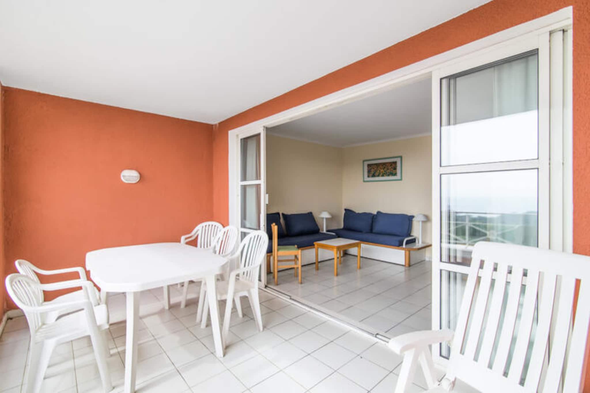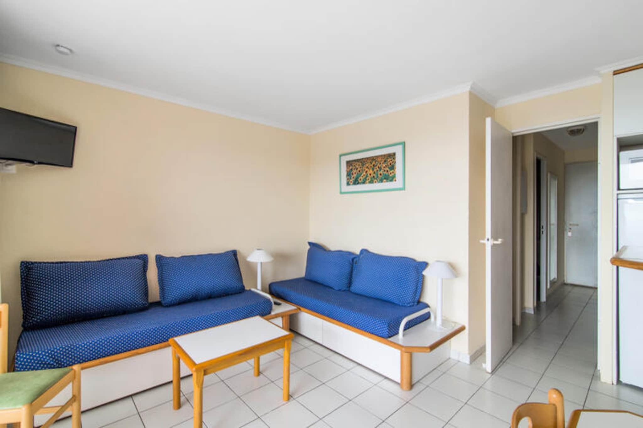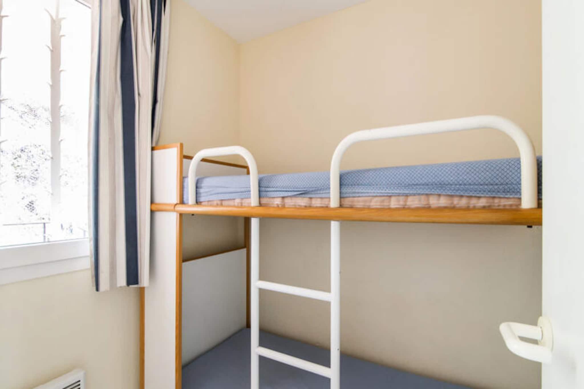 This well-appointed apartment offers a comfortable stay with a range of amenities. It features a spacious living room, a kitchen area, and a bedroom with a double bed. The cabin area provides additional sleeping space with two bunk beds. The bathroom includes a shower and bathtub, with a separate toilet for convenience. A furnished balcony offers a beautiful sea view, and reserved parking is available for guests. The property is pet-friendly, allowing you to bring your furry companions along. Located 9 km from Saint Raphael, the apartment is in close proximity to local attractions. The Mediterranean coast and Agay Bay provide picturesque views and opportunities for outdoor activities. A 15-minute walk brings you to the Village Club Cap Esterel, where you'll find shops, restaurants, and cafes. For those seeking adventure, nearby activities include water sports, hiking in the Esterel Massif, and canyoning in the Verdon gorges. The resort’s location offers the perfect blend of relaxation and exploration. The apartment is equipped with all the essentials for a convenient stay. The kitchen area is open to the living room and includes everything needed to prepare meals. Guests will also have access to multiple swimming pools on-site, along with a variety of leisure activities. The residence includes a mini-market, a snack bar, and a restaurant, ensuring that guests have everything they need during their stay. The property is well-maintained and offers a relaxing atmosphere in a scenic environment.