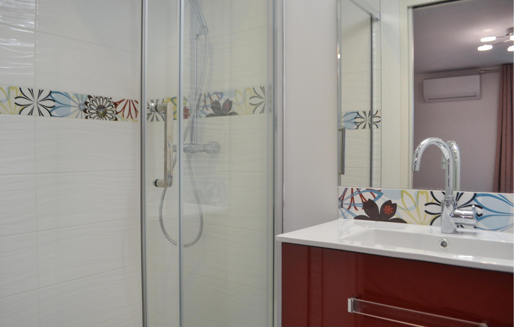 - Warmes und kaltes Wasser, Dusche und Badewanne