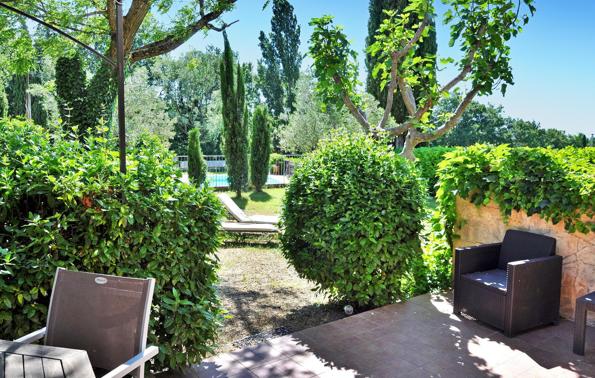 Diese Ferienwohnung im Erdgeschoss in Saint Roman de Malegarde ist perfekt für Ihren nächsten Urlaub. Es befindet sich auf dem Grundstück der Eigentümer neben einer anderen Ferienwohnung und liegt zwischen Vaucluse und Drôme, in der Nähe von Tulette. Der Ort verfügt über eine gemütliche Küche und einen Essbereich mit den wichtigsten Annehmlichkeiten und französischen Türen, die auf eine private Terrasse für Mahlzeiten im Freien führen. Beide Schlafzimmer verfügen über private Duschräume. Der Außenbereich umfasst ein weitläufiges Landschaftsgelände, das zu gemütlichen Spaziergängen einlädt. Der umzäunte Gemeinschaftspool (13 x 7 m) mit Sonnenliegen wird mit den Gästen der anderen Mietunterkunft vor Ort geteilt. Bitte beachten Sie, dass die Eigentümer vor Ort im Bauernhaus wohnen und ein freundlicher Hund zu ihrem Haushalt gehört, was zum ländlichen Charme der Umgebung beiträgt. Das Anwesen liegt auf dem Land, etwa 800 m vom Dorf Saint Roman de Malegarde entfernt. Im Dorf finden Sie einen Brotladen und für weitere Einkäufe müssen Sie nach Tulette (4 km) fahren. Saint Roman de Malegarde liegt an der Grenze zwischen Vaucluse und Drôme Provençale zwischen Bollène und Vaison la Romaine. Es ist ein guter Ausgangspunkt, um die umliegenden Dörfer und Weinberge von Tulette, Cairanne, Visan, Richerenches und Sainte Cécile les Vignes sowie viele Wanderwege zu erkunden, die in das Tal des Flusses Aygues führen.