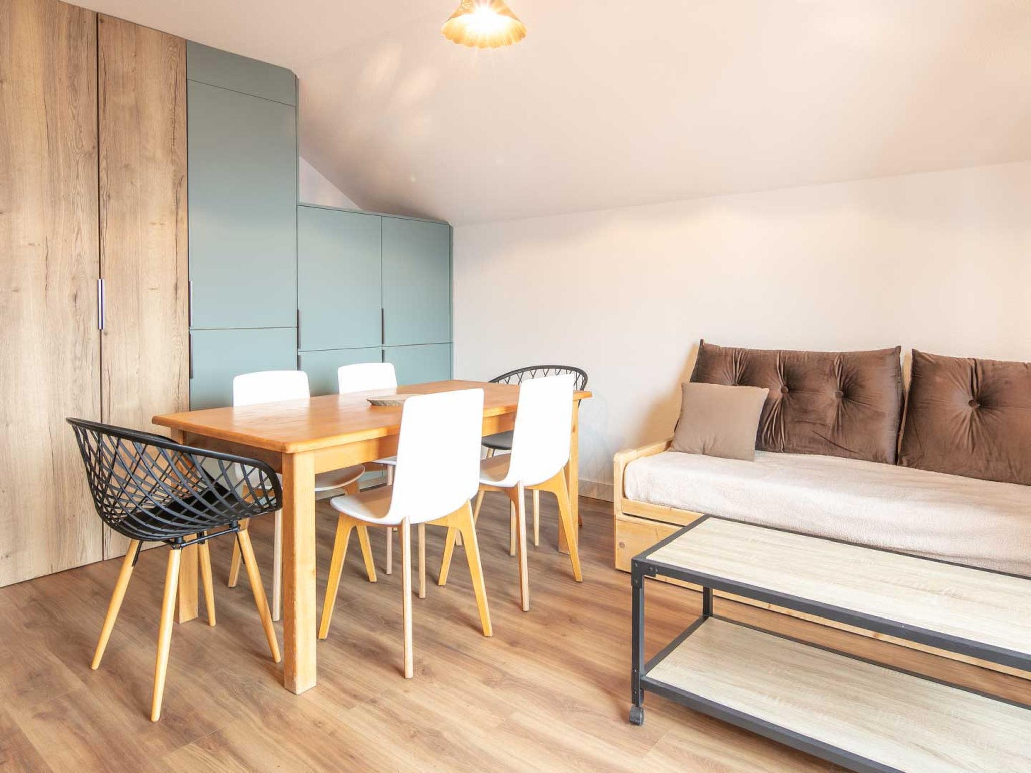 "Les Marmottes", 3-room apartment 42 m2 on 3rd floor. Object suitable for 6 adults. 1 room with 1 double bed and TV. 1 room with 2 beds. Living room with 2 sofabeds. Kitchen (dishwasher, 4 induction hot plates, toaster, kettle, microwave, freezer, electric coffee machine). Bath/WC. Balcony. View of the mountains and the ski run. Parking (1 car). Please note: non-smokers only. 1 pet/ dog allowed. Smoke alarm. Offer by a commercial proprietor according to Art. 155, IV, CGI