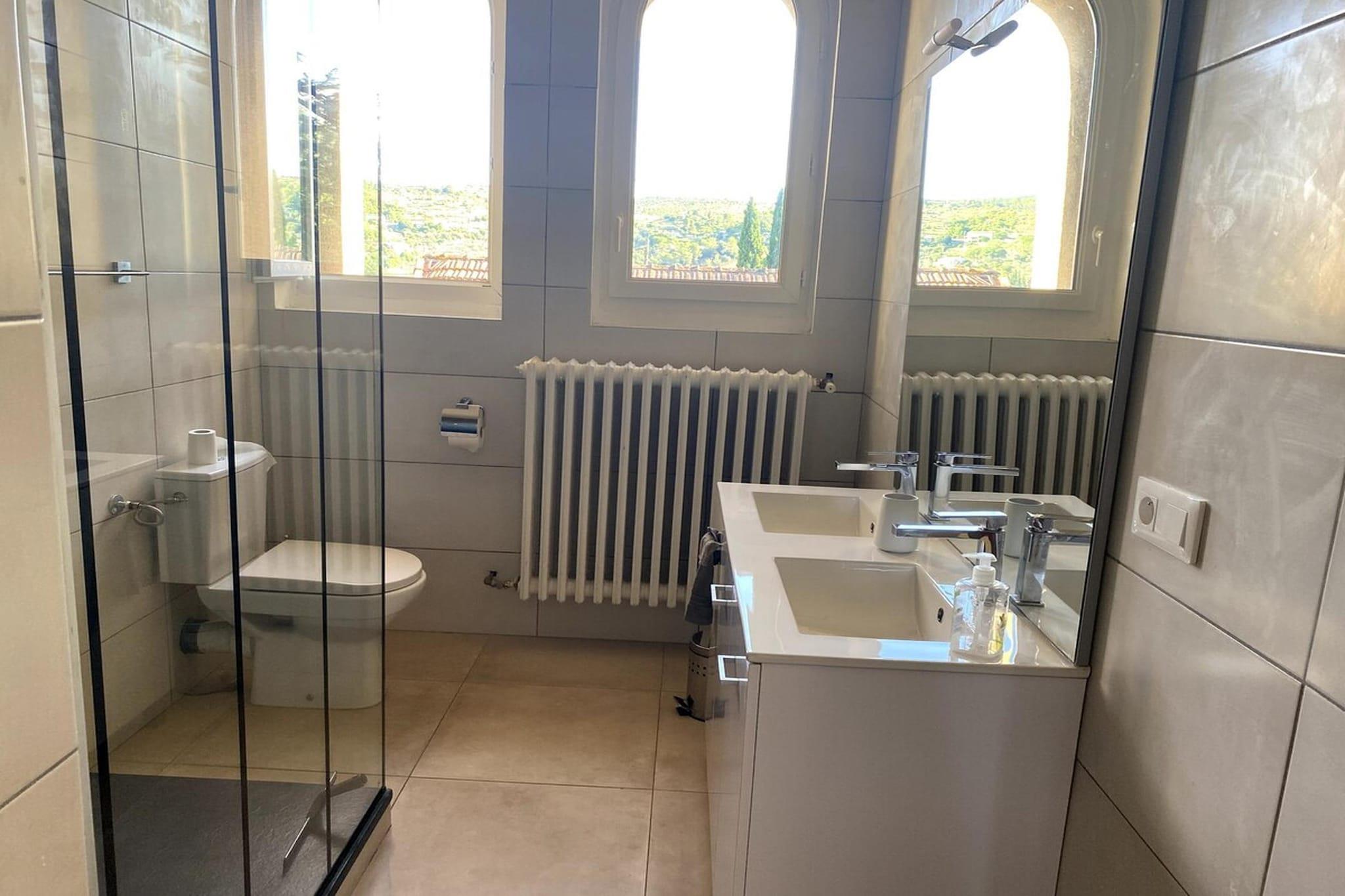 There’s a quiet charm to this corner of the Cèze Valley - mornings begin with soft light over the hills, afternoons drift between the pool and the shaded terrace, and evenings settle into long outdoor meals surrounded by the calm of the countryside. This spacious villa near Montclus is made for families or groups who want comfort, privacy and the freedom to enjoy days at their own pace around nature. The ground floor brings everyone together with an open, well-equipped kitchen and a bright dining room featuring a dining table, fireplace and billiards - a natural gathering spot after river swims or market visits. This level includes three bedrooms (two with twin beds, one with a double bed), a full bathroom, plus a separate toilet for convenience. Upstairs, you are welcomed into a roomy living area with a TV and enough seating for all the guests to relax concomitantly, along with an additional open kitchen for easy group meals. The three upper bedrooms, each fitted with a double bed, can sleep 6 guests, making it ideal for groups who value comfort and independence. A shared bathroom completes the floor. Outside, life slows down beautifully: a private outdoor pool, sun loungers, a fenced garden, a terrace with a barbecue, an outdoor shower, and comfortable garden furniture. Practical touches like air conditioning, Wi-Fi, room-darkening shades, a washing machine and parking ensure an effortless stay. When you’re ready to explore, the region offers canoe trips on the Cèze River, medieval streets in Montclus and La Roque-sur-Cèze, vineyard visits and scenic walking paths. Return home for a simple dinner on the terrace, warm air on your skin, and the easy rhythm of Provence closing the day.