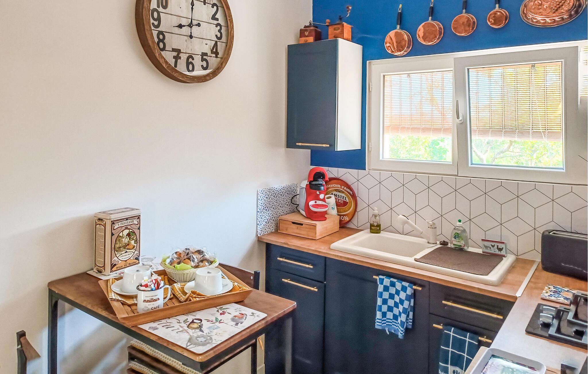 Genießen Sie Ihren Paarurlaub in dieser kleinen Ferienoase mit Nähe zu den Sehenswürdigkeiten des Périgord Noir. Die Einrichtung ist funktional und mit liebevollen Details gestaltet, sodass eine warme, persönliche Atmosphäre entsteht. Finden Sie Ruhe im wohnlich eingerichteten Innenraum und genießen Sie die hellen Räume mit geschmackvoller Ausstattung. Entspannen Sie in der Sitzecke, lesen Sie ein Buch oder hören Sie Musik. Bereiten Sie in der kompakten Küche Ihre gemeinsamen Mahlzeiten zu und servieren Sie diese am kleinen Esstisch.