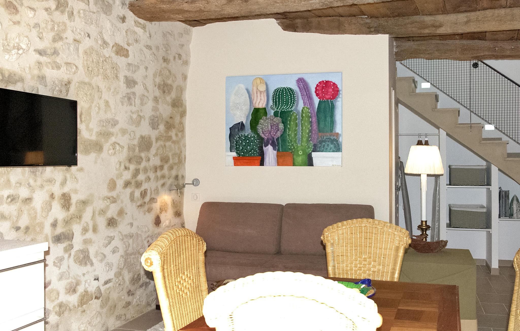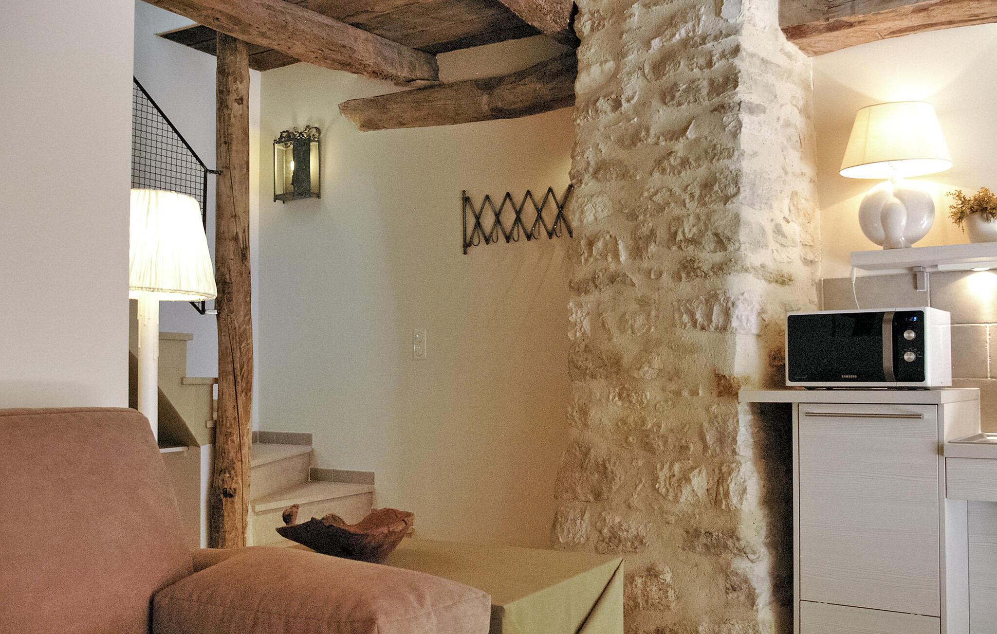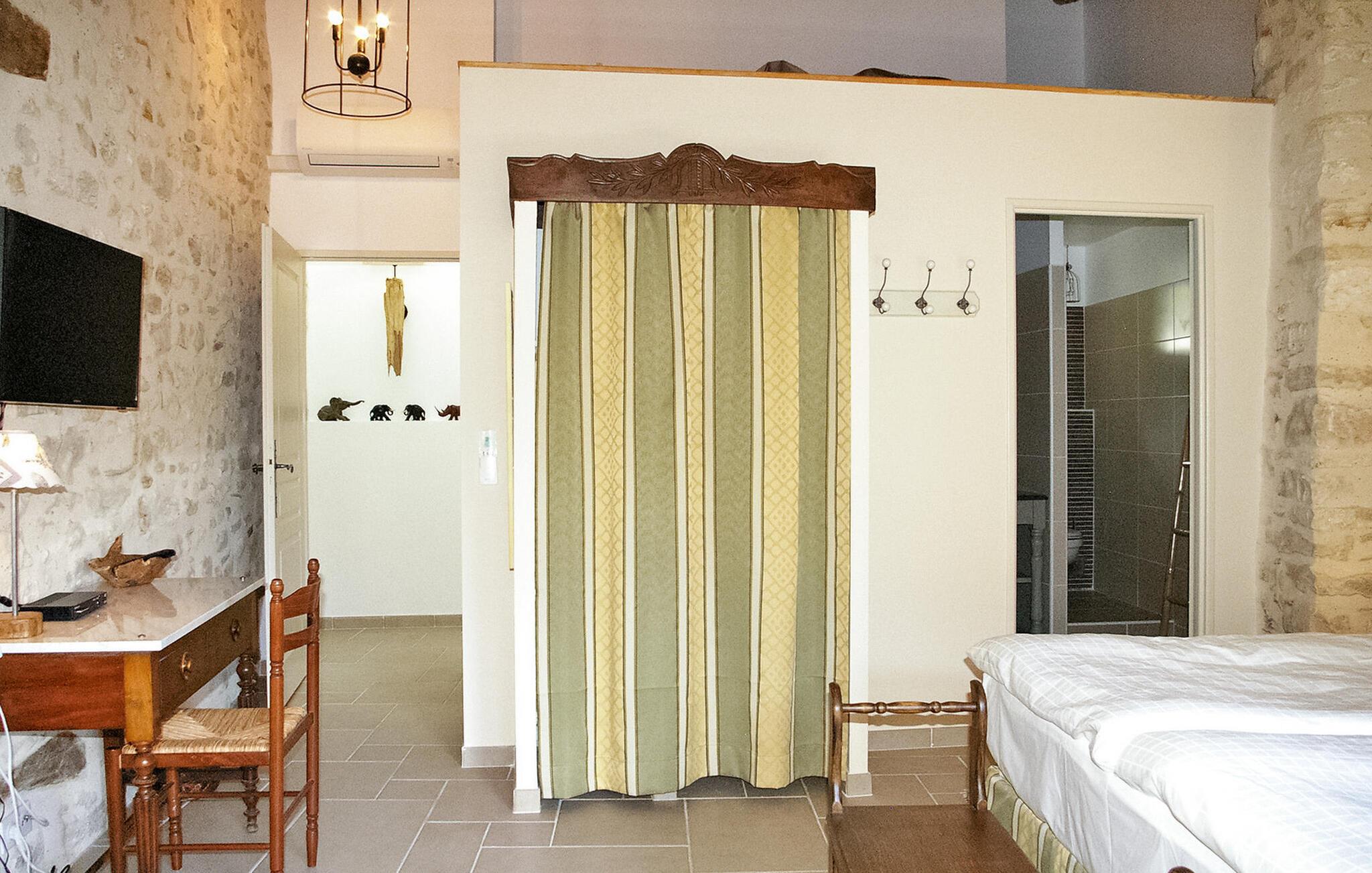 Entdecken Sie zwischen Goudargues und Barjac ein charmantes Feriendomizil in Saint André de Roquepertuis, perfekt für einen herrlichen Kurzurlaub. Diese gemütliche Unterkunft im ruhigen Cèze-Tal bietet einen entspannten und zugänglichen Aufenthalt auf zwei Ebenen. Das behindertengerechte Erdgeschoss verfügt über einen einladenden Wohnbereich mit offener Küche, die mit modernen Annehmlichkeiten ausgestattet ist. Es erwarten Sie ein Essbereich und eine Sitzecke mit einem praktischen verstaubaren Schlafsofa sowie internationale TV-Kanäle. Im Obergeschoss finden Sie ein schönes Schlafzimmer und ein zusätzliches Duschbad. Treten Sie hinaus und entdecken Sie zwei einladende Innenhöfe. Der erste Innenhof lädt zum Essen im Freien ein, während der zweite Innenhof über einen geschlossenen und beheizten Gemeinschaftspool (7 x 3,5 m) mit Liegestühlen verfügt. Wichtiger Hinweis: Die Außenbereiche grenzen an die Residenz der Eigentümer und ihr Bed & Breakfast (für 2 Gäste). Die Innenhöfe dienen als Zugang zum Haus der Eigentümer und zum B&B. Der Pool wird von den Gästen des B&B und den Eigentümern gemeinsam genutzt. WLAN ist verfügbar und Parkplätze für drei Fahrzeuge sind vorhanden. Gäste haben außerdem die Möglichkeit, im gewölbten Atelier bezaubernde Gemälde des Hauseigentümers zu bewundern. Das Mietobjekt befindet sich in Saint André de Roquepertuis, einem kleinen Dorf im Herzen des Cèze-Tals. Besuchen Sie die provenzalischen Märkte und Weinberge. In Goudargues (3,5 km) finden Sie alle Geschäfte.
