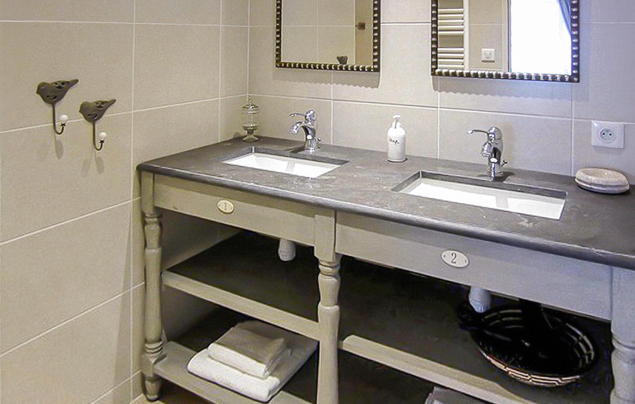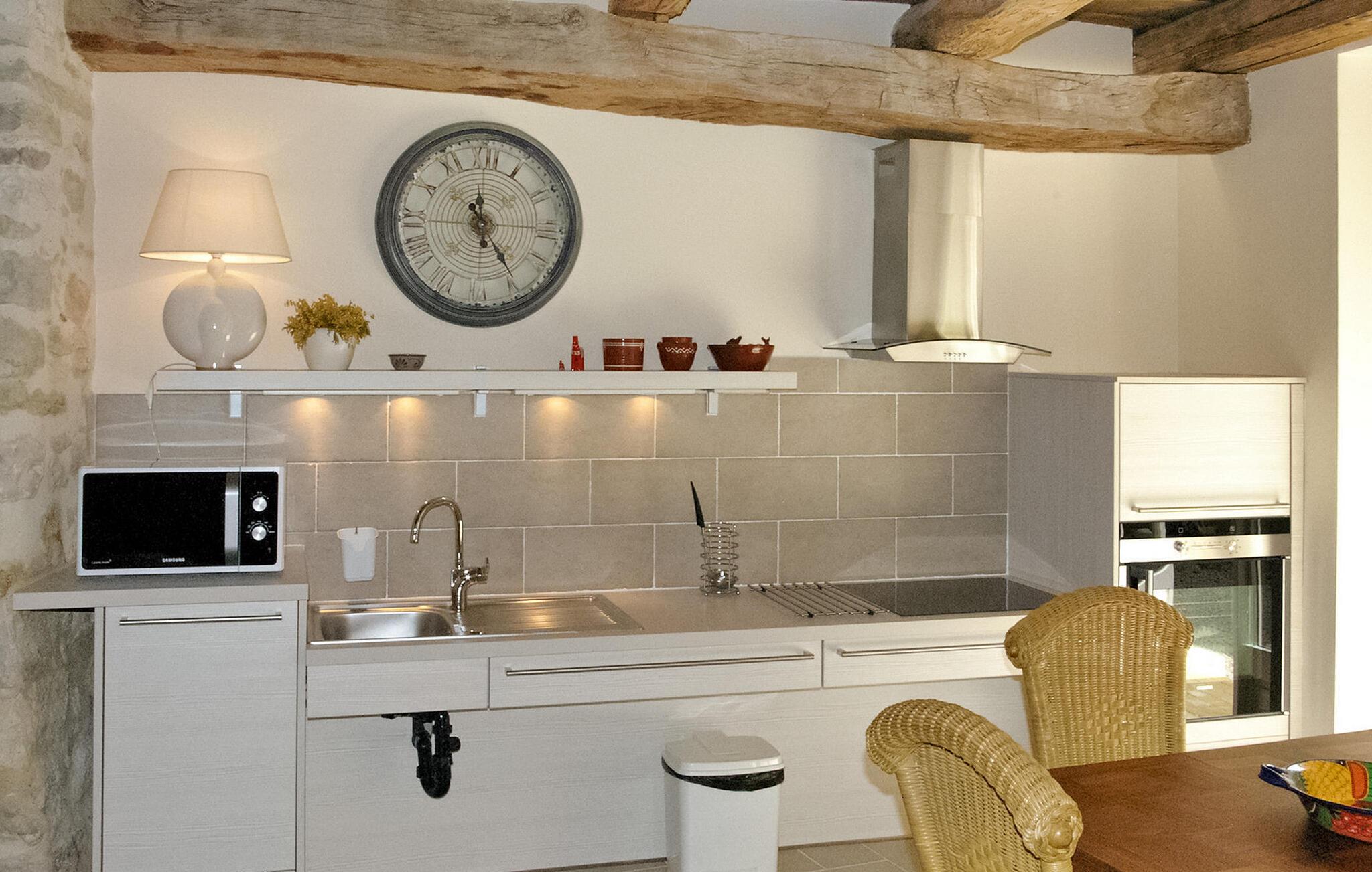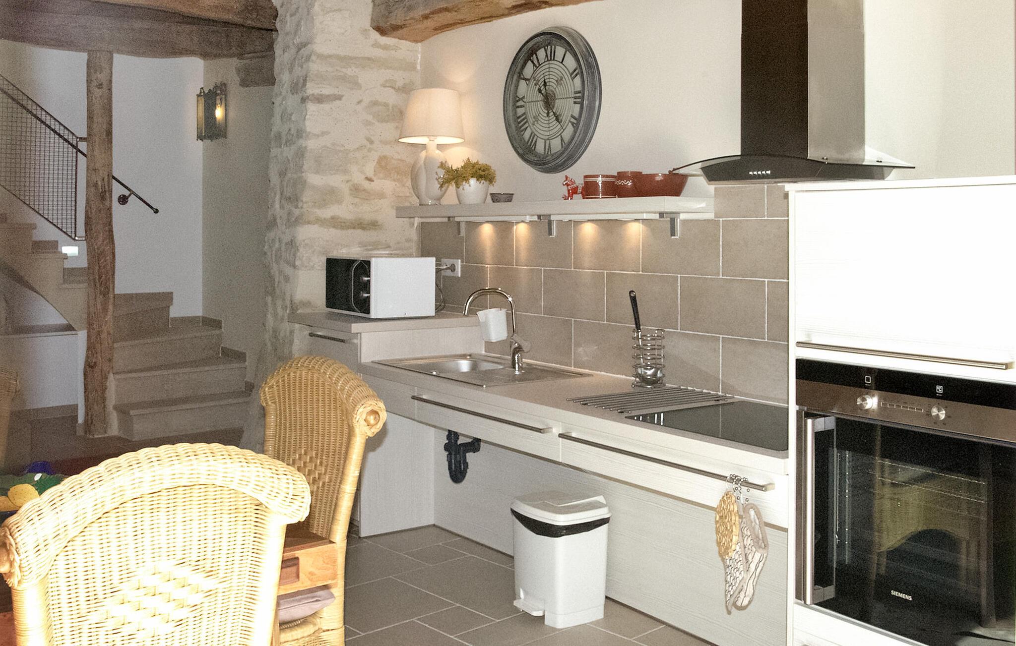 Entdecken Sie zwischen Goudargues und Barjac ein charmantes Feriendomizil in Saint André de Roquepertuis, perfekt für einen herrlichen Kurzurlaub. Diese gemütliche Unterkunft im ruhigen Cèze-Tal bietet einen entspannten und zugänglichen Aufenthalt auf zwei Ebenen. Das behindertengerechte Erdgeschoss verfügt über einen einladenden Wohnbereich mit offener Küche, die mit modernen Annehmlichkeiten ausgestattet ist. Es erwarten Sie ein Essbereich und eine Sitzecke mit einem praktischen verstaubaren Schlafsofa sowie internationale TV-Kanäle. Im Obergeschoss finden Sie ein schönes Schlafzimmer und ein zusätzliches Duschbad. Treten Sie hinaus und entdecken Sie zwei einladende Innenhöfe. Der erste Innenhof lädt zum Essen im Freien ein, während der zweite Innenhof über einen geschlossenen und beheizten Gemeinschaftspool (7 x 3,5 m) mit Liegestühlen verfügt. Wichtiger Hinweis: Die Außenbereiche grenzen an die Residenz der Eigentümer und ihr Bed & Breakfast (für 2 Gäste). Die Innenhöfe dienen als Zugang zum Haus der Eigentümer und zum B&B. Der Pool wird von den Gästen des B&B und den Eigentümern gemeinsam genutzt. WLAN ist verfügbar und Parkplätze für drei Fahrzeuge sind vorhanden. Gäste haben außerdem die Möglichkeit, im gewölbten Atelier bezaubernde Gemälde des Hauseigentümers zu bewundern. Das Mietobjekt befindet sich in Saint André de Roquepertuis, einem kleinen Dorf im Herzen des Cèze-Tals. Besuchen Sie die provenzalischen Märkte und Weinberge. In Goudargues (3,5 km) finden Sie alle Geschäfte.